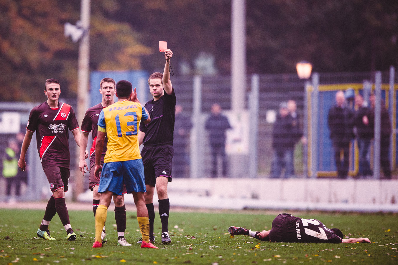 477 Zuschauer sahen einen nie in Gefahr geratenen 3:0 Erfolg der U23 vom FC St. Pauli. Außerdem noch eine hochverdiente rote Karte in der 89. Minute gegen Braunschweig. In der ersten Halbzeit war es ein interessantes Spiel mit drei Toren in wenigen Minuten. Danach schalteten die Braun-Weissen zwei Gänge zurück und ich spürte meine kalten Füsse. Einen kompletten Spielbericht findet ihr beim Statistikgott des Übersteigers.