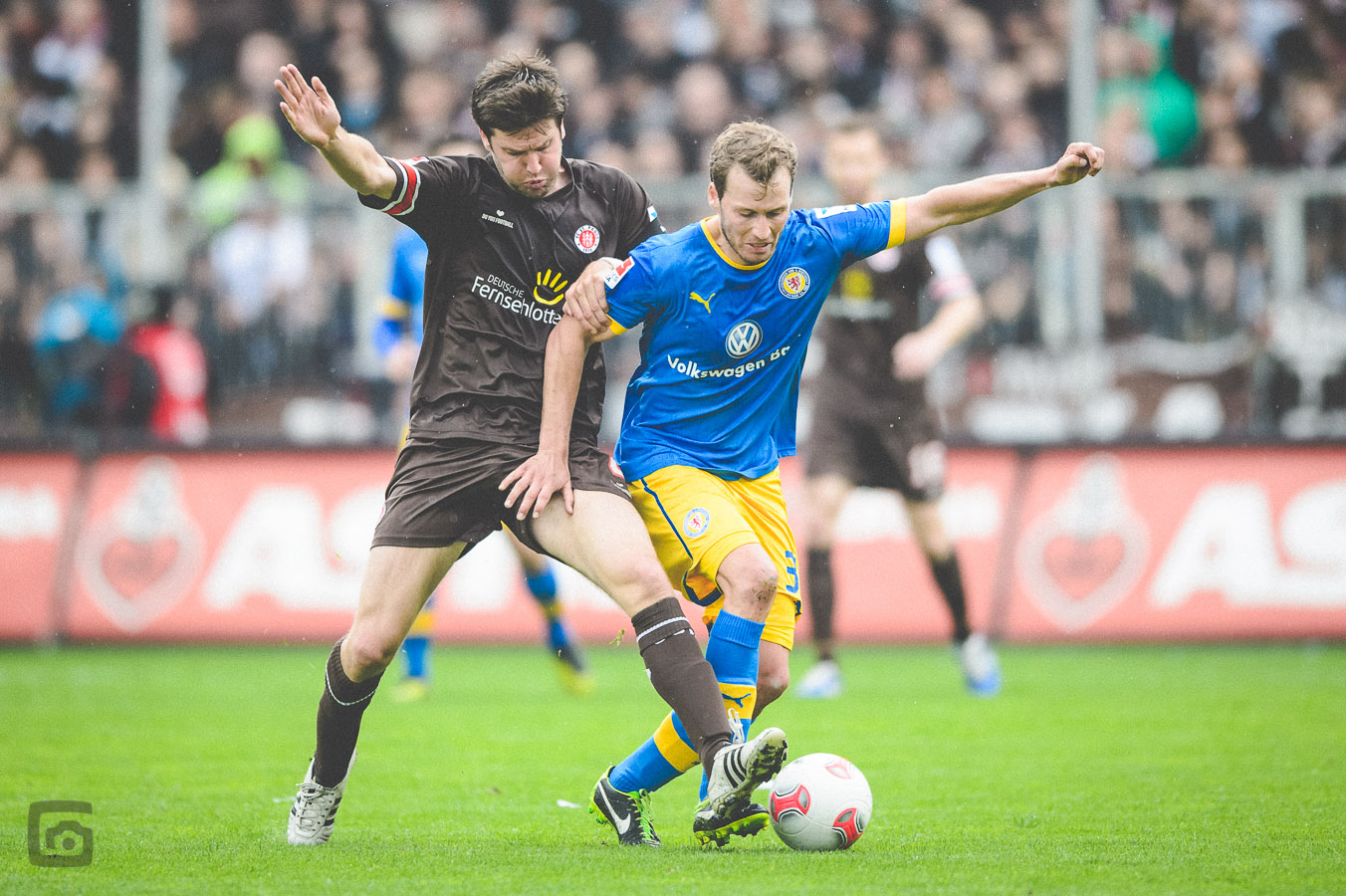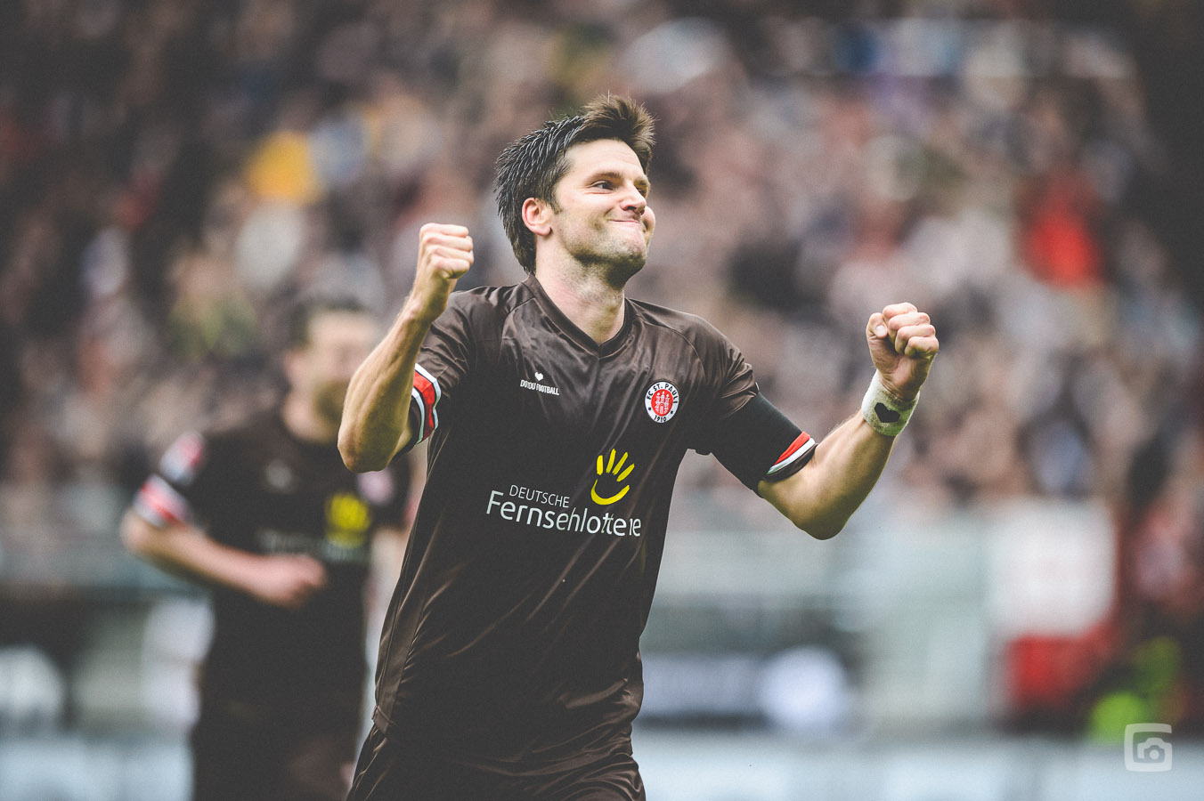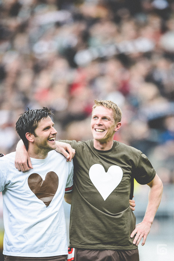 Klar bin ich Sportfotograf, aber ich bin eben auch Fan vom FC St. Pauli. Daher sind solch hoch emotionalen Spielen wie am Sonntag gegen Braunschweig mit anschließender Verabschiedung von den verdienten und langjährigen Spielern wie Marius Ebbers und Florian Bruns echt ein Problem für mich. Während des Spiels bin ich konzentriert, schaue durch meinen Sucher wie durch ein Fernrohr und versuche mich auf’s Wesentliche zu fokussieren. Das, was ich da sehe, kann ich oft erst hinterher wirklich verarbeiten.
