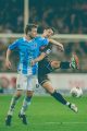 Willkommen in der nächsten hart umkämpften Zweitligasaison, mag man nach 15 Minuten gedacht haben. Ich habe jedenfalls den Schlag von Rob Friend gegen Bernd Nehrig über den halben Platz gehört und erschrocken auf den Auslöser gedrückt – da flogen beide nur noch durch die Luft. Bernd Nehrig blieb danach lange benommen liegen. Wenn Du auf die Lage seiner Arme achtest, kannst Du – denke ich – erahnen, wie (nun, nennen wir es vorsichtig) unglücklich Nehrig von Rob Friend getroffen wurde.