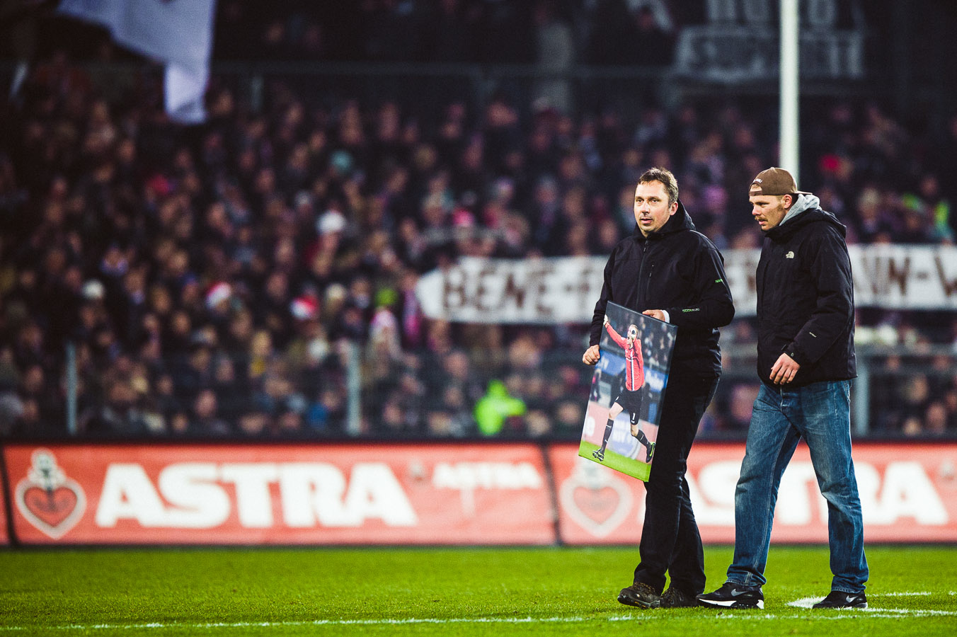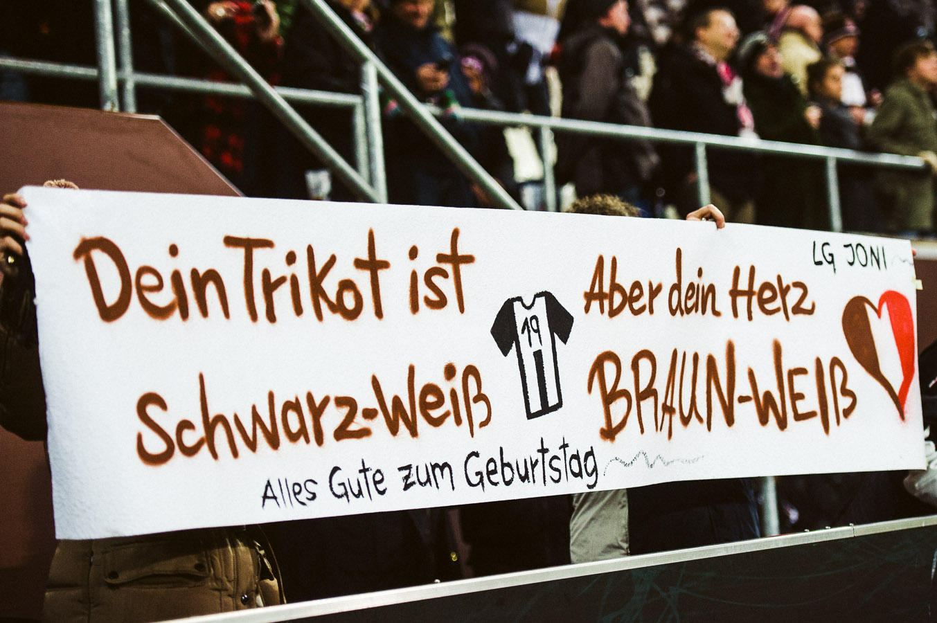 Ansonsten gab es wieder viele gute Spruchbänder, eine schöne Choreo und einen besonderen Abschied. Hier freut es mich natürlich überaus, dass Bene mit einem meiner Bilder vom Verein verabschiedet wurde.