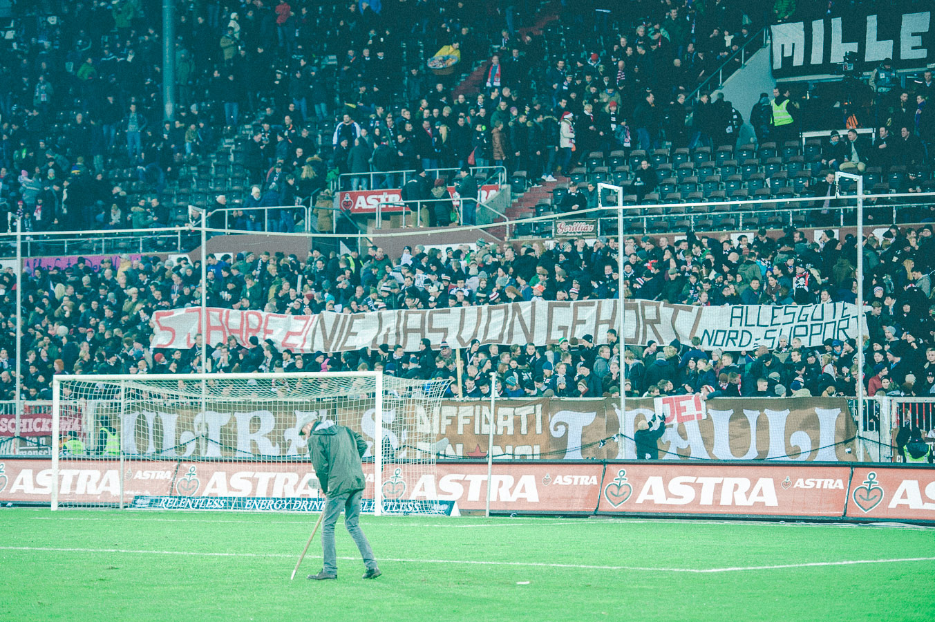 Es ist nun wahrlich keine neue Erkenntnis, dass beim FC St. Pauli der Fussball nur eine Klammer ist. Beim braun-weißen Erlebnis ist das Spiel ein Grund sich zu treffen, für das Gesamtkonzept spielen aber viele weitere Faktoren eine entscheidende Rolle. Daher wundert es mich auch nicht, dass ich nach dem freitäglichen Spitzenspiel zwischen dem FC St. Pauli und dem 1.FC Köln trotz verdienter und satter Niederlage nicht einige Sekunde schlecht gelaunt war. Davon abgesehen, kann ich als Fan gerne eingestehen, dass die gegnerische Mannschaft an diesem Abend einfach stärker war – manchmal auch glücklicher.