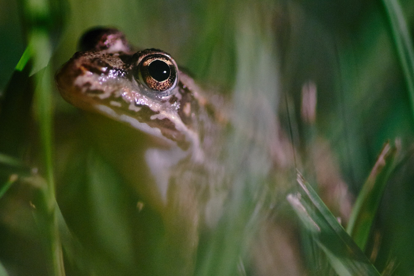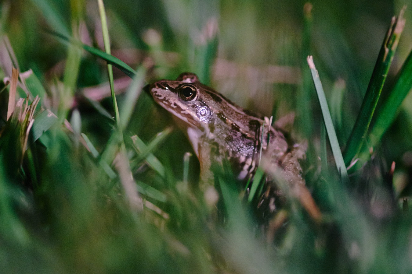 Für mich war die Chance einen Frosch zu fotografieren, verlockend genug, am nächsten Tag erneut die Suche auf einen grünen Hüpfer zu starten. Diesmal hatte ich meine neue Immer-dabei-Kamera auch tatsächlich dabei. Ist das Bild jetzt interessant? Entstanden ist es sehr ähnlich, wie beim ersten Versuch – aber Kamera und Objektiv haben eine andere Qualität.