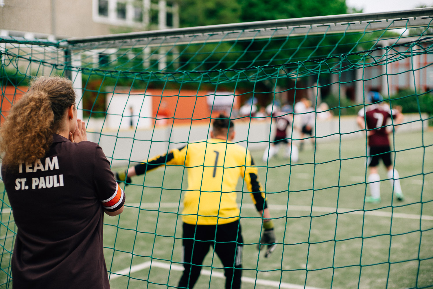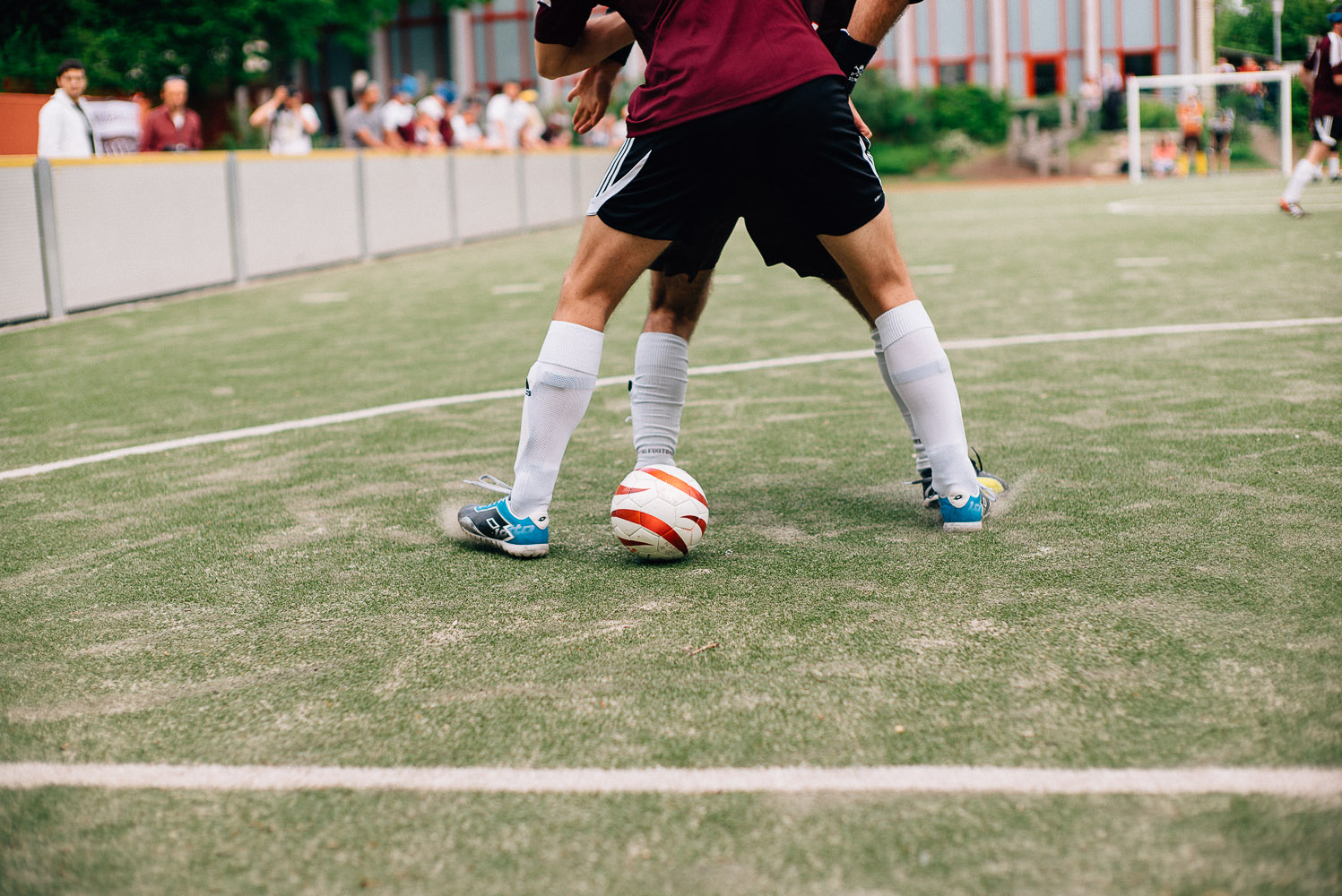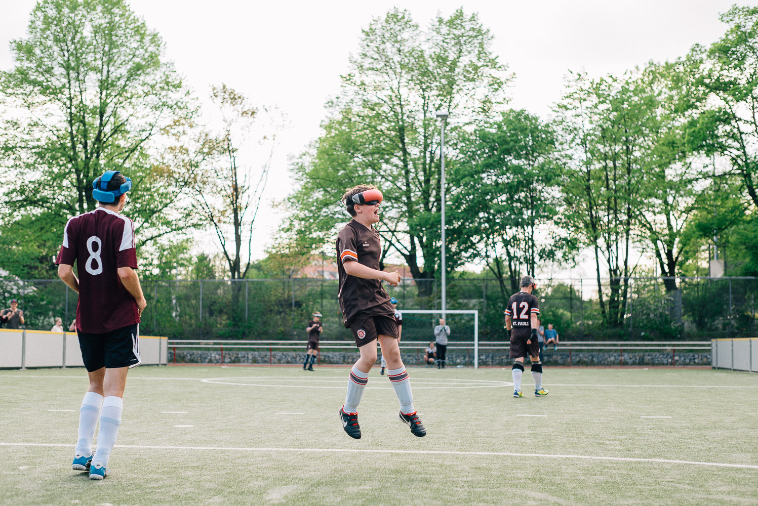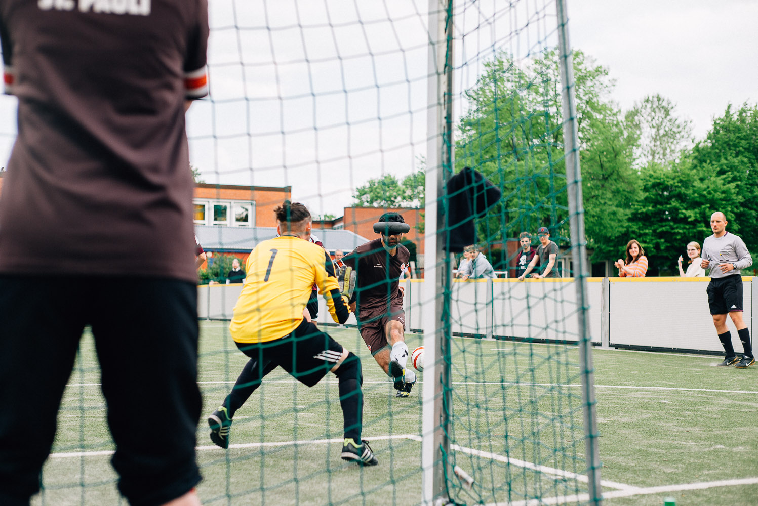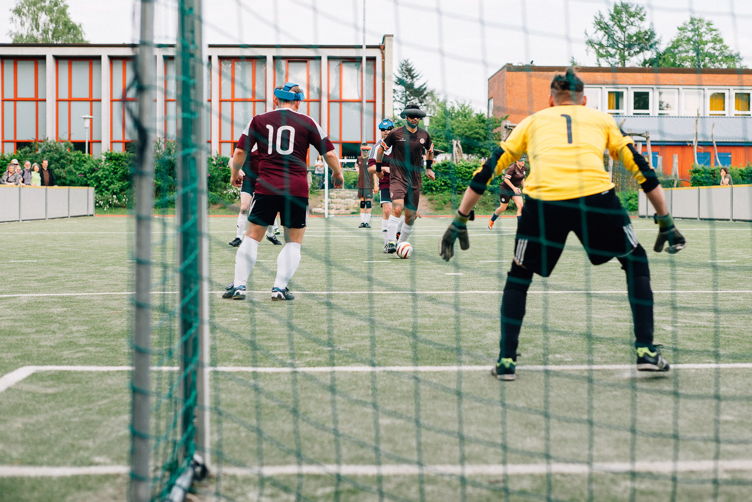 Jedenfalls ist der Sport so schnell, dass ich mit meiner Leica und der manuellen Fokussierung arge Probleme hatte. Beim Rollerderby hatte ich auch schon mal das Experiment gewagt, schnellen Sport mit Noctilux festzuhalten. Das war deutlich einfacher, weil die Bewegungen leichter vorherzusehen sind. Beim Fussball ist eben mehr hin und her. Nach einiger Zeit hatte ich mich „eingeschossen“ und dann konnte ich auch die Vorteile des Rangefinders nutzen. Schließlich irritierte so bei der Fokussierung kein Tornetz den Autofokus. Und der Bearbeitungsaufwand der Aufnahmen ist auch viel geringer. Die obigen Bilder sind so fast alle 1:1 aus der Kamera gekommen – ich habe nur ein mir passend erscheinendes VSCO Preset (Kodak Gold 200) drüber laufen lassen.