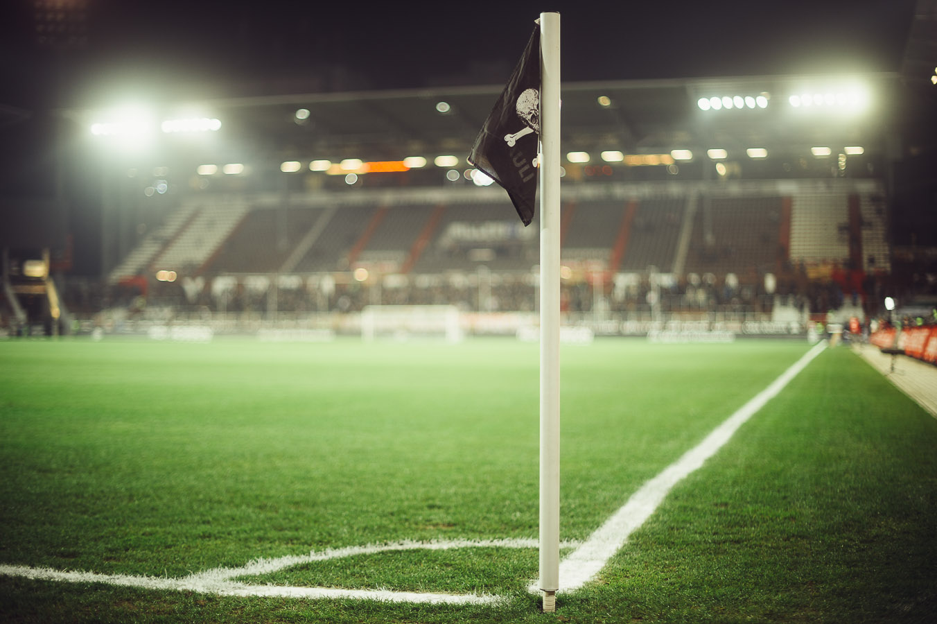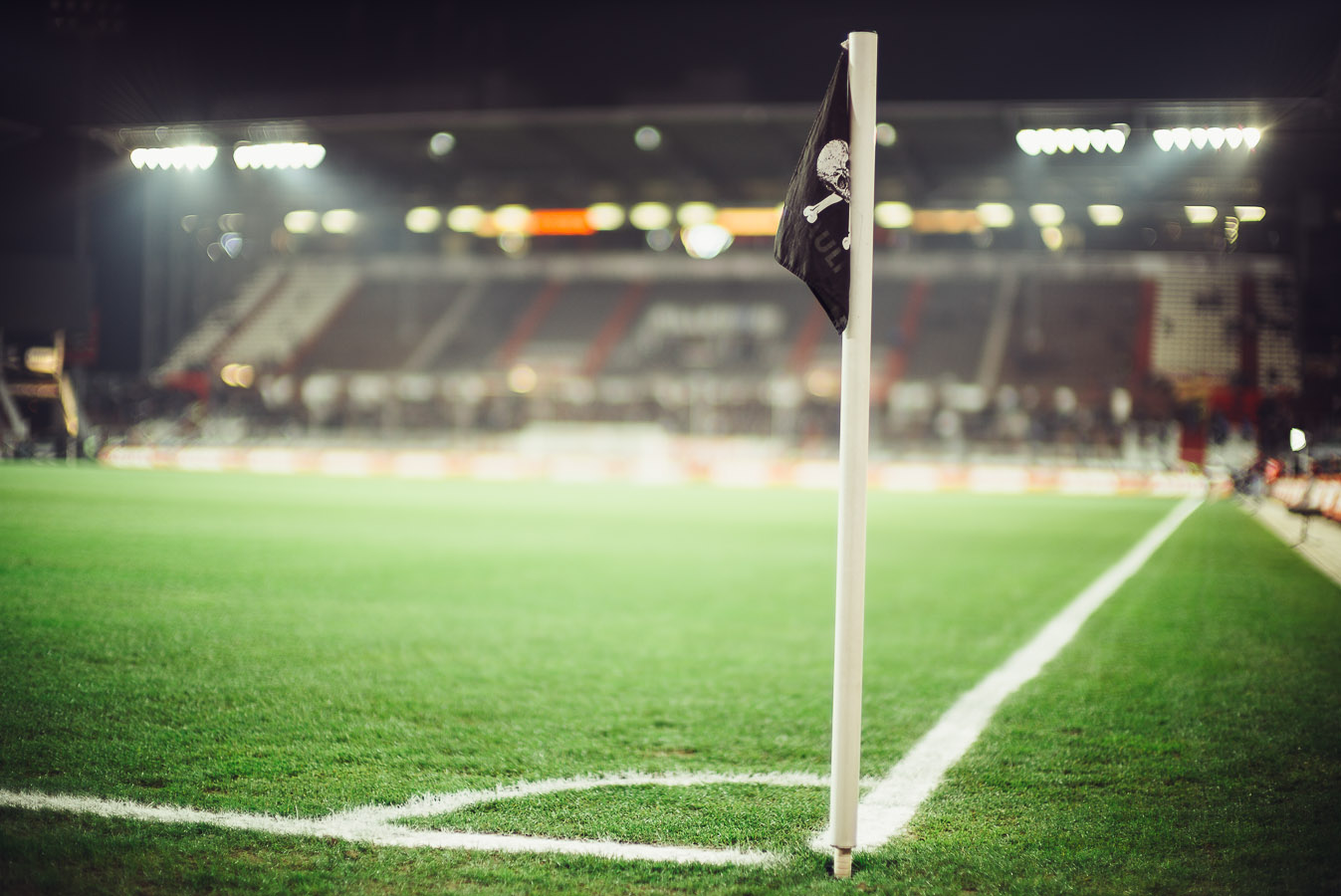 Ich habe also am Montag Abend mal eben die Eckfahne im Millerntor fotografiert. Total unspektakulär und schnell aus der Hand, aber trotzdem aufschlussreich. Um Unterschiede in den Kameragehäusen von Nikon und Leica möglichst auszuschliessen, habe ich die Bilder mit einem Preset von VSCO bearbeitet. Dies liegt in einer optimierten Version für Nikon und Leica vor und vermindert die Unterschiede in der Farbgebung der unterschiedlichen Gehäuse stark. Ich möchte schließlich die Objektive vergleichen und nicht die Kameras. Zum Einsatz kam die Nikon D4 und die Leica M. Die Bilder entstanden bei ISO200 und alle bei Blende 1.4. Die Belichtungszeit ist bei den Nikon Bildern 1/400s, die es bei Leica nicht gibt – daher habe ich dort mit einer 1/500s belichtet, aber eine Helligkeitskorrektur fand in Lightroom nicht statt. Die Objektivkorrektur habe ich in Lightroom ebenfalls nicht genutzt.