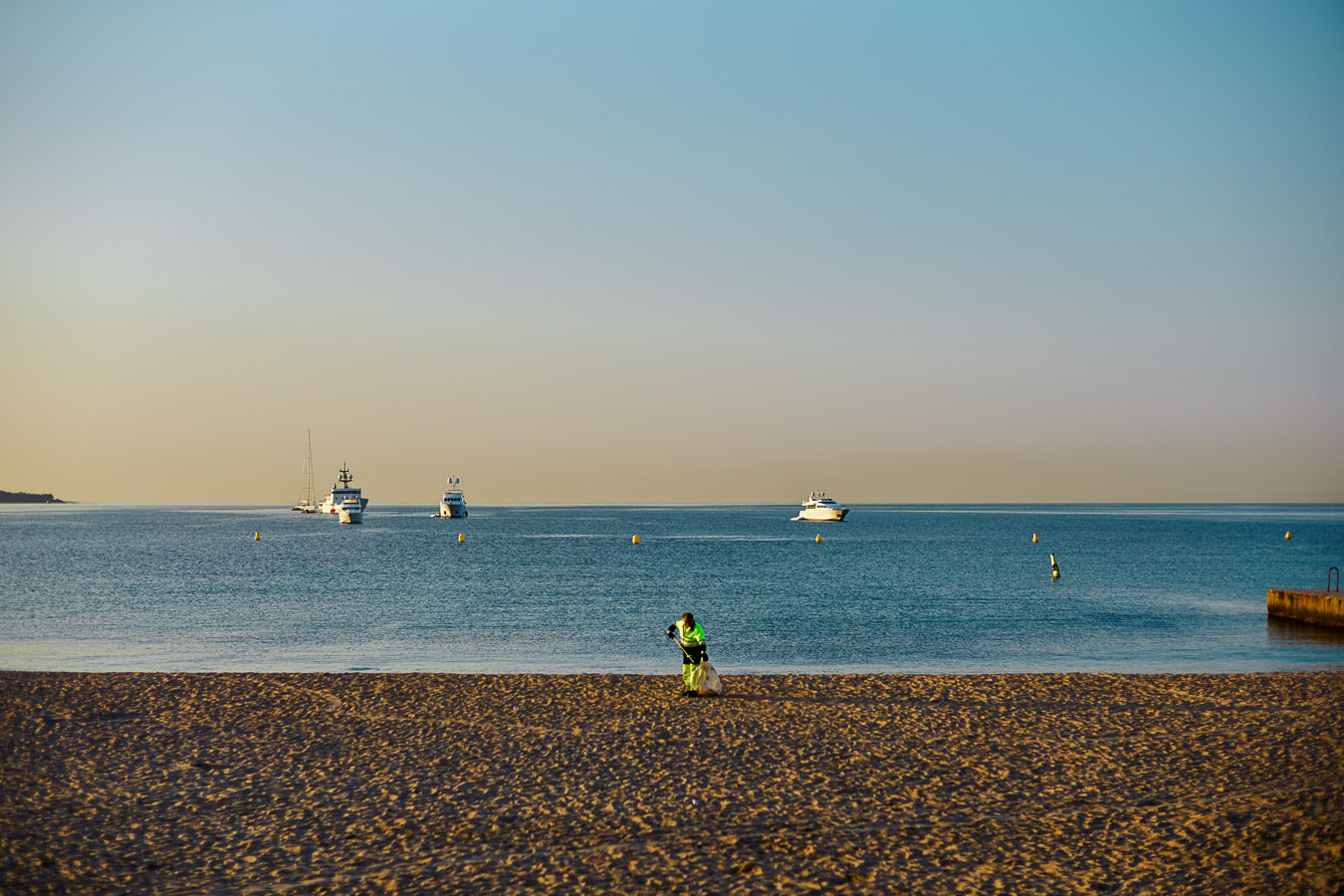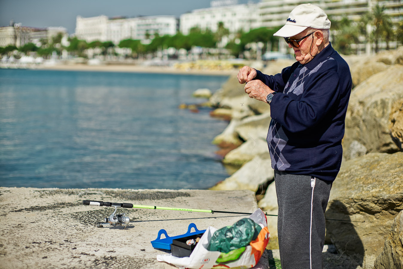 Nach einem ausgiebigen Frühstück in der Sonne auf der Terrasse vom liebevollen und familiären Hotel „Albert 1er“ räumte ich erst mein Zimmer und spazierte dann ein letztes Mal über dem Boulevard de la Croisette. Am Ende der 2km langen Strasse mit permanentem Blick auf das Mittelmeer traf ich noch einen gut gelaunten Angler, der 5 Sprachen sprach, aber leider nicht meine. Überhaupt hätte ich mir gewünscht ich könnte mehr als nur drei Worte Französisch. Die Menschen, die ich eher zeigend denn sprechend fragte, ob ich sie fotografieren dürfte, waren überwiegend sehr positiv gestimmt. Gerne hätte ich von ihnen mehr über das Leben in Cannes erfahren.