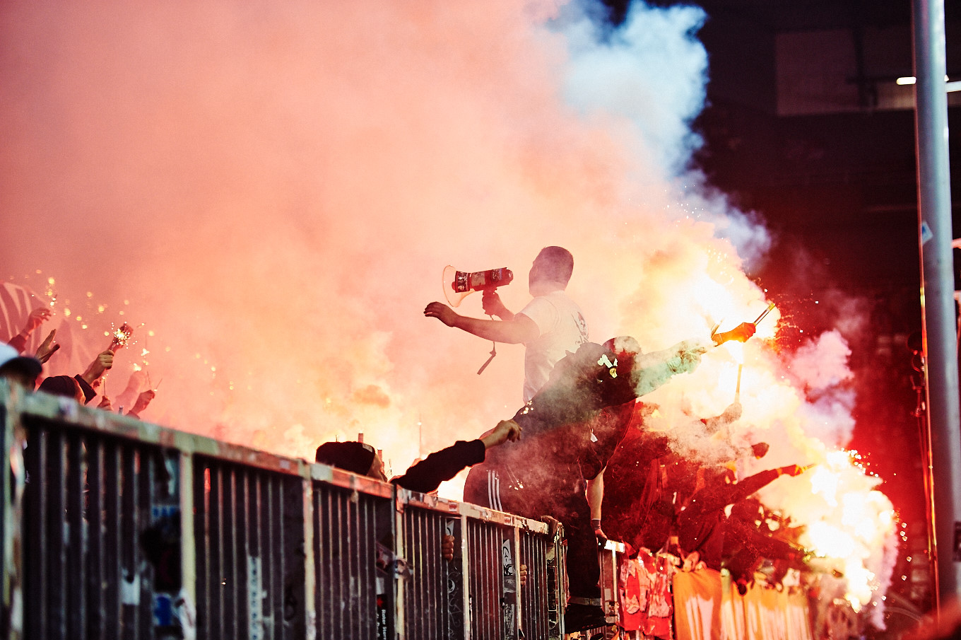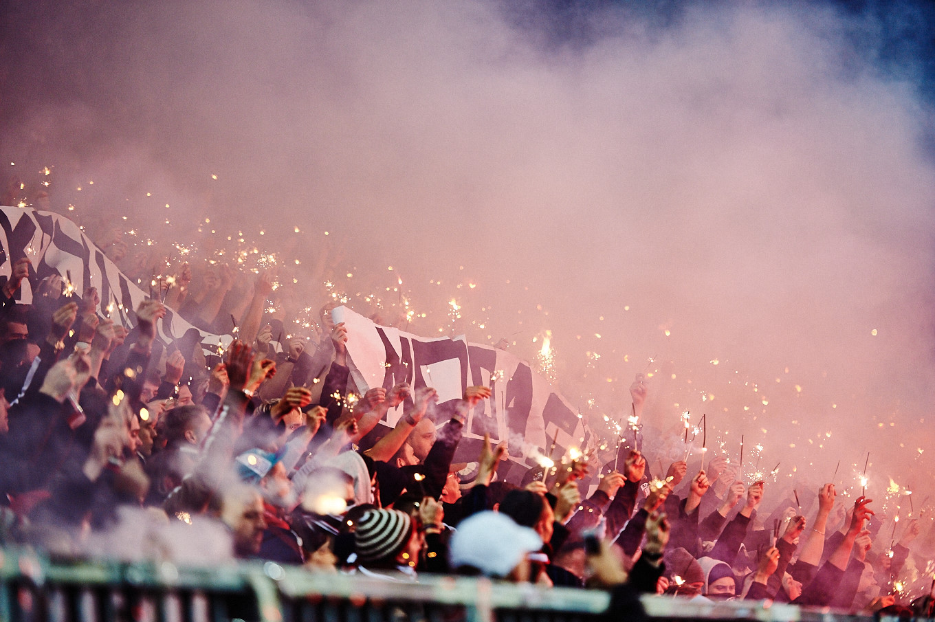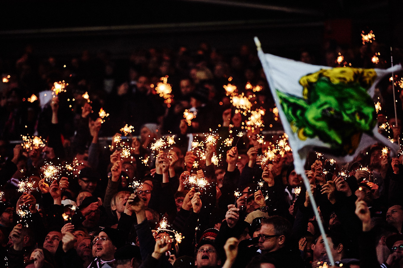 Schon eine Stunde vor Anpfiff gab es schöne laute Wechselgesänge zwischen Gegengerade und Süd. Deutlich nach Schlusspfiff fanden die Wechselgesänge zwischen den laut Abschied feiernden Nordstehern und einigen letzten Gegengeradenbesuchern statt. Dazwischen boten aufwändige Choreos und Wunderkerzen XXL einen äußert würdigen Rahmen für einen Fussballabend, auf den wir alle lange gewartet hatten.