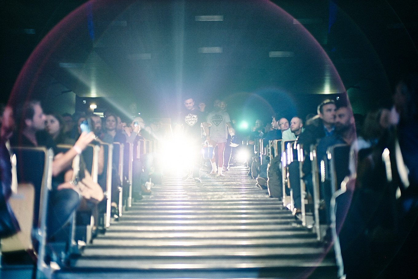 Ich habe mich diesmal am Ring nur mit meiner Leica bewaffnet. Ich hatte keinen Auftrag und war eigentlich nur mir selbst verpflichtet, schicke Bilder mit nach Hause zu bringen. Also nutzte ich die seltene Gelegenheit und schaute mal, was bei einer schnellen Sportart ohne Autofokus so geht. Auch wenn mir das bei 1.4er Offenblende beim 24er Summilux ganz gut gelungen ist, den Kämpfern im Ring mit der Schärfe folgen zu können, so weiß ich nun doch, dass die Konzentration im zweiten Teil des Abends langsam flöten ging. Zu meiner Verteidigung kann ich nur sagen, dass ich vorher ja noch im Millerntor fotografiert habe. Erfreulich war für meine Nachbearbeitung, dass ich viel weniger Bilder gemacht habe als sonst. Ich habe mich auf die Action am Ring konzentriert und nur einmal mit der Leica M ausgelöst. Bei der D4 ist dank 10 Bilder/Sekunde die Versuchung viel größer, sich mehr auf die Kamera als auf sein Auge zu verlassen. Fazit: schon nicht mal ein Drittel der Auslösungen als üblich. Und die Keeperquote ist glücklicherweise trotzdem höher. In der obigen Galerie seht ihr meine Lieblingsbilder des Abends. Ach ja: das Bild mit dem geilen Lensflare ist natürlich mit dem Nocti gemacht…