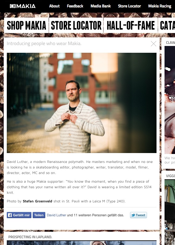 Dabei trug er unter anderem eine schicke Jacke vom finnischen Modelabel Makia. Die nun wiederrum mochten dann mein Bild. Deswegen haben sie nun extra eine neue Kategorie auf ihrer Homepage eröffnet: „people who wear Makia„.