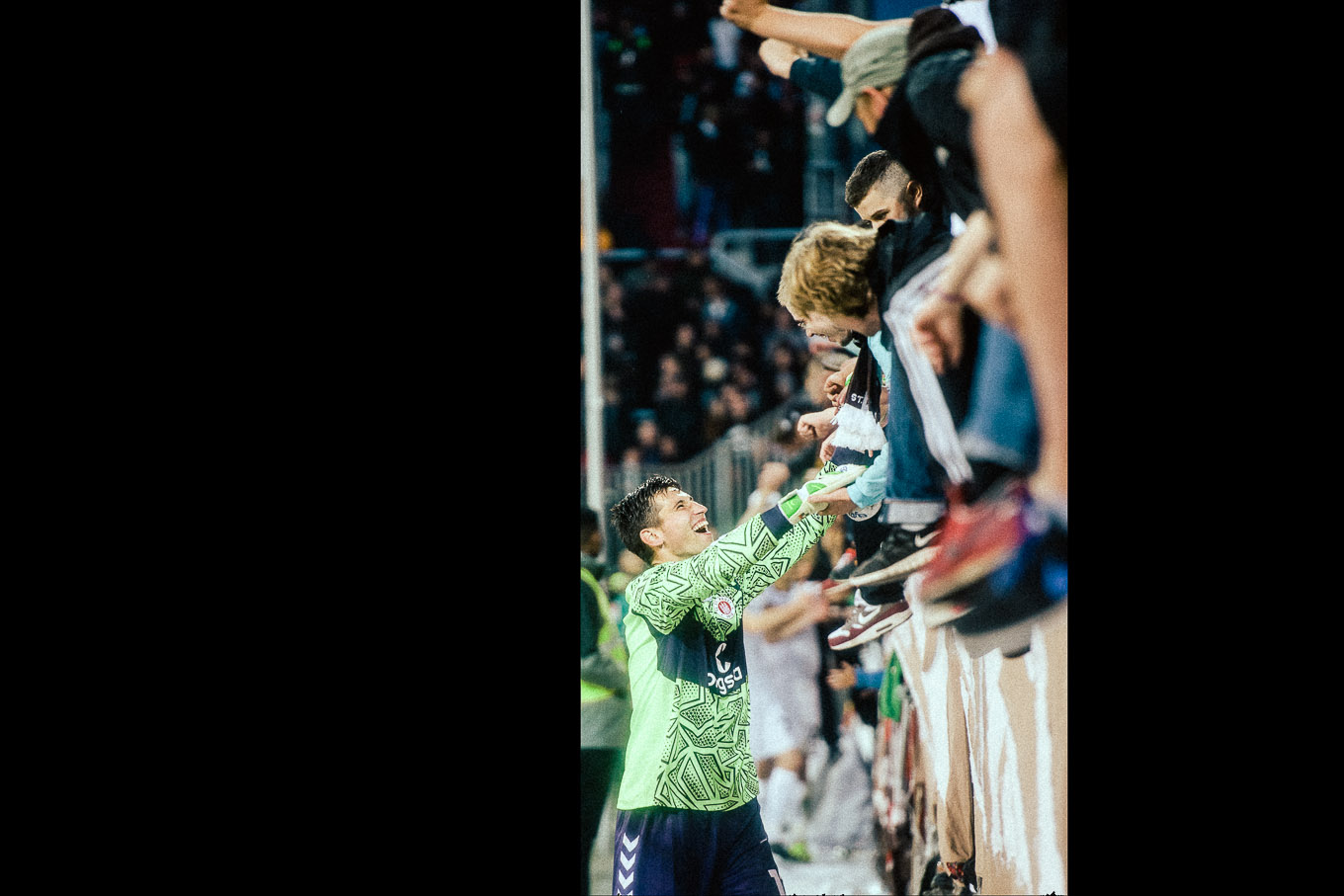 Übrigens ist Tschauner nicht nur wegen seiner Paraden für mich der Held des Spiels, sondern auch weil er zum richtigen Zeitpunkt des Spiels die Gegengerade zu neuen Gesängen dirigiert hat. Von da setzte sich die Roar-Welle bis zur Haupt durch und mündete in kollektive Freudenschreie an der Nachspielzeit.