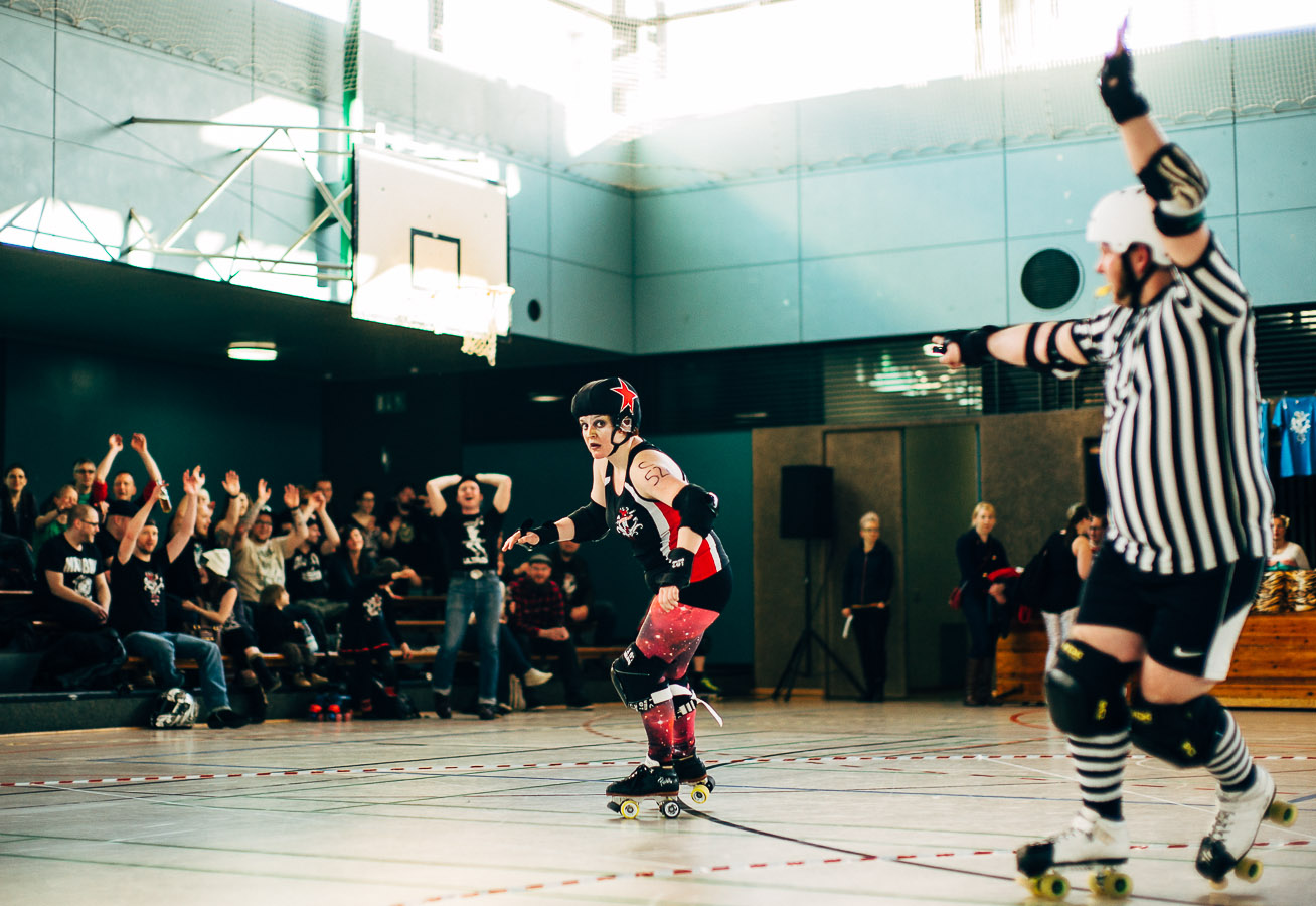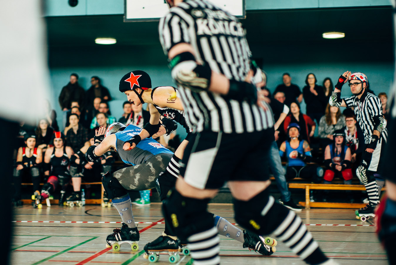 Für mich gleich mehrere Gründe beim Rollerderby der Hamburg Harbour Girls nur mit meiner Leica und dem 50er vorbeizuschauen. Rollerderby ist ein Teamsport, der Taktik, Geschick, Sport und bei aller Wettkampfhärte auch gute Laune miteinander verbindet. Mit Kamera dabei zu sein, ist immer ein großes Vergnügen.
