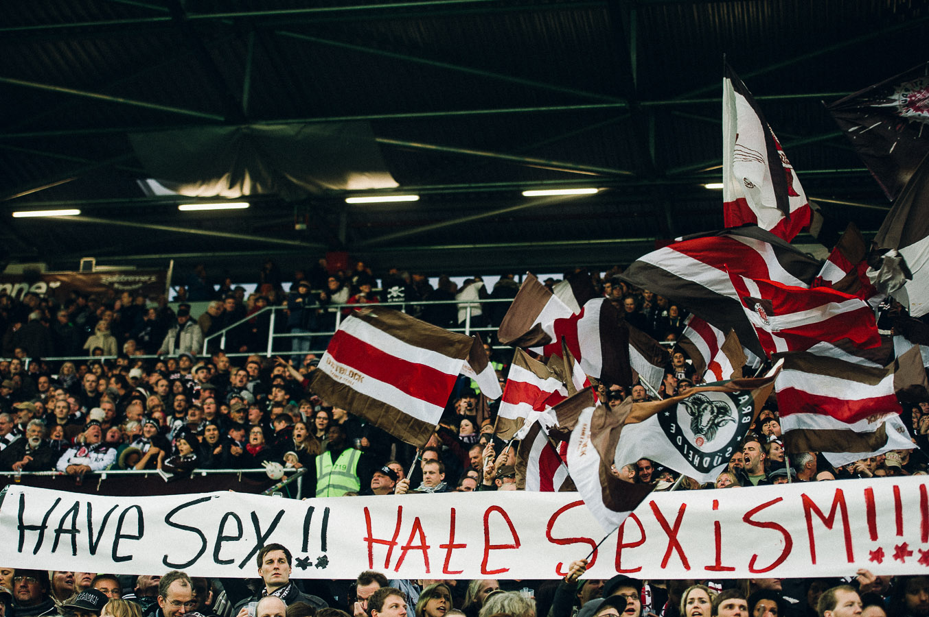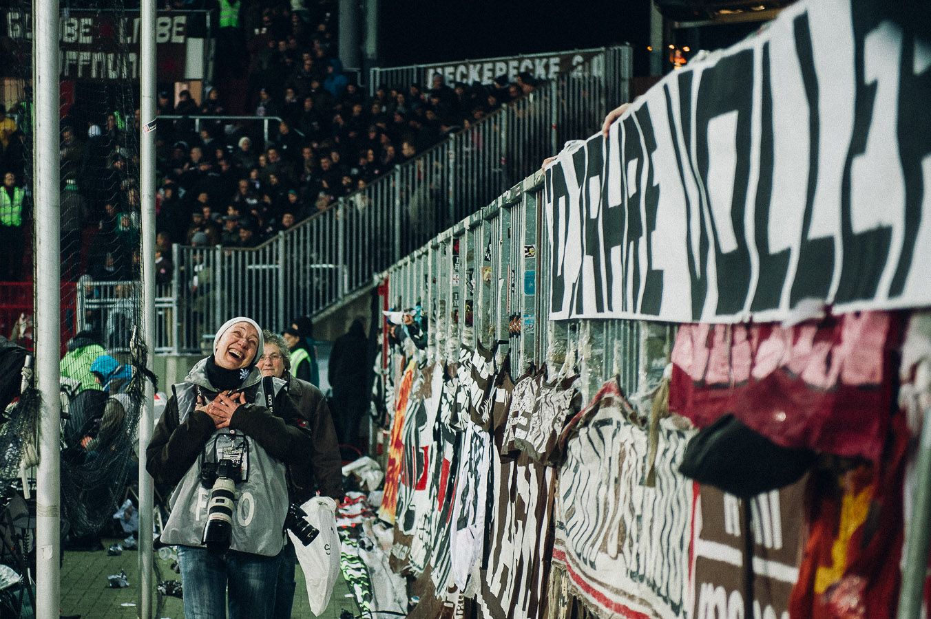 Als ich so die Bilder für den Saisonrückblick 2013/14 von den Spielen des FC St. Pauli am Millerntor zusammensuchte, fragt ich mich unweigerlich: „was war denn nun dein persönlicher Saisonhöhepunkt?“ Natürlich fällt mir da das Last-Minute-Tor mit der ersten Ballberührung von Sebastian Meier ein. Oder die vielen wunderbaren Choreos auf unterschiedlichen Tribünen zu Scholz und Neumann, zu 5 Jahren Nordsupport oder gegen Homophobie und Sexismus. Selbstverständlich war der Abschied von Fabian Boll ein tränenreicher Spieltag. Wunderschön war aber auch das 10-jährige Jubiläum von Frau Afroh herself als Fotografin im braun-weißen Umfeld.
