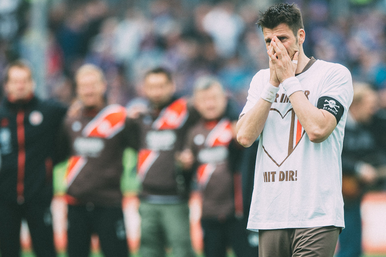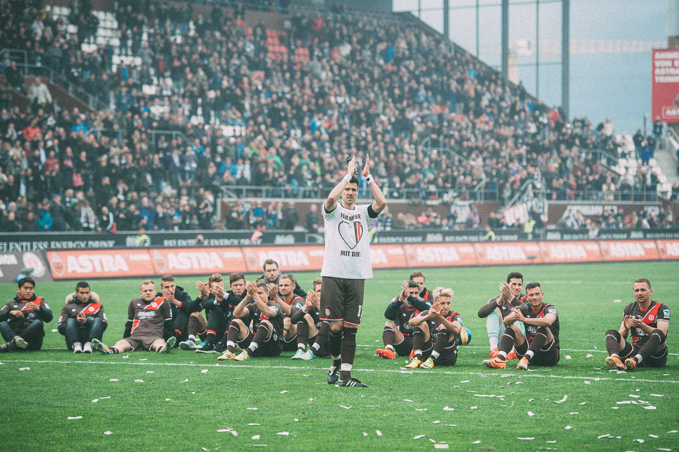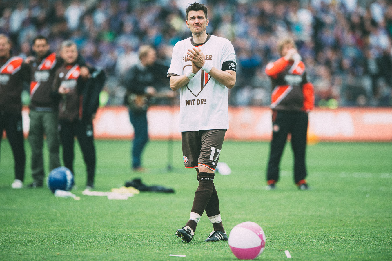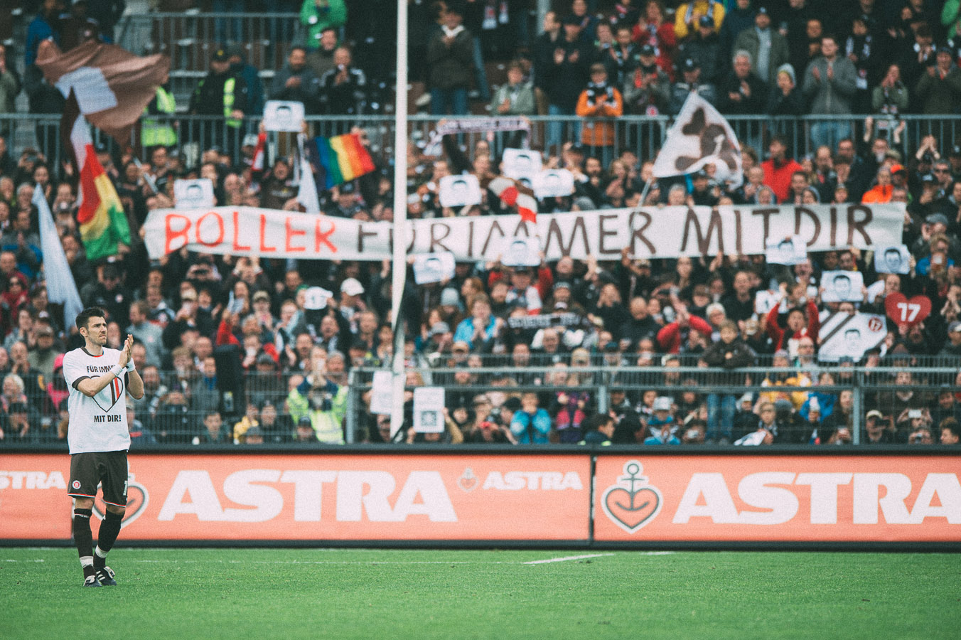 Natürlich ist die Beendigung einer überragenden Spielerlaufbahn immer ein emotionaler Höhepunkt. So wie Boller auf dem Platz, haben bestimmt viele Fans auf den Rängen ein paar Tränchen vergossen. Zurecht, wie ich finde: schließlich liegen gerade bei Sankt Pauli, Fussball und Liebe sehr dicht beisammen. Bei mir ging’s während des Spiels, weil ich mich ja auf’s Fotografieren konzentrieren musste. Aber als ich dann zu Hause die ganzen Fotos für den Blog aussuchte, war es auch um mich geschehen. Farewell, mein lieber Fabian Boll. Wenn es Spieler wie dich nicht gäbe, müsste man sie erfinden.