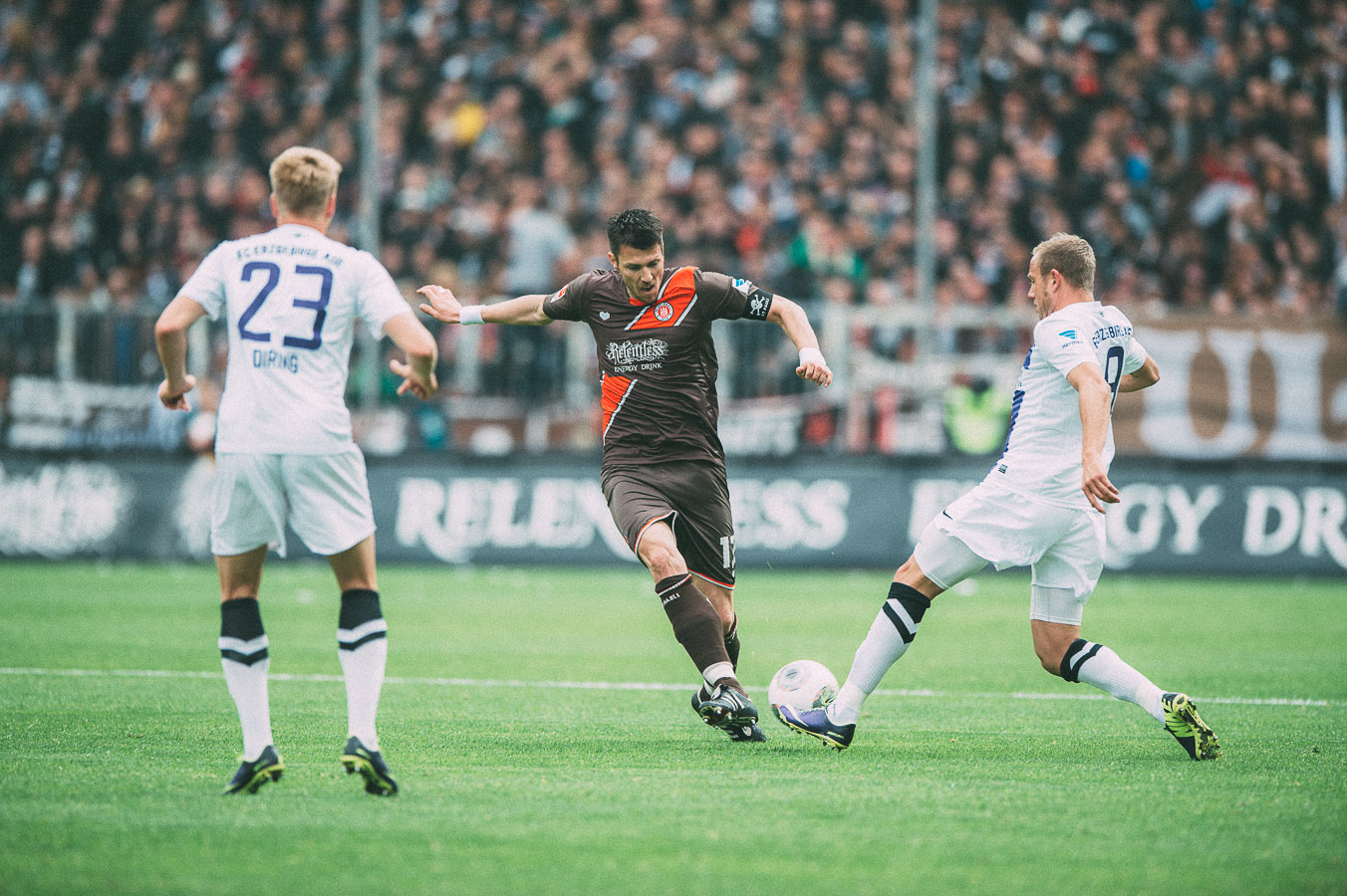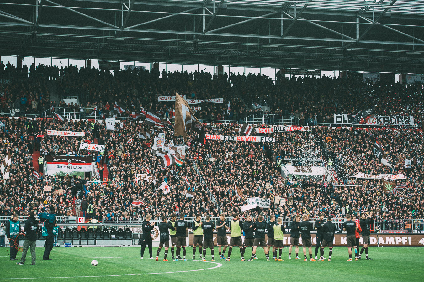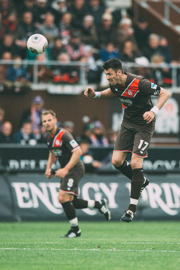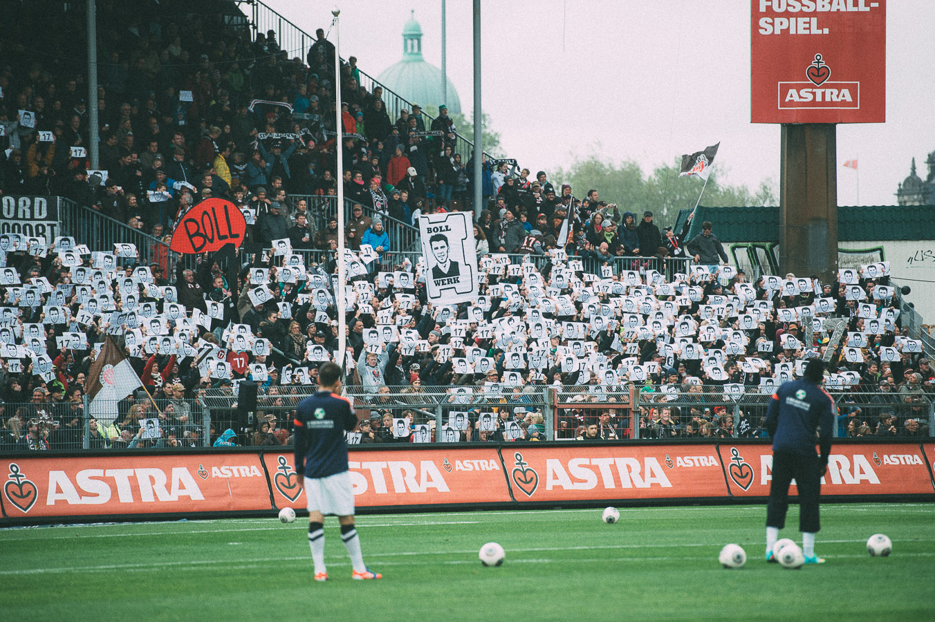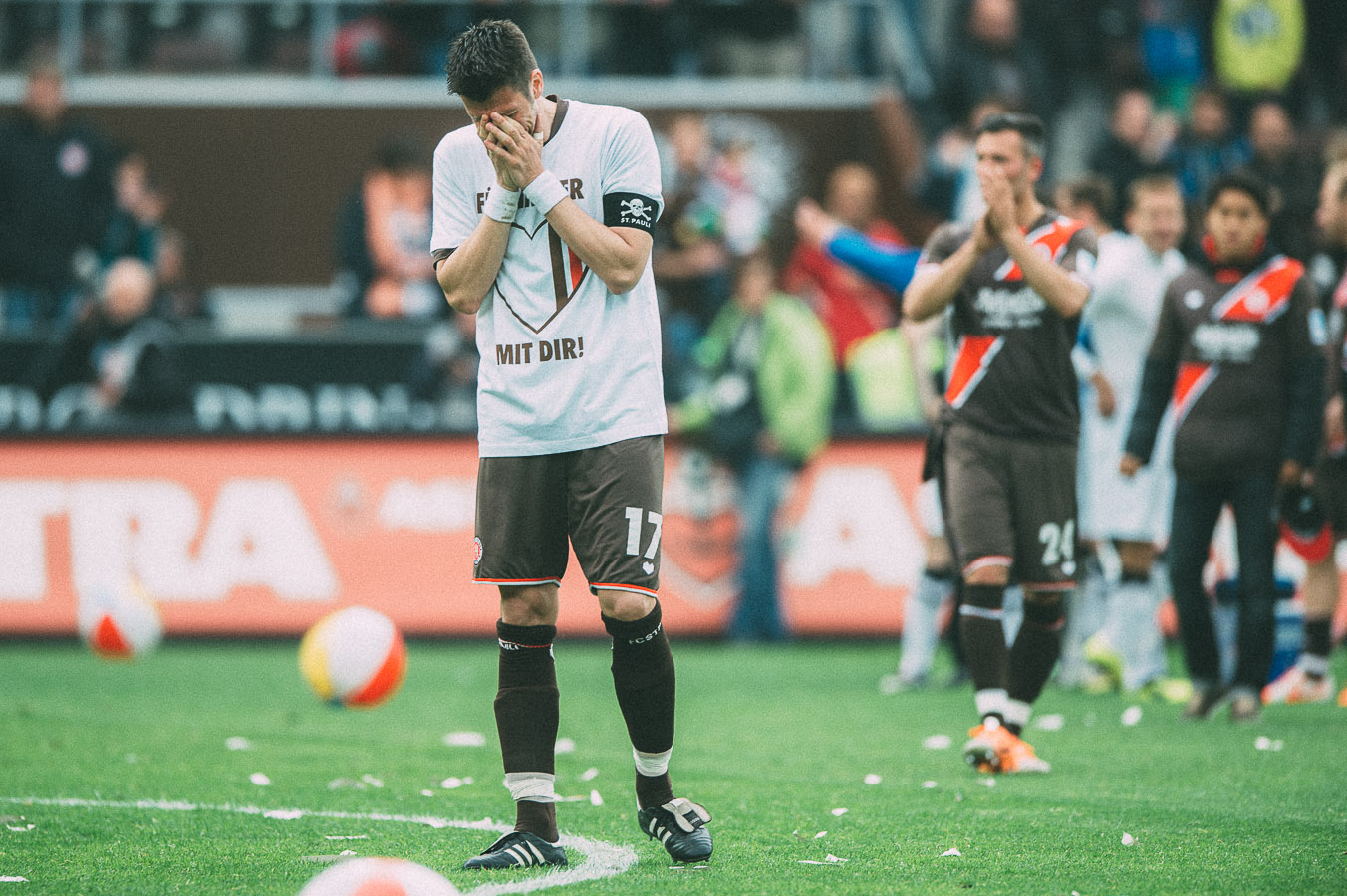 Natürlich ist die Beendigung einer überragenden Spielerlaufbahn immer ein emotionaler Höhepunkt. So wie Boller auf dem Platz, haben bestimmt viele Fans auf den Rängen ein paar Tränchen vergossen. Zurecht, wie ich finde: schließlich liegen gerade bei Sankt Pauli, Fussball und Liebe sehr dicht beisammen. Bei mir ging’s während des Spiels, weil ich mich ja auf’s Fotografieren konzentrieren musste. Aber als ich dann zu Hause die ganzen Fotos für den Blog aussuchte, war es auch um mich geschehen. Farewell, mein lieber Fabian Boll. Wenn es Spieler wie dich nicht gäbe, müsste man sie erfinden.