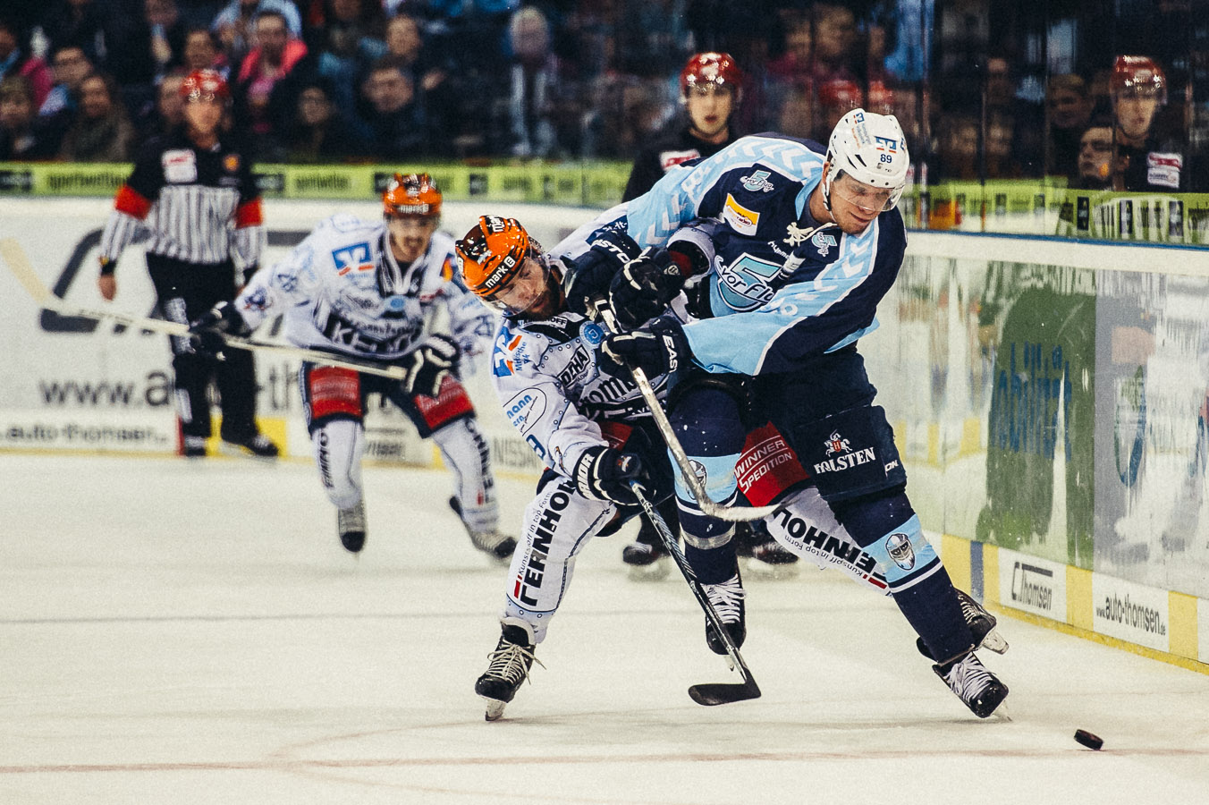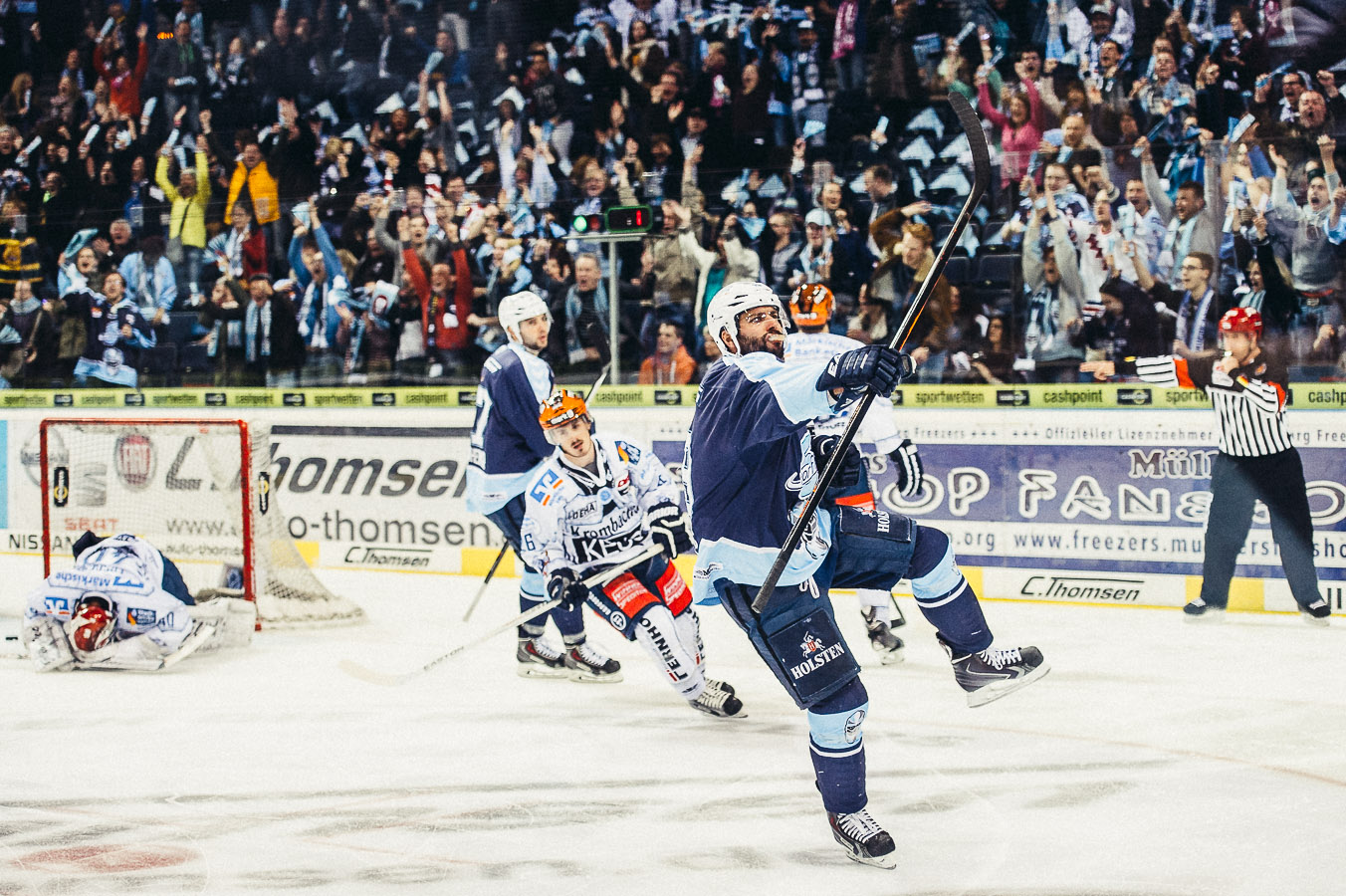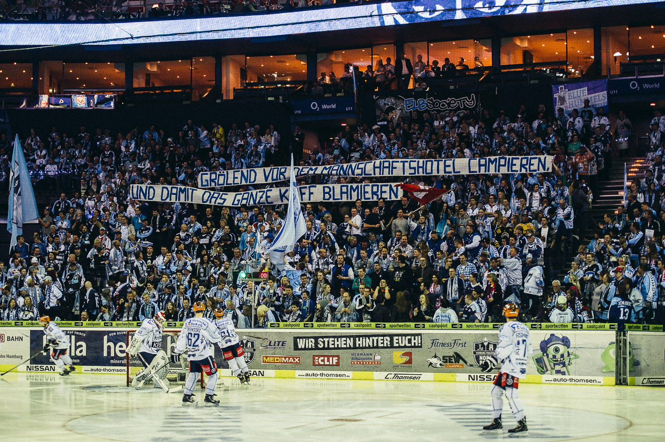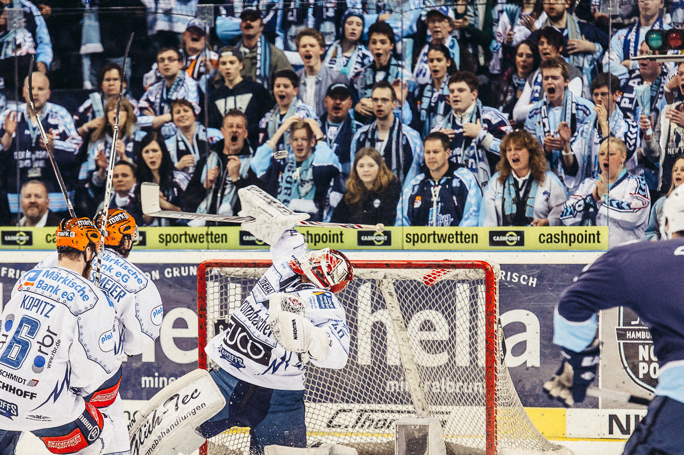 Die Hamburg Freezers und ihre Fans haben diese Saison alle Höhen und Tiefen mitgemacht – zuletzt allerdings eher Höhen. Nach dem verwachsten Saisonstart ging es vom letzten Tabellenplatz bis hoch auf den ersten und somit als einer der Favoriten in die Playoffs. „Wir haben gute Laune“ sangen daher die Fans der Freezers vor dem Spiel ihrer Mannschaft gegen Iserlohn Roosters. Aber es sollte lange dauern, bis sie es wieder singen sollten. Gegen die stark verteidigenden Roosters taten sich die Freezers in diesem Spiel ebenso schwer, wie auch schon beim letzten Heimspiel. Diesmal machten die Freezers allerdings weniger Fehler und mussten deswegen nur einen Gegentreffer hinnehmen. Trotzdem dauerte es bis zur 56. Minute bis das Roosters Abwehrbollwerk überlistet werden konnte und Roy die Freezers entscheidend in Führung schoss. Entsprechend groß war der Jubel.