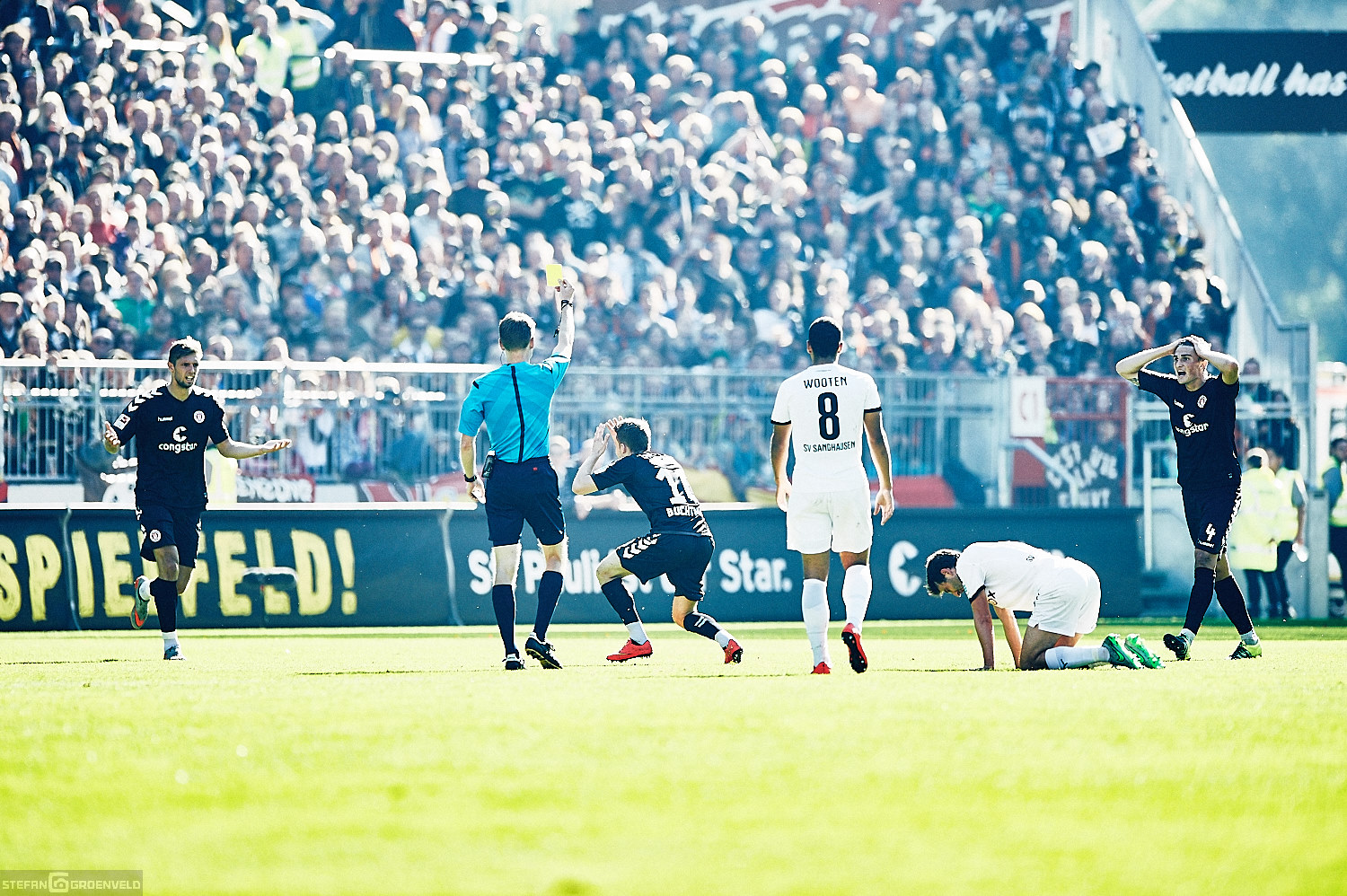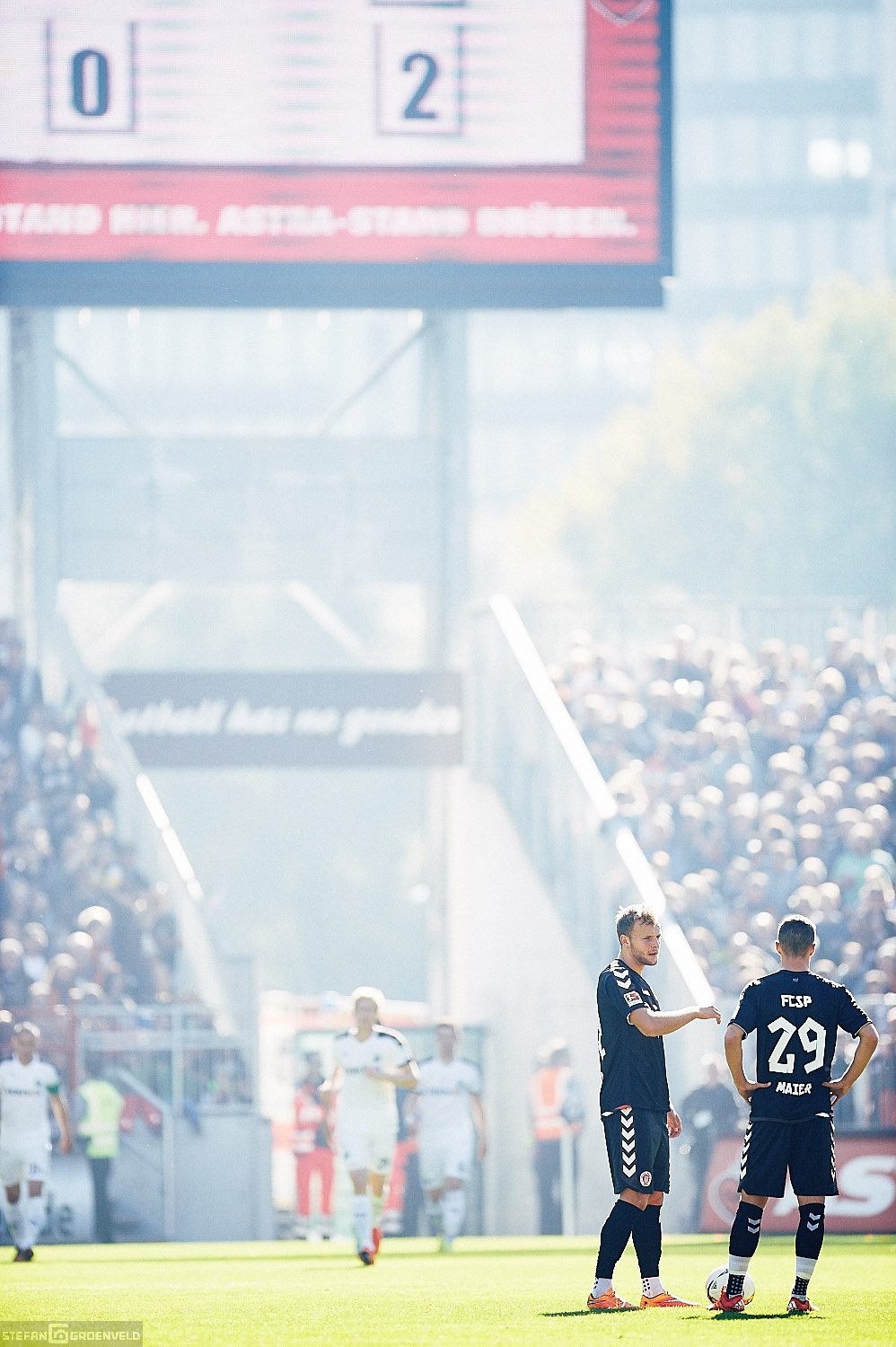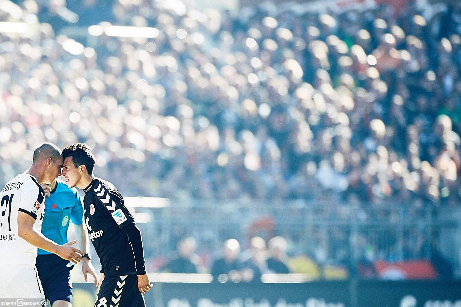 Um 13:08 Uhr ist mir klar, dass es den Spielern wohl ganz ähnlich geht. Und da war dann auch klar, dass das Spiel entschieden ist. Gegen die in der zweiten Liga üblichen 10 Mann Abwehr tun sich auch 95% der Mannschaften aus der ersten Liga schwer. Trotzdem ist es natürlich sehr erfreulich, dass der FC St. Pauli nicht an die Ausweglosigkeit der Situation glaubt. Obwohl der Gegner heute mindestens einen Mann mehr auf dem Feld hat. Dazu mehr in den Bildern.