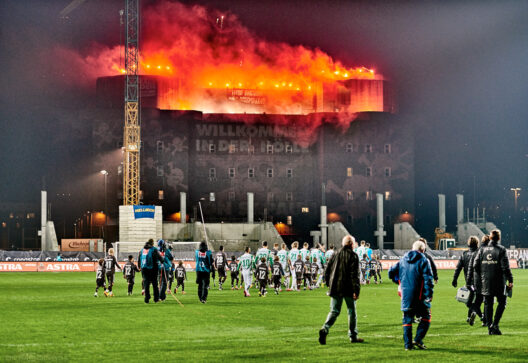 Weltklasse! Echte Gänsehautfotos, da habe ich drauf gehofft, dass Du Dir für diesen Anlass etwas einfallen lässt. Schön dass wir einen Fotografen mit braun-weißem Herzblut da unten stehen haben. Gerechnet haben viele wohl nur mit drei Tribünen, was für ein Aufwand, unglaublich. Rindermarkthallenparkdeck, ich fass es nicht.