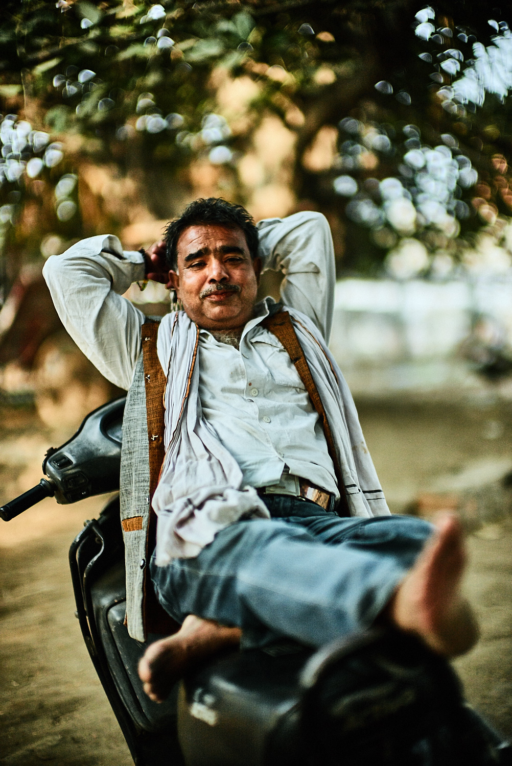 Letztlich war die Idee mit dem 50er an diesem Nachmittag eine gute Entscheidung. Trotz der längeren Brennweite bin ich so näher an die Menschen herangekommen als bei den sonstigen Situationen im Strassengewirr. Besonders glücklich bin ich darüber, dass ich den Abgebildeten das in Indien durchaus übliche Fotografierlächeln ausreden konnte. Vielleicht waren die Leute aber auch nur verwirrt, weil das Fotografieren so lange dauerte.