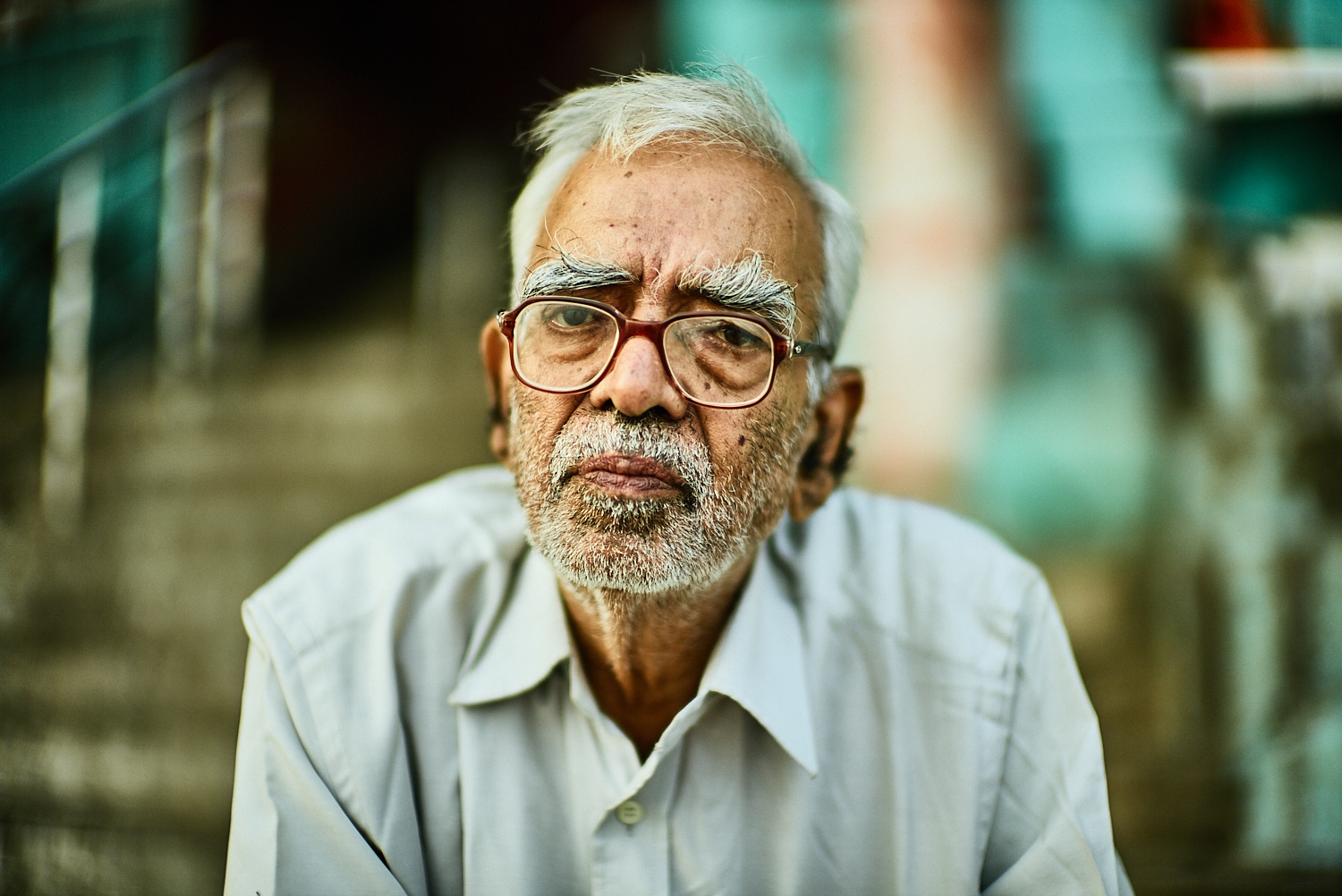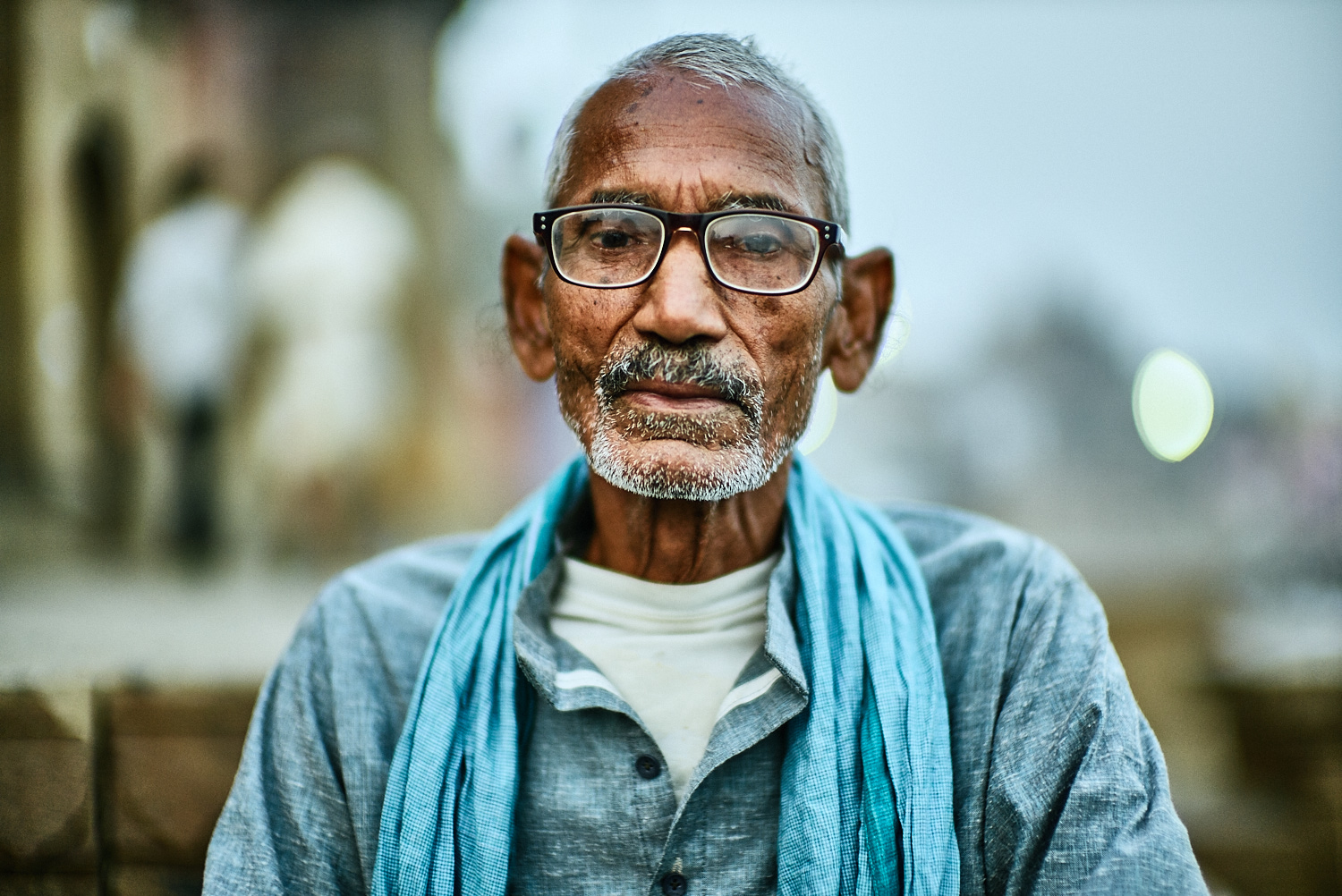Bei meinem zweiwöchigen Aufenthalt in Indien verwendete ich bei rund 90% der Aufnahmen mein 35mm Objektiv. Das habe ich auf dieser Reise wirklich lieb gewonnen. Natürlich eignet sich diese Brennweite auch hervorragend, um Gesichter zu fotografieren. Irgendwann verlangte aber mein Hirn nach Abwechslung und der Portraitfotograf in mir lechzte nach Befriedigung. Zufälligerweise war ich gerade in einer ruhigeren Ecke von Varanasi und die Menschen um mich herum, schienen auch mehr Zeit zu haben. Für belebte Strassenszene mit eben jenem 35er war dieser Teil der Stadt am Ganges nicht so gut geeignet.