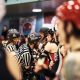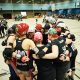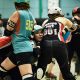 Zurück zum sportlichen Geschehen: die Blockarbeit der Packs werden immer besser. Die Jammer brauchen mittlerweile viel länger, um sich durch die Packs zu wühlen, um Punkte fürs Team zu holen. Im Harbor Girl A-Team fiel mir die geschickte Taktik von Knock ’n Rose auf, die sich mit Pirouetten fein aus der Affäre zog. Dafür gab es dann auch Szeneapplaus vom Publikum. Das Bout ging dann allerdings trotzdem 140:208 verloren. Die Finninnen hatten eine sehr starke Jammerin in ihren Reihen. Völlig zurecht inszenierte sie sich im Programmheft mit Molotow-Cocktail. So bewaffnet sprengte sie sich ein ums andere Mal den Weg durch das Hamburger Pack, egal mit welcher Taktik diese sich wehrten. Spannenderweise hatte die Jammerin die Nummer 1312 und hörte auf den wohlklingenden Namen ACABella. Gegen Spielerinnen mit solchen Namen verliert man auch mal gerne…