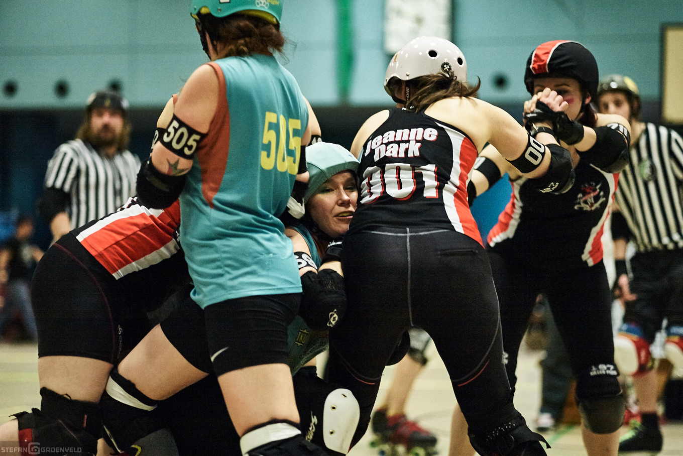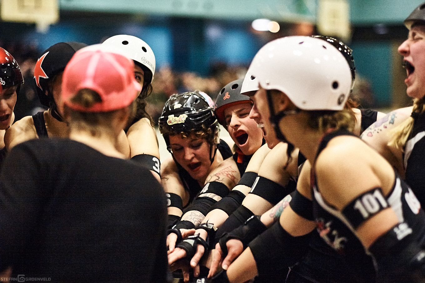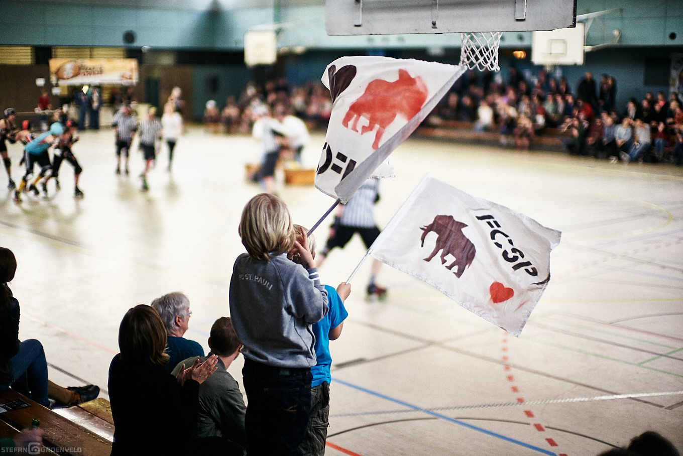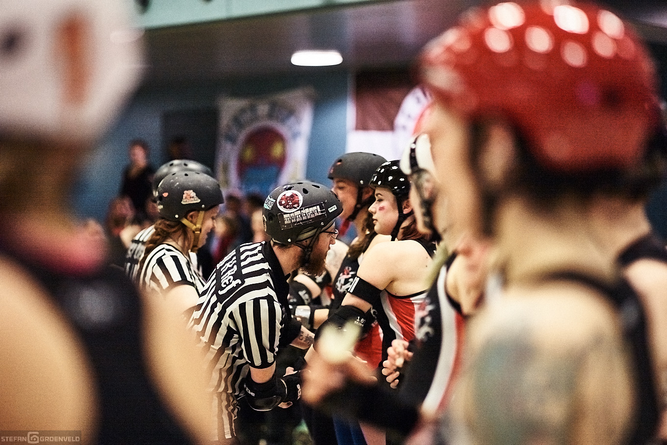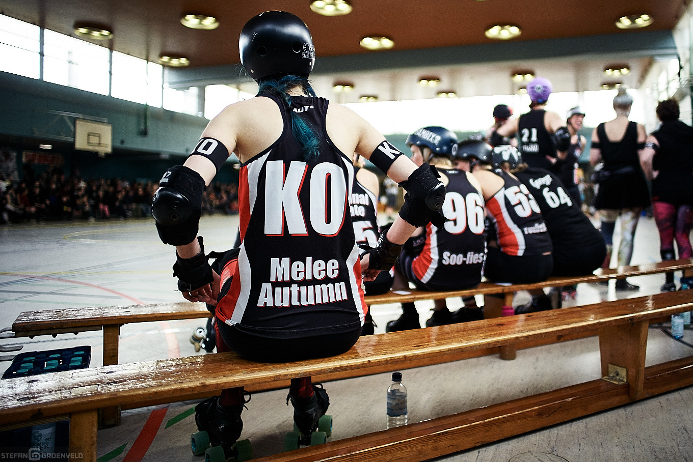 Um es kurz zu machen: gegen die internationalen Gäste hatten die Harbor Girls keine Chance. Beide Bouts gingen deutlich verloren. Das tat der guten Stimmung untereinander und auch in Reihen der Fans keinen Abbruch. Gekämpft wurde nämlich trotzdem mit harten Bandagen, aber fairen Mitteln. Ich habe mal wieder ein paar Bilder mitgebracht.