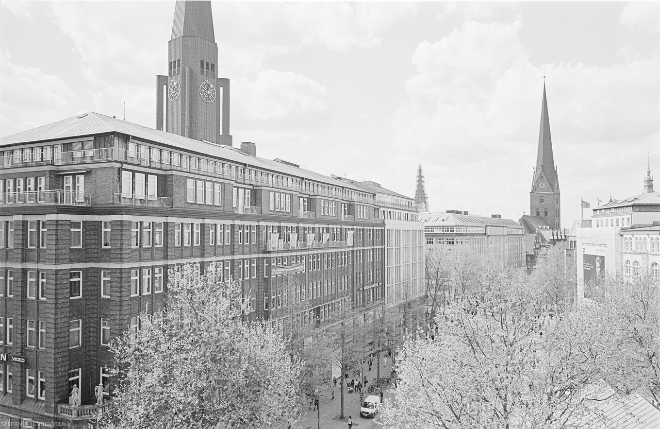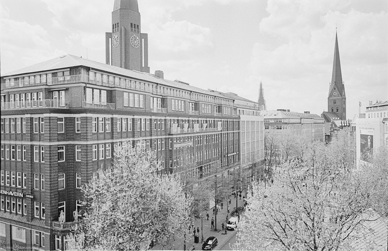 Der Tri-X 400 ist seit über 60 Jahren auf dem Markt. Die berühmtesten Nachrichtenfotos wurden mit ihm gemacht. Ein klassischer schwarz-weiß Film auf Silberhalogenidkristallbasis mit entsprechendem Korn und großem Belichtungsspielraum. In der anderen Kamera der T-Max 400, ein neuerer Flachkristallfilm mit großartiger Schärfe und absurd vielen Grautönen. Fotografiert habe ich immer mit den gleichen Optiken bei gleichen Blenden und Belichtungszeiten. Entwickelt wurden beide Filme in HCD-50 von Spürsinn, der die Grautöne wunderbar zum Leben erweckt und die Lichter dabei nicht ganz vergisst. Da beide Filme unterschiedliche Entwicklungszeiten benötigen, konnte ich sie nicht zusammen entwickeln. Der dadurch vorstellbare Fehler in der Empfindlichkeit der Filme habe ich versucht durch peinliche Einhaltung von Entwicklungszeit und -temperatur zu minimieren. Ich glaube, das ist mir ganz gut geglückt.