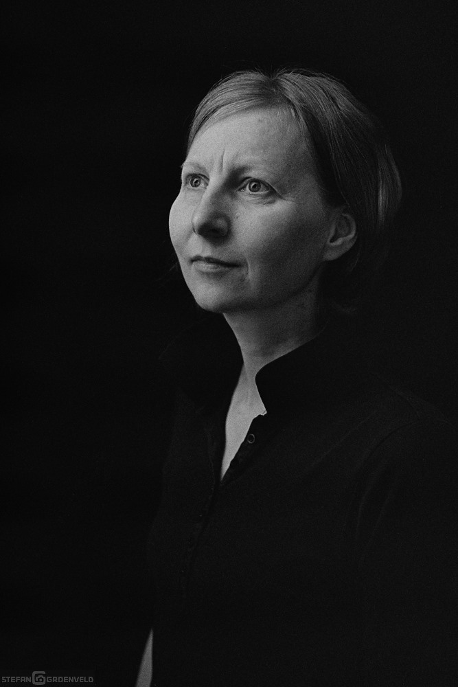 Ich habe neulich schon mal versucht analoges mit digitalem Material zu vergleichen. Dies habe ich nun wiederholt und meine Liebste mit dunklem Shirt vor dunklem Hintergrund gestellt und das Ganze mit einem Striplight beleuchtet.
