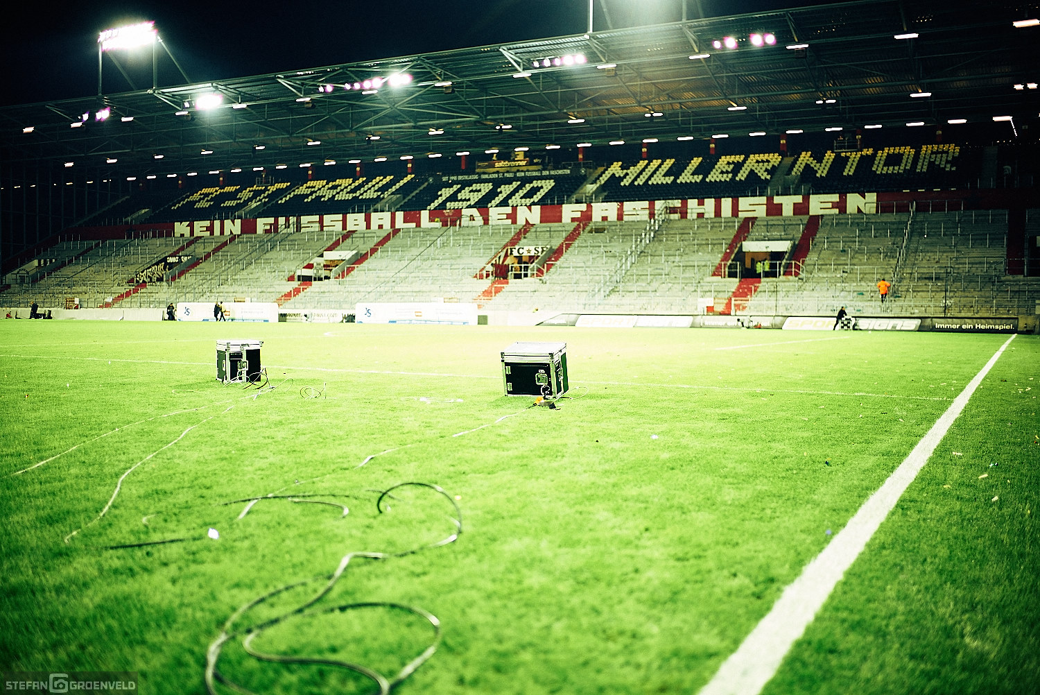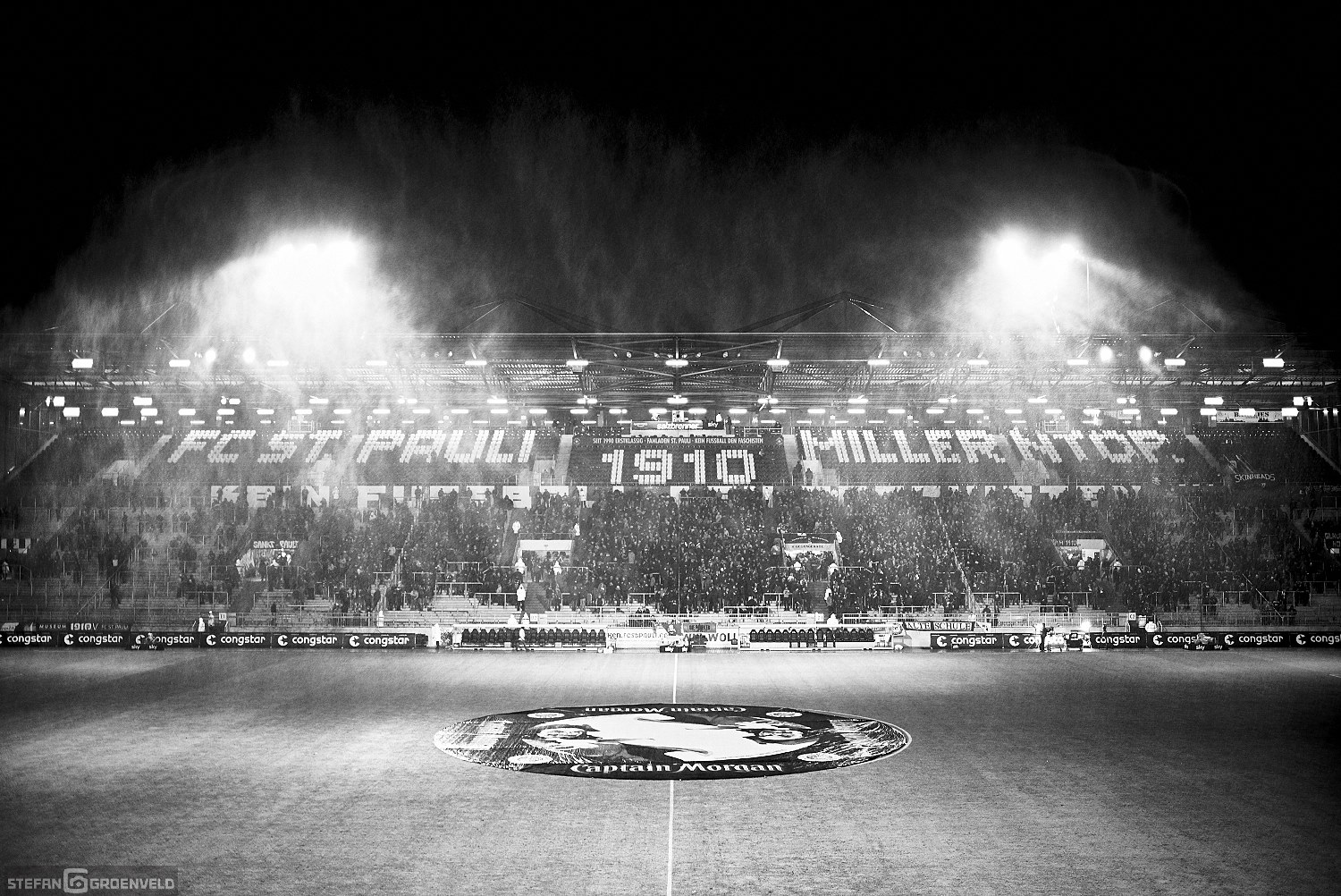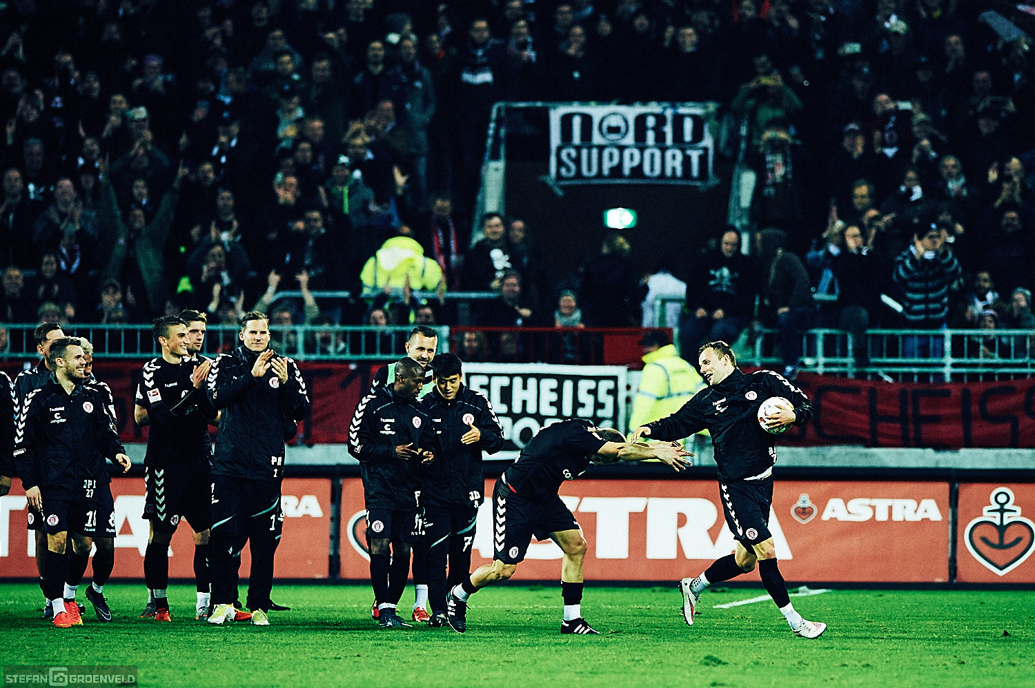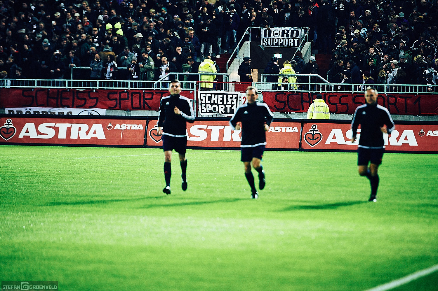 Einig waren sich alle vier Stadionseiten bei der Meinung zu Olympia. Zumindest konnte man auf allen Tribünen entsprechende, ablehnende Transparente erkennen. Der mit Ringen in olympischen Farben symbolisierte Fastringfinger hat mir persönlich am Besten gefallen. Das war grafisch mal was anderes. Entsprechende Transpis begleitete die Musik von den Boomtown Rats in der Halbzeit. „I don’t like Monday“ schallte es aus den Boxen. Ja, die Anstosszeiten sind doof – an das Ergebnis kann ich mich allerdings problemlos gewöhnen. Wenn es eine Garantie darauf gäbe, würde ich auch mit Montagabendspielen leben können. Nächstes Mal kann ja wieder jemand anders treffen…