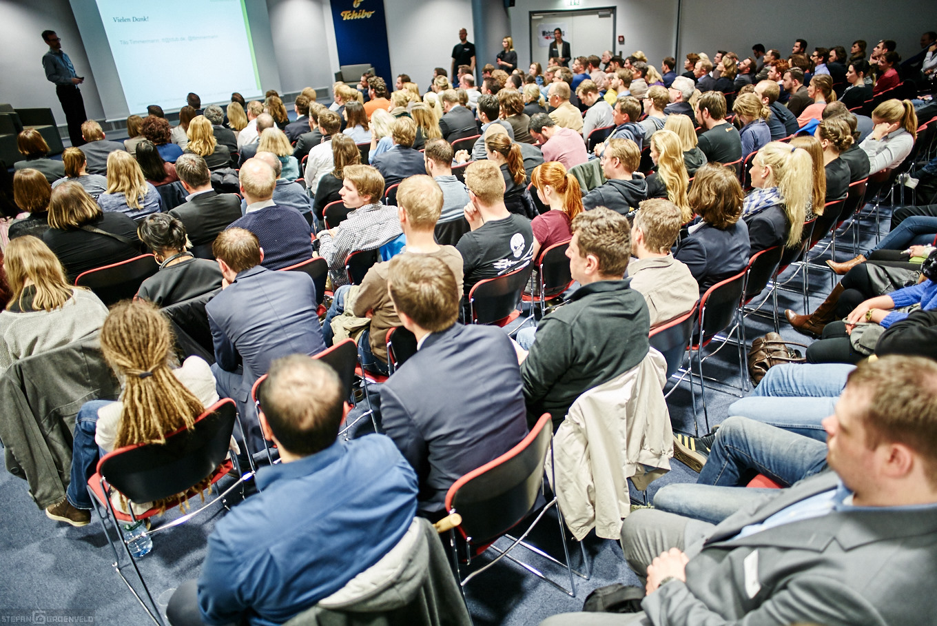 Das Eingangsfoto ganz oben, zeigt übrigens die Situation am Einlass. Alle weiteren Bilder der Veranstaltung findest Du auf der Webseite vom Webmontag Hamburg.