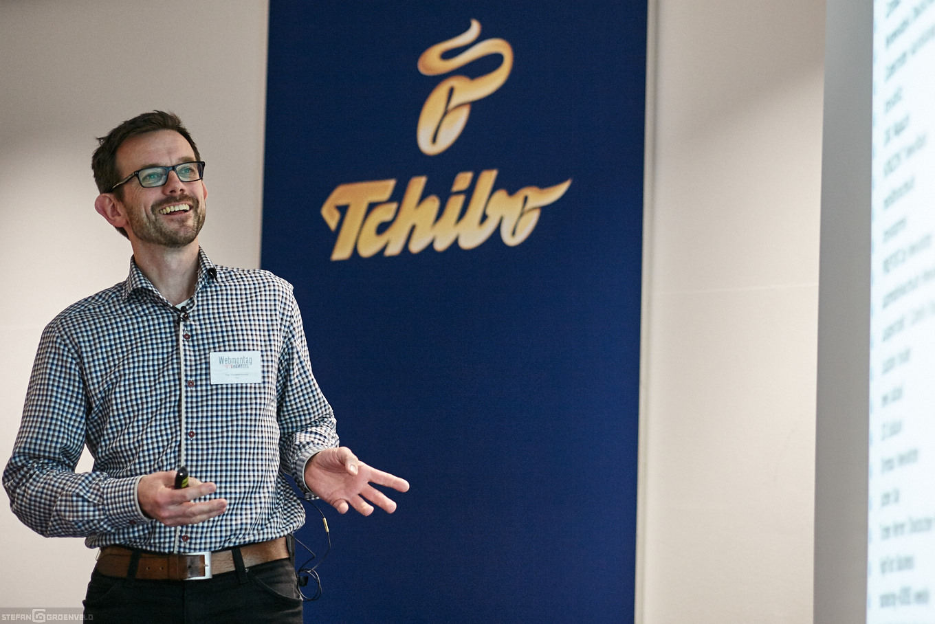 Stattdessen lese ich das vorhandene Licht, suche ich mir geeignete Positionen und warte auf den passenden Augenblick. Hier ein Beispiel für den schon erwähnten Vortragenden Tilo Timmermann.