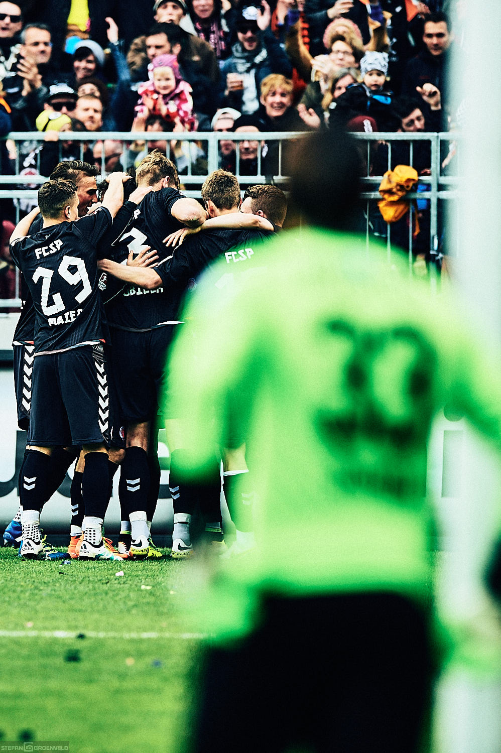 In der Kabine hatte das Trainerteam unterdessen wohl die passenden Worte gefunden. Erstmals erlebte ich eine Drangphase der Jungs in Braun und Weiß. Tatsächlich führte auch die gleich diese erste Aktion zum Erfolg. Niemand anderes als Fafa Picault verwandelte geistesgegenwärtig zum 1:0.