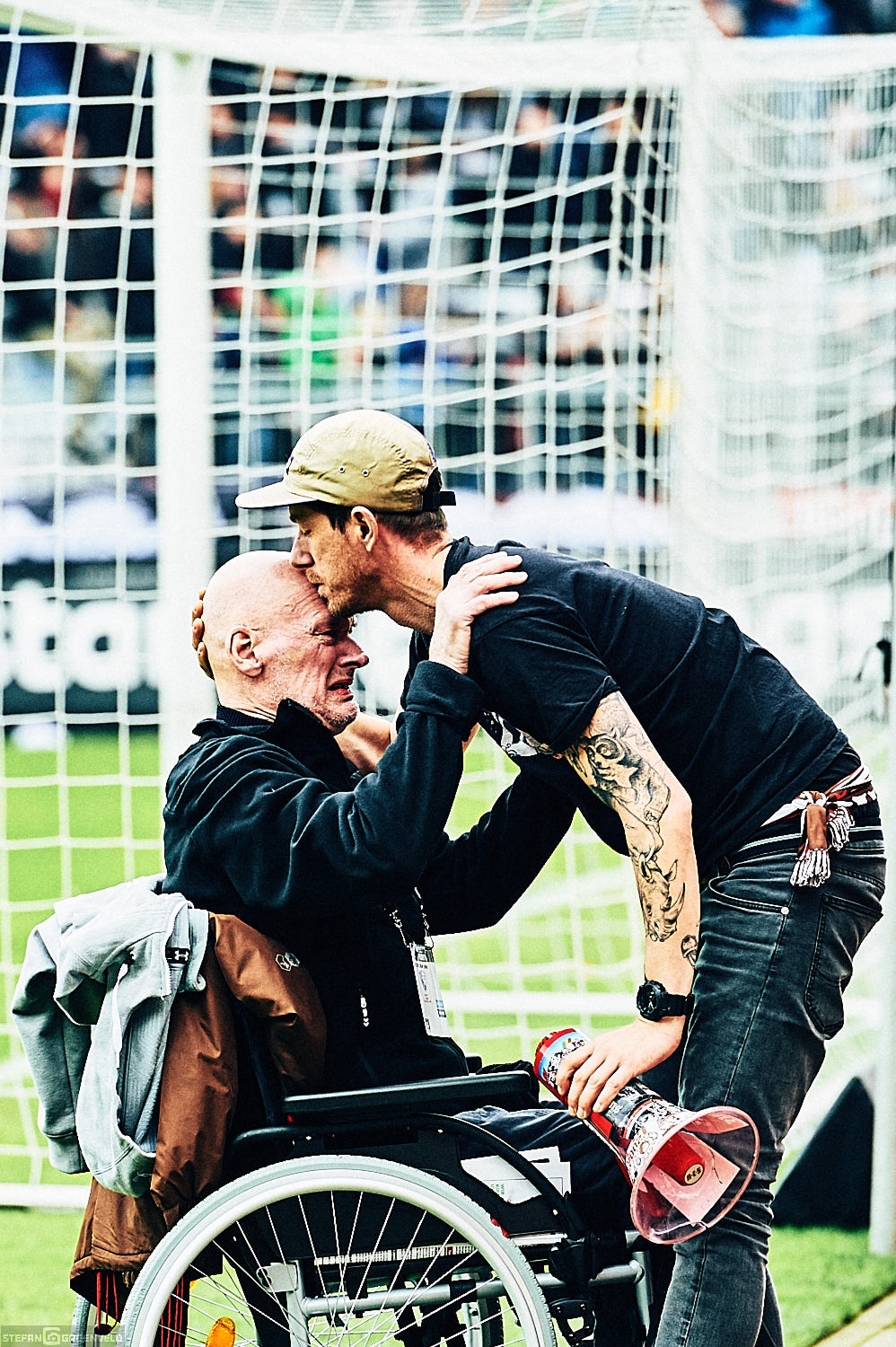 In dieser traf ich meinen alten Motorradkumpel Klaus Rummelhagen auf den Behindertenplätzen und schaute überrascht auf seinen Rollstuhl. Da ich von seinen früheren Bein-OPs wusste, dachte ich zunächst nichts schlimmes. Seine Antwort „Krebs“ ließ mich schlucken. Lieber Klaus, halt die Ohren steif und weiterhin gute Genesung! Von Herzen!