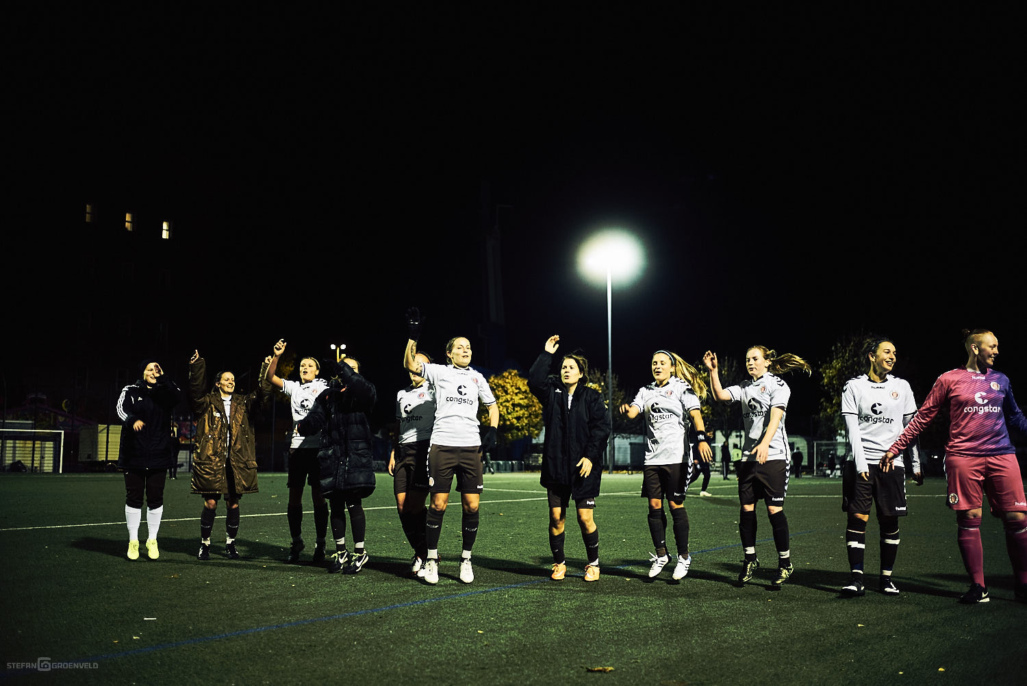 Das alte Machtverhältnis der ersten Halbzeit war auf dem Platz wieder hergestellt und die Zuschauer fröstelten sich dem Ende entgegen. Mit dem Schlusspfiff gab es noch eine hervorragende Chance das Ergebnis zu erhöhen, aber sie wurde mehrfach ausgelassen. Es spricht für die intakte Einstellung der 1. Frauen vom FC St. Pauli, dass sich über das Auslassen der Großchance geärgert wurde. Aber nicht lange, denn dann ertönte der Schlusspfiff. Der FC St. Pauli steht in der nächsten Runde und erstmals wurde Bergedorf besiegt. Klar, dass das gefeiert wurde. Zurecht! Gratulation an die 1. Frauen, tolles Spiel verdient gewonnen.