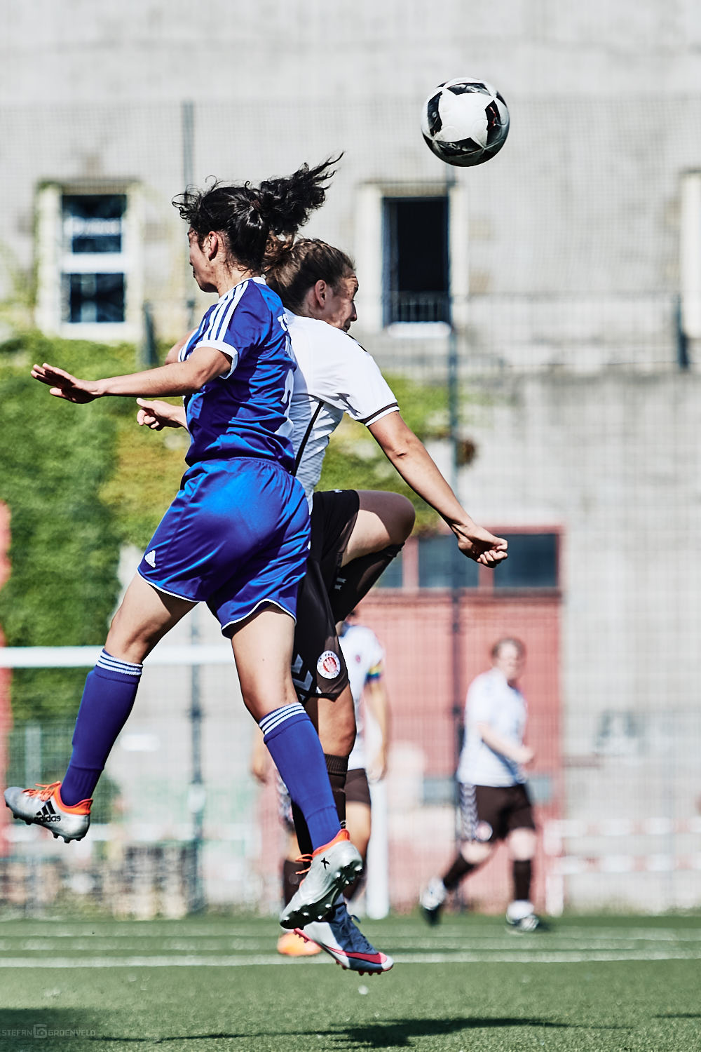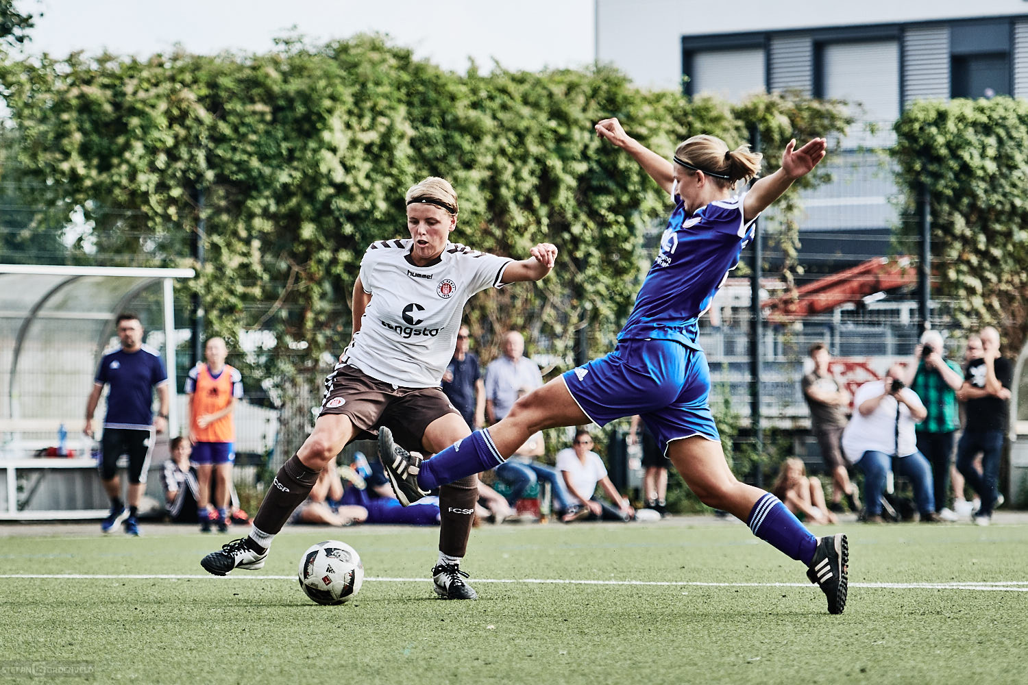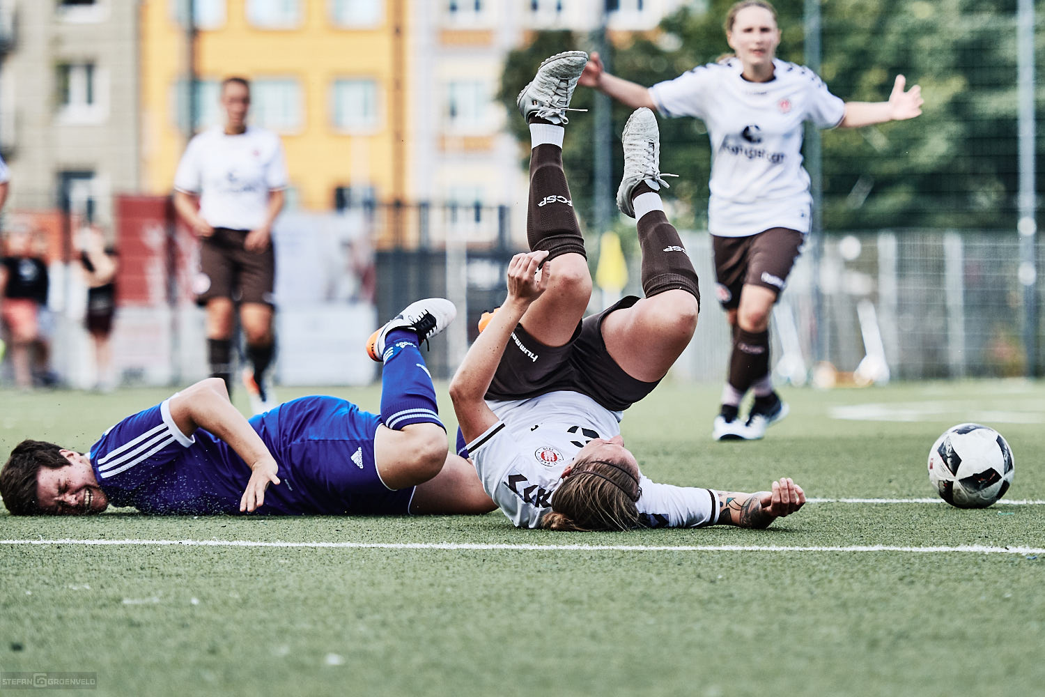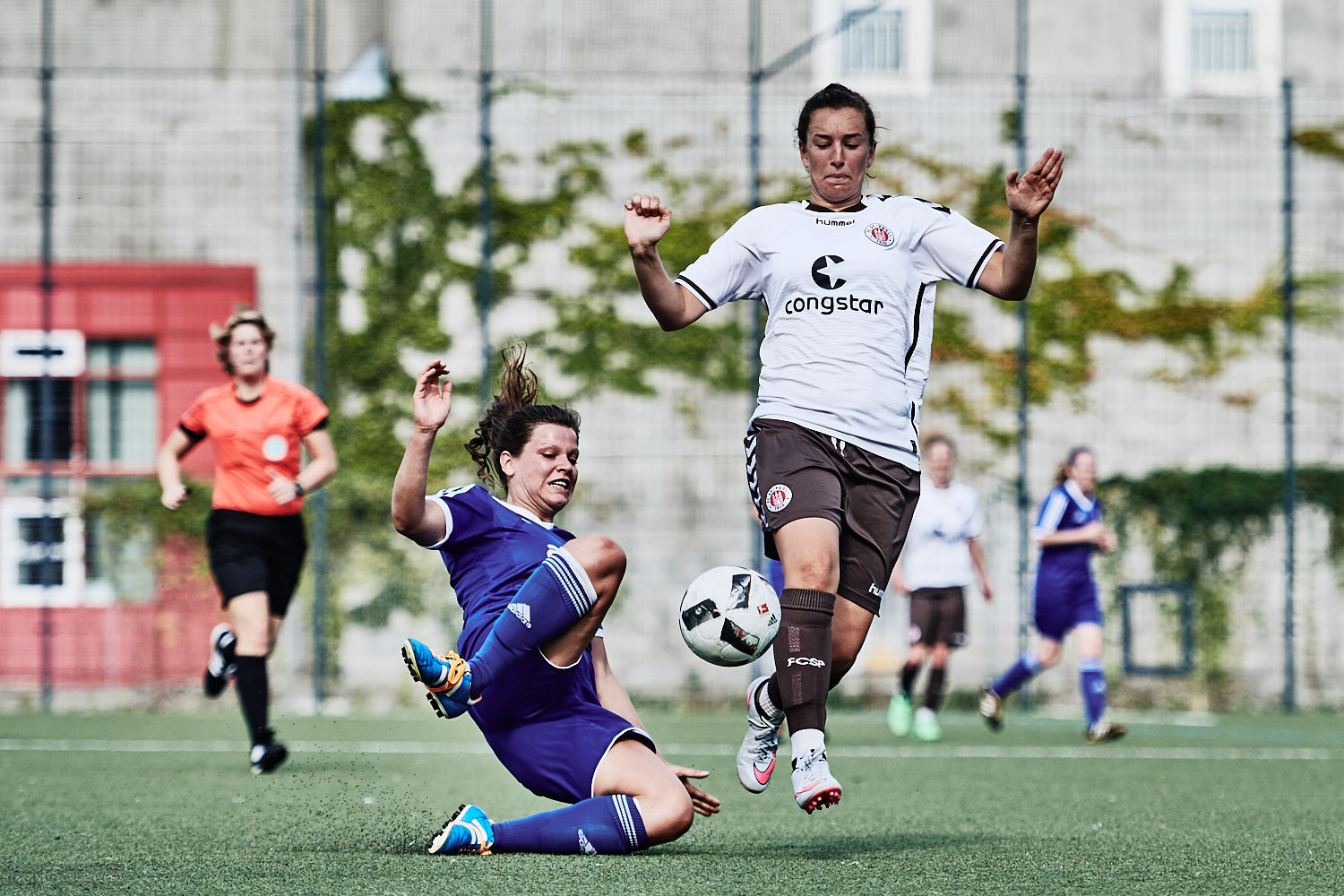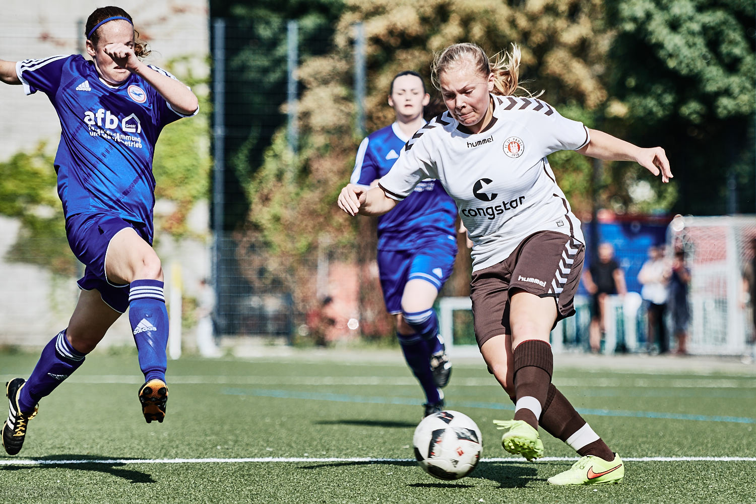 Nach dem vom Regen weggespülten Saisonstart, zelebrierten die 1. Frauen vom FC St. Pauli am Sonntag nun die erste tatsächliche Heimpremiere in der Regionalliga Nord. In der wunderschönen Feldstrassenarena kam es zum Hamburger Derby gegen den Vorjahrestabellenneunten Duwo 08. Der Start war allerdings sehr holprig und verfahren. Da passte es dann auch, dass Duwo mit der ersten Torchance mit 1:0 in Führung ging. St. Pauli rannte nun noch stärker an, denn man wollte unbedingt mit Punkten vom Platz gehen. Wie auch beim Spiel der Männer, wurde dann das erste Regionalligator von Nina Philipp von der Schiedsrichterin wegen Abseitsstellung von Linda Sellami aberkannt. Linda war aber klar passiv. Später gab die Schiedsrichterin ihre Fehlentscheidung auch zu, nutzte aber nichts – es blieb beim 0:1. Im Gegenzug fällt dann das 0:2. Klassische Form des mentalen Genickbruchs. Für viele Teams, aber nicht für die Frauen in braun und weiß.