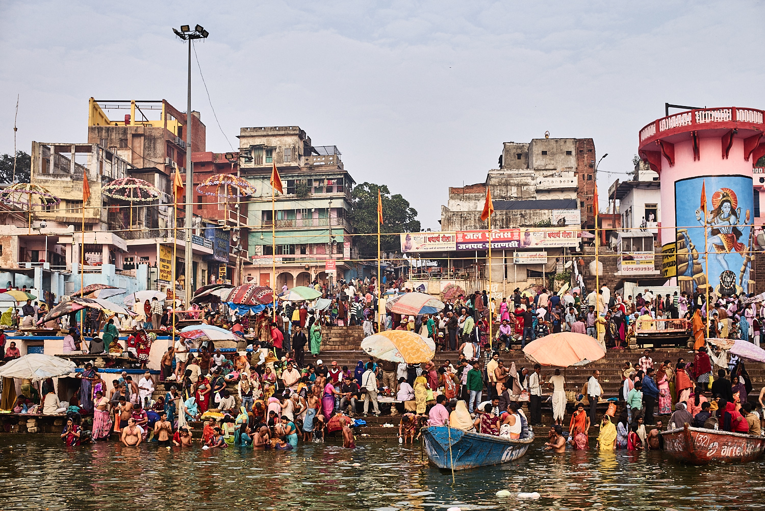 Varanasi gilt vor allem deswegen als heilige Stadt, weil ein Bad im Ganges von Sünden reinigt. Und in Varanasi verbrannt zu werden, ist der Ausbruch aus dem Kreislauf der Wiedergeburt. So wird im Ganges gebadet, die Wäsche gewaschen, die Leichen am Ufer verbrannt und die Asche in den Ganges gespült, als sei es das Normalste von der Welt.