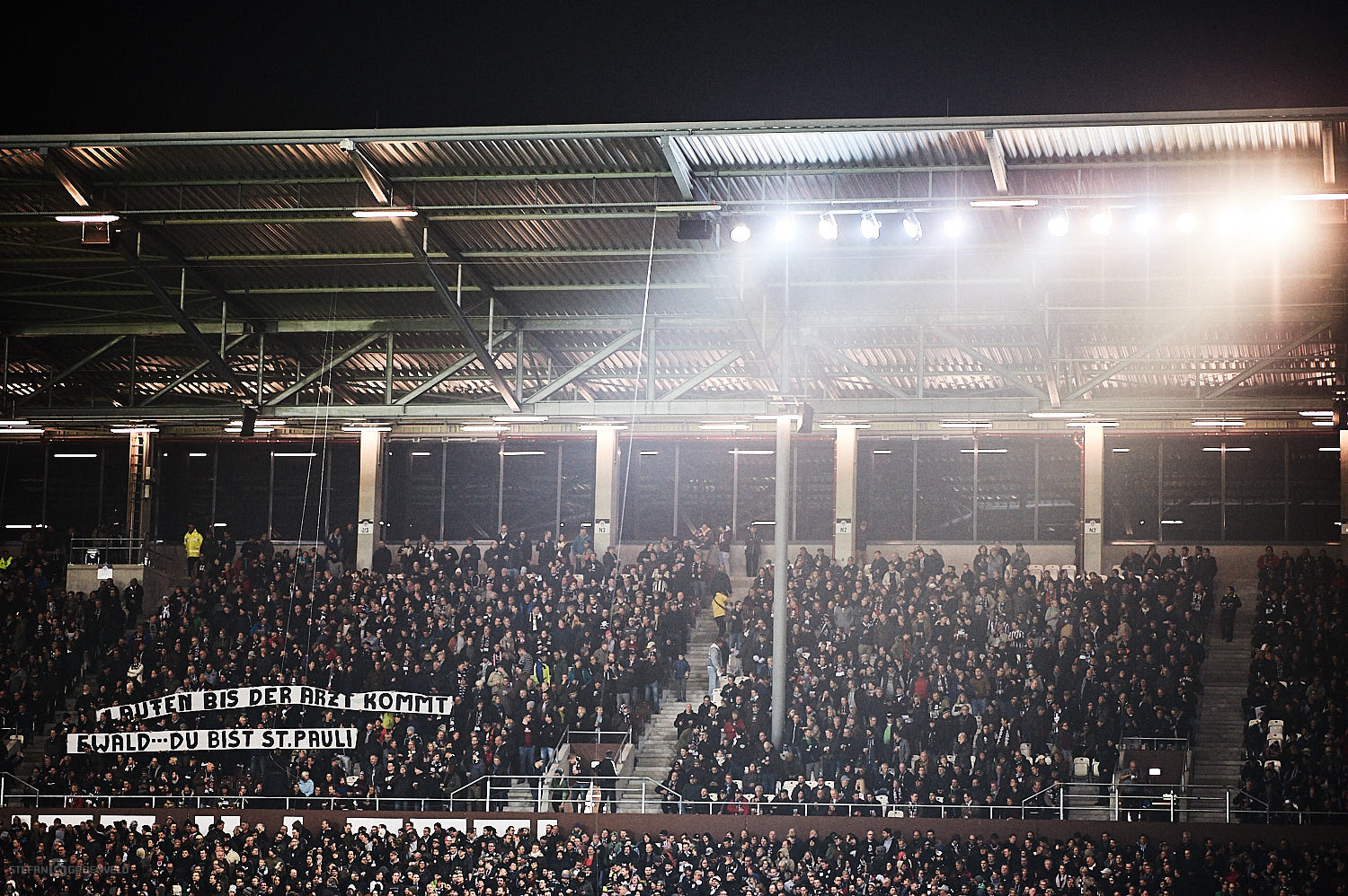 Montag Abend, 24 Uhr, Hells Bells im Millerntor. Moment: 24 Uhr? Ja, nepalesischer Zeit. Ich bin ja erst Samstag Abend von der Projektreise mit Viva con Agua zurück gekommen und mein Biorhythmus ist noch nicht ganz in Deutschland angekommen. Von daher war ich sehr froh, dass der FC St. Pauli gleich ordentlich gegen den 1. FC Nürnberg los legte. Wenn das so ein Fussballspiel wie vor einigen Wochen gewesen wäre, wäre ich vermutlich am Spielfeldrand eingeschlafen. Bin ich aber nicht. Und das lag auch an der guten Leistung des braun-weissen Teams. Klar lief noch nicht alles rund, aber wie ein Tabellenletzter hat St. Pauli nicht gespielt. Wenn die Mannschaft an die Leistung von Montag Abend die nächsten Spiele anknüpfen kann, dann werden auch wieder Siege gefeiert werden. So war es erstmal nur ein Punkt, aber ein guter Punkt.