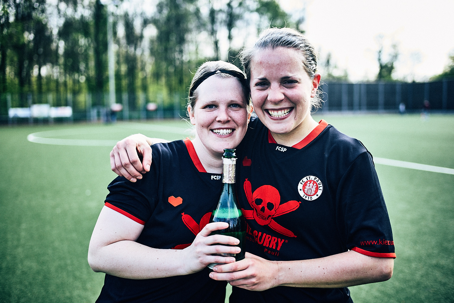Folglich feierten die Spielerinnen vom FC St. Pauli den Titel zur Hamburger Meisterschaft ausgiebig und feucht-fröhlich. Donnerstag steht das Pokalfinale gegen die Übermächtigen 1. Frauen aus Bergedorf an. Am Ende der Spielrunde muss sich der FC St. Pauli noch gegen jeweils ein Team aus Schleswig-Holstein (29.5. in Hamburg) und in Bremen (5. Juni) durchsetzen, um mit der Meisterschaft auch den Aufstieg klar zu machen. Es stehen in den nächsten Wochen noch viele interessante Spiele im Frauenfussball an.