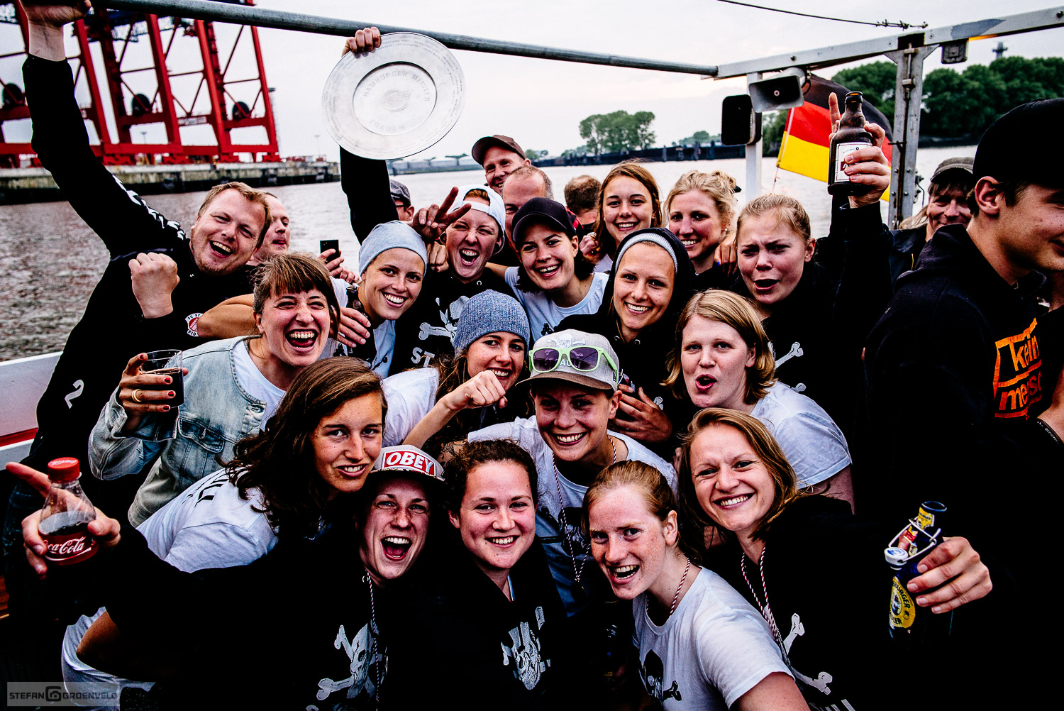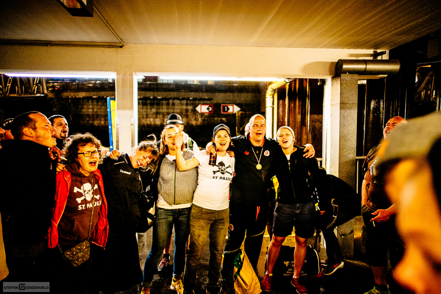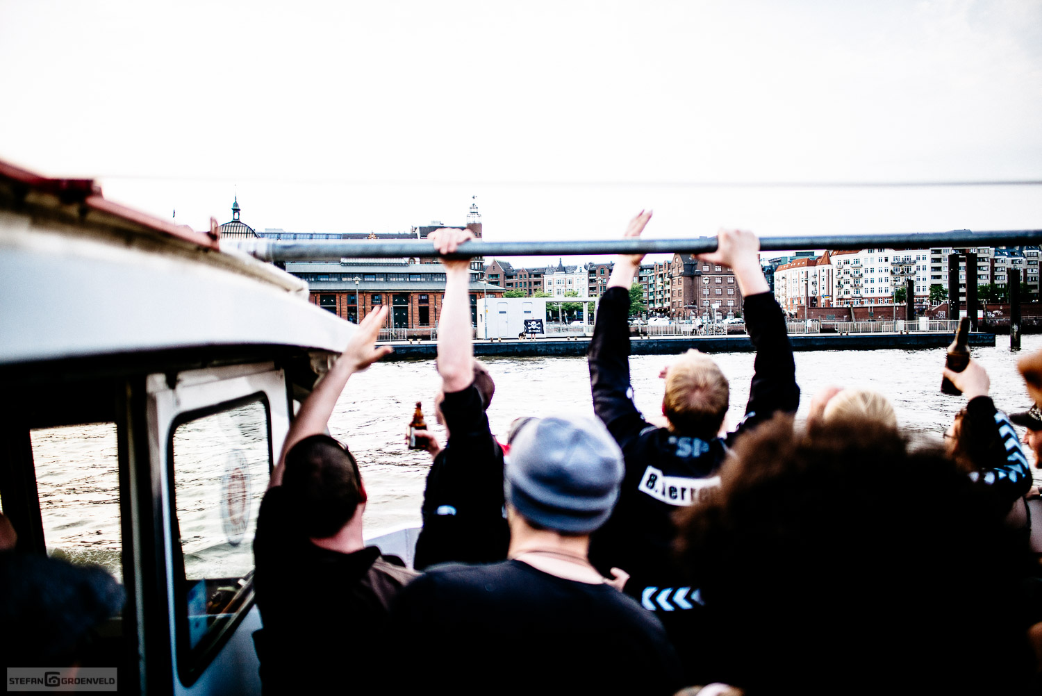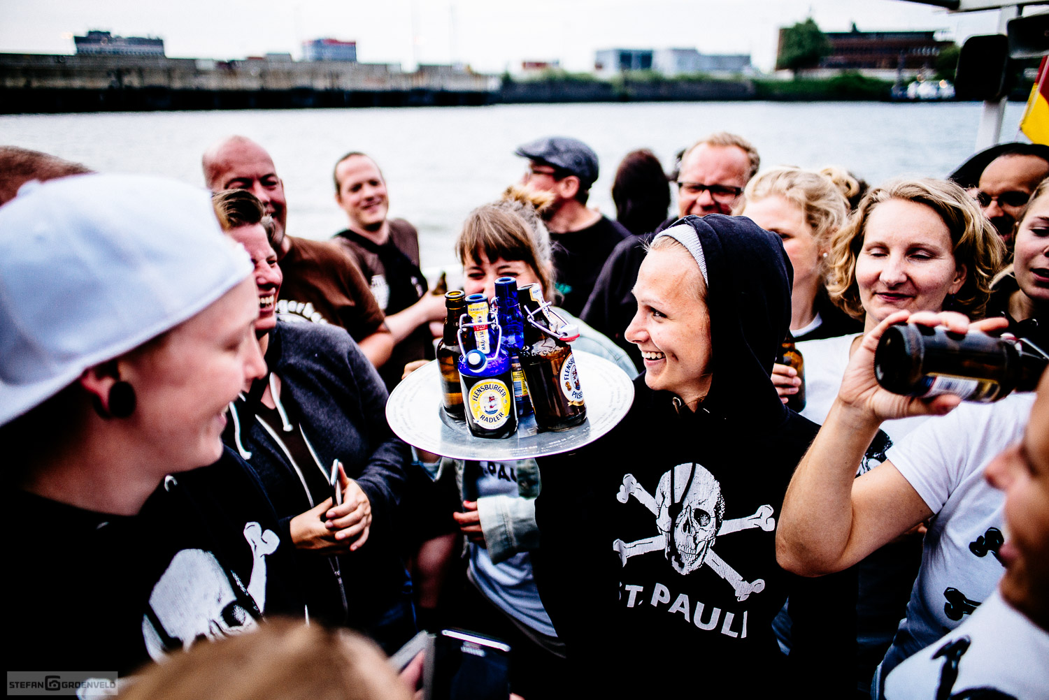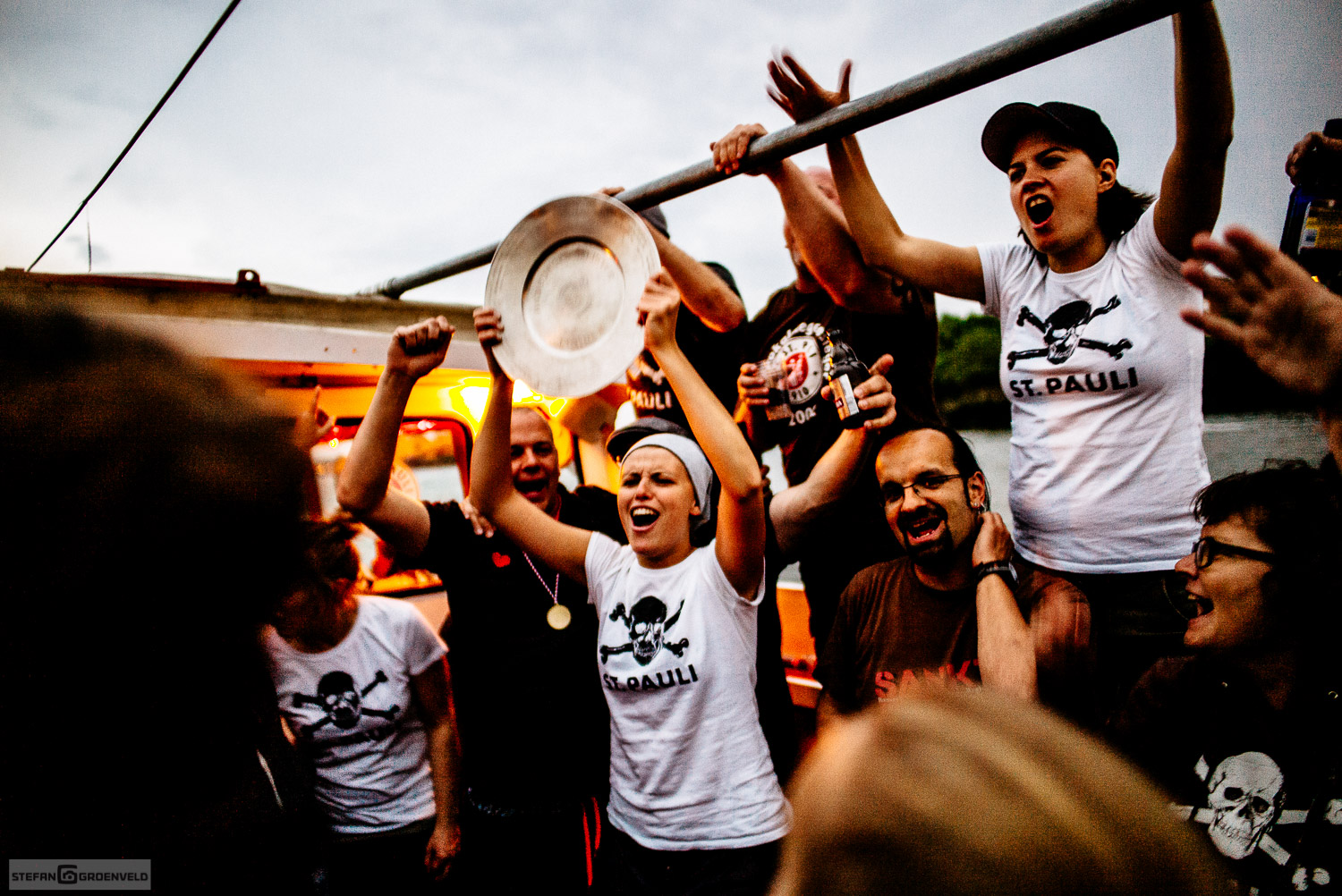 Was für eine Saison bei den 1. Frauen vom FC St. Pauli – 103 zu 9 Tore, ungeschlagen Hamburger Meister geworden, eine Wahnsinnsspielzeit. Und es ist ja lange noch nicht Schluss. In zwei Relegationsspielen geht es nun am nächsten Sonntag gegen die Teilnehmerinnen aus Schleswig-Holstein und noch eine Woche später auswärts gegen das teilnehmende Team aus Bremen. Aber gestern wurde erst mal gefeiert: die Meisterschaft. Aber das war schon die Kür, vorher kam noch die Pflicht mit dem Spiel gegen Eilbek, das souverän mit 9:1 gewonnen wurde. Und hinterher gab es eine wunderschöne Meisterinnenfeier zusammen mit den treusten Fans auf der Barkasse St. Pauli.