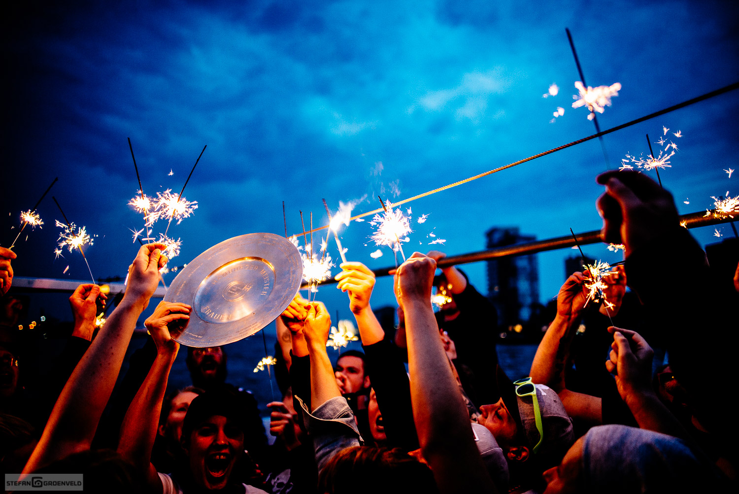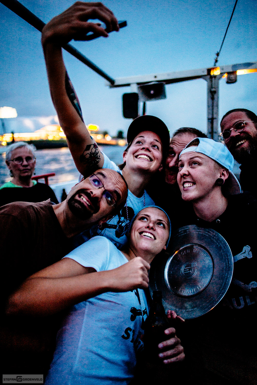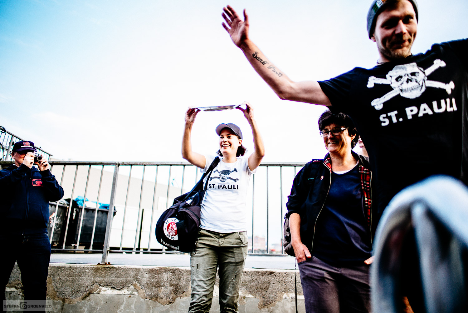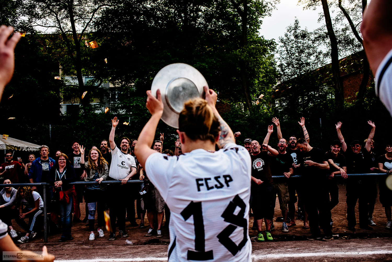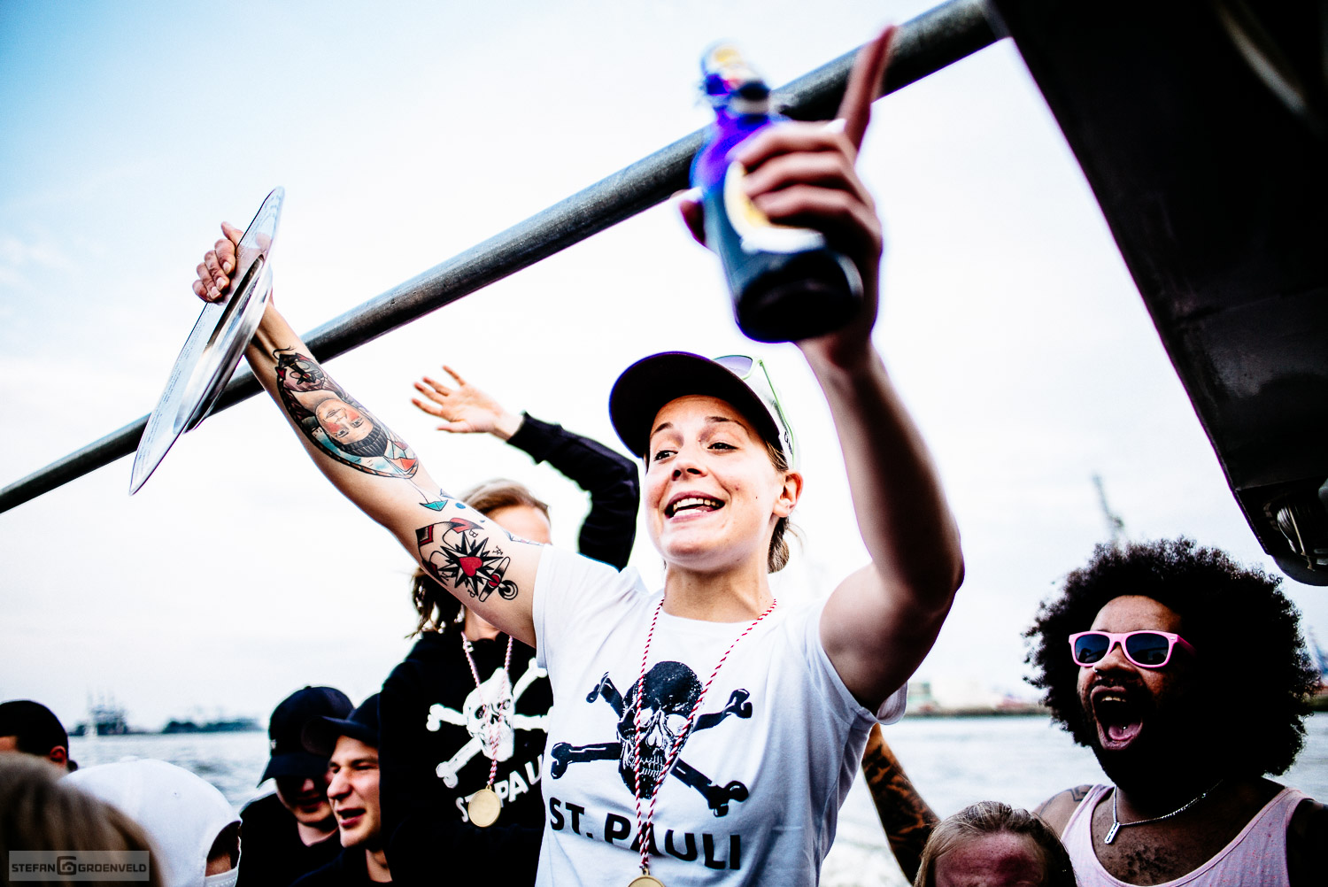Was für eine Saison bei den 1. Frauen vom FC St. Pauli – 103 zu 9 Tore, ungeschlagen Hamburger Meister geworden, eine Wahnsinnsspielzeit. Und es ist ja lange noch nicht Schluss. In zwei Relegationsspielen geht es nun am nächsten Sonntag gegen die Teilnehmerinnen aus Schleswig-Holstein und noch eine Woche später auswärts gegen das teilnehmende Team aus Bremen. Aber gestern wurde erst mal gefeiert: die Meisterschaft. Aber das war schon die Kür, vorher kam noch die Pflicht mit dem Spiel gegen Eilbek, das souverän mit 9:1 gewonnen wurde. Und hinterher gab es eine wunderschöne Meisterinnenfeier zusammen mit den treusten Fans auf der Barkasse St. Pauli.