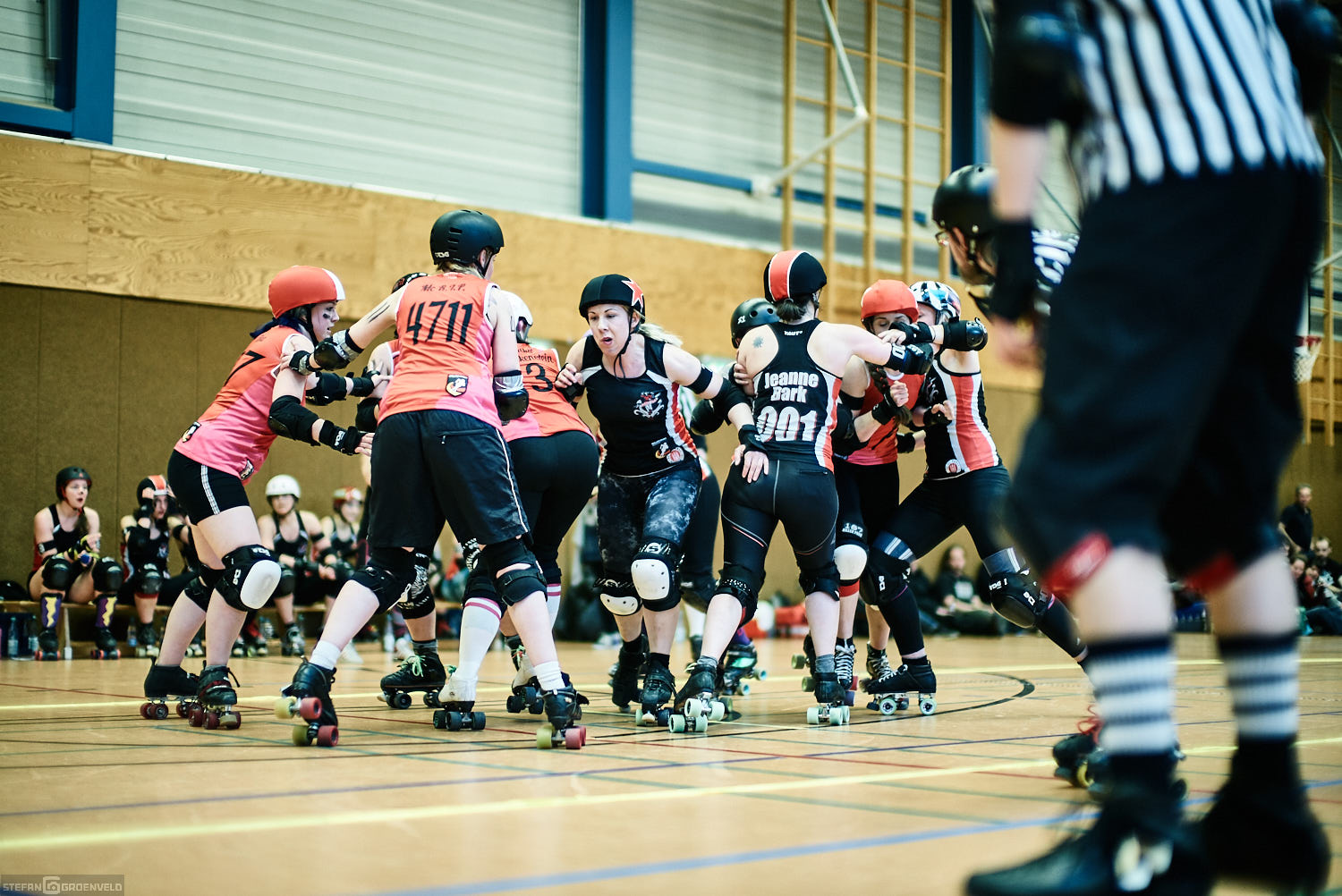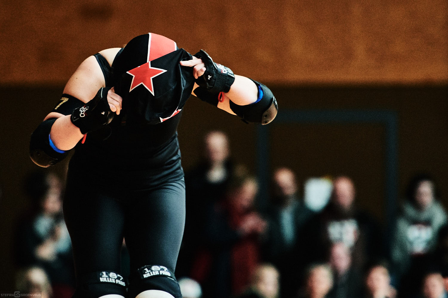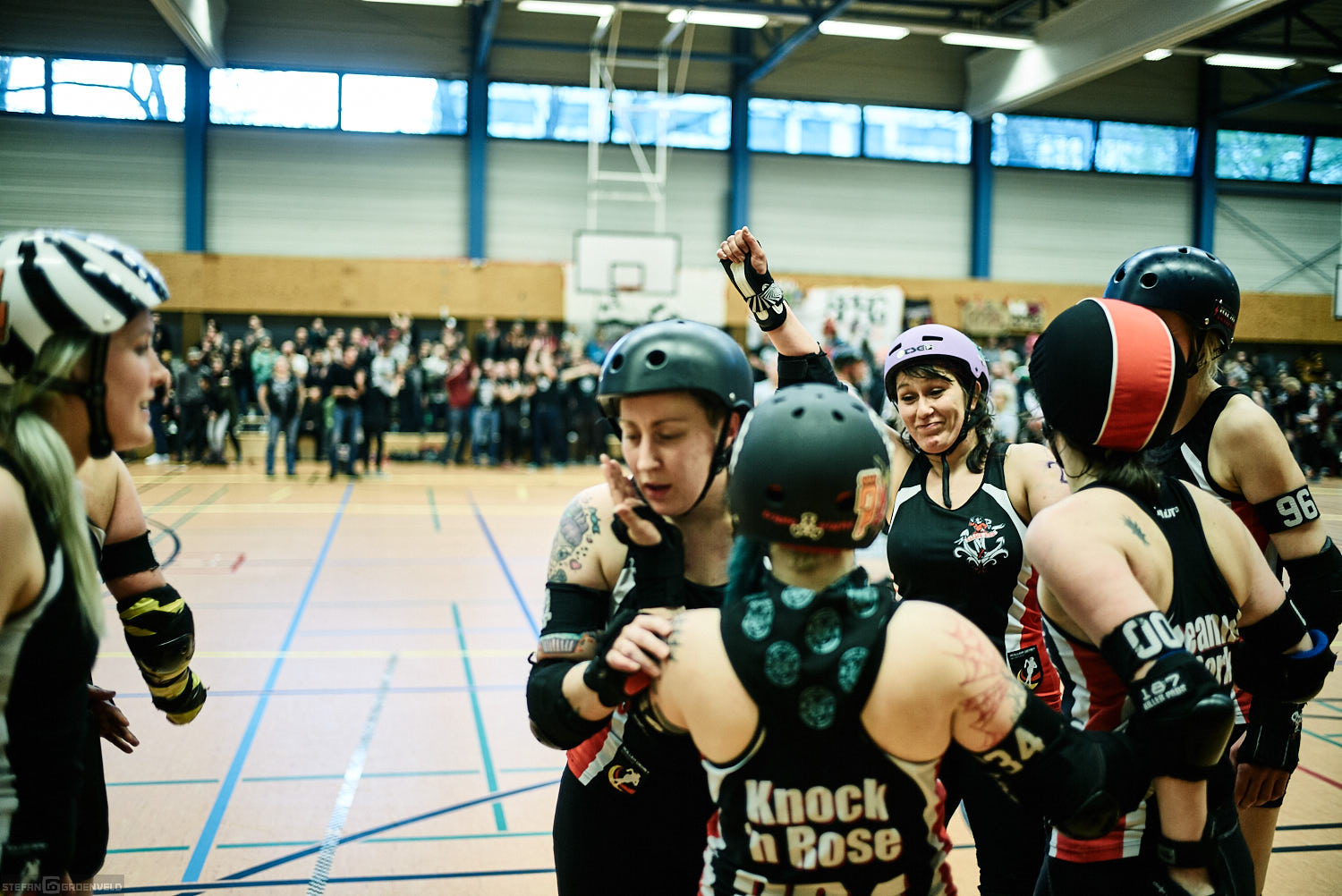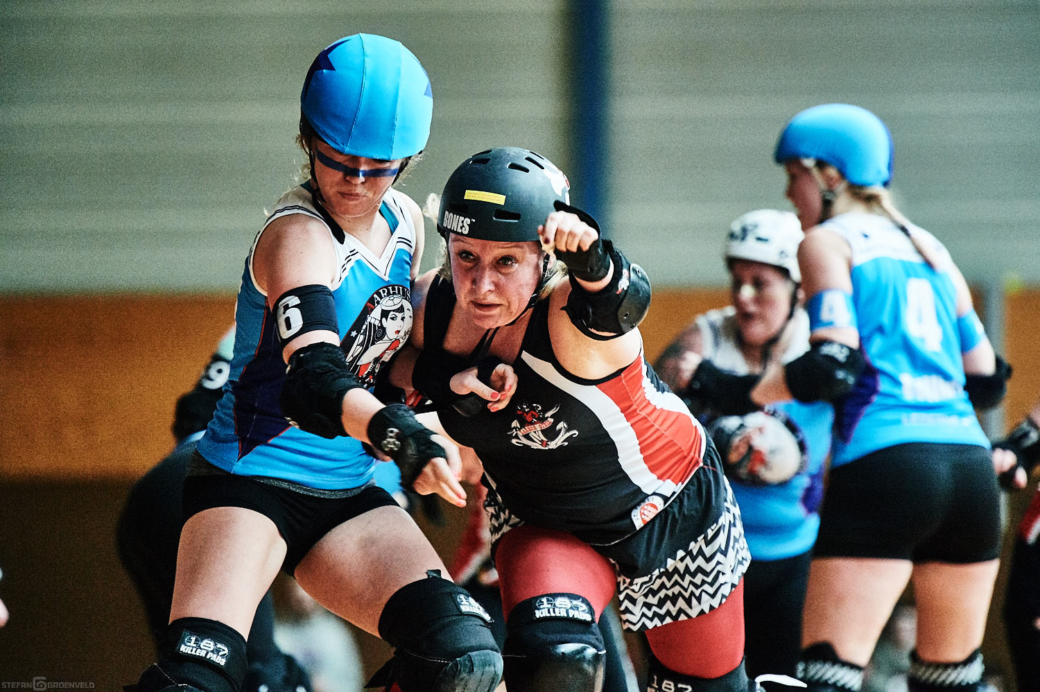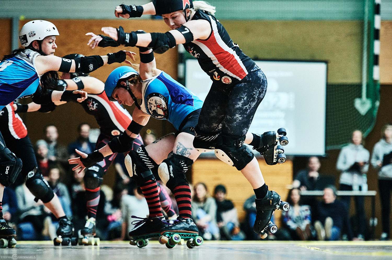 Mein Sportfotowochenende wäre nicht komplett gewesen, ohne am Samstag Bundesliga zu fotografieren. In der frischen Saison ging es beim Bout der Hamburg Harbor Girls gegen die Ruhrpott Roller Girls aus Essen. Und zum Eingewöhnen fighteten vorher noch das sogenannte B-Team der Harbor Girls gegen die Aarhus Derby Danes. Also ein Nachmittag mit Rollerderby vom Feinsten! „Roller Derby ist Vollkontakt auf Rollschuhen. Ähnlich wie Rugby. Aber ohne Ball. Roller Derby wird mit Helm, Mundschutz, Schonern und ohne Schonung gespielt.“ (vermutliche Quelle: Stadionzeitung vom FC St. Pauli beim Spiel gegen 1860 München 😉 )