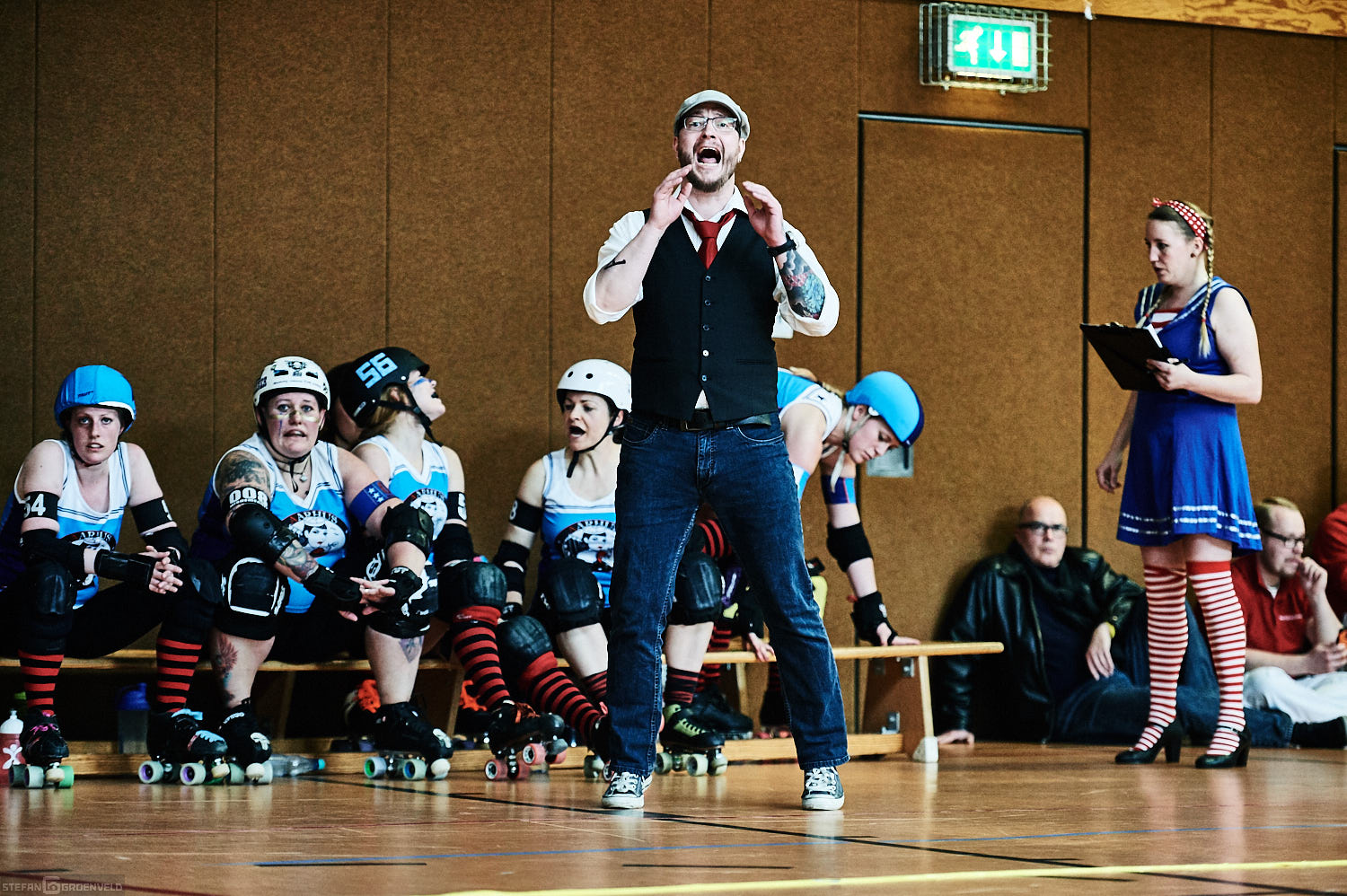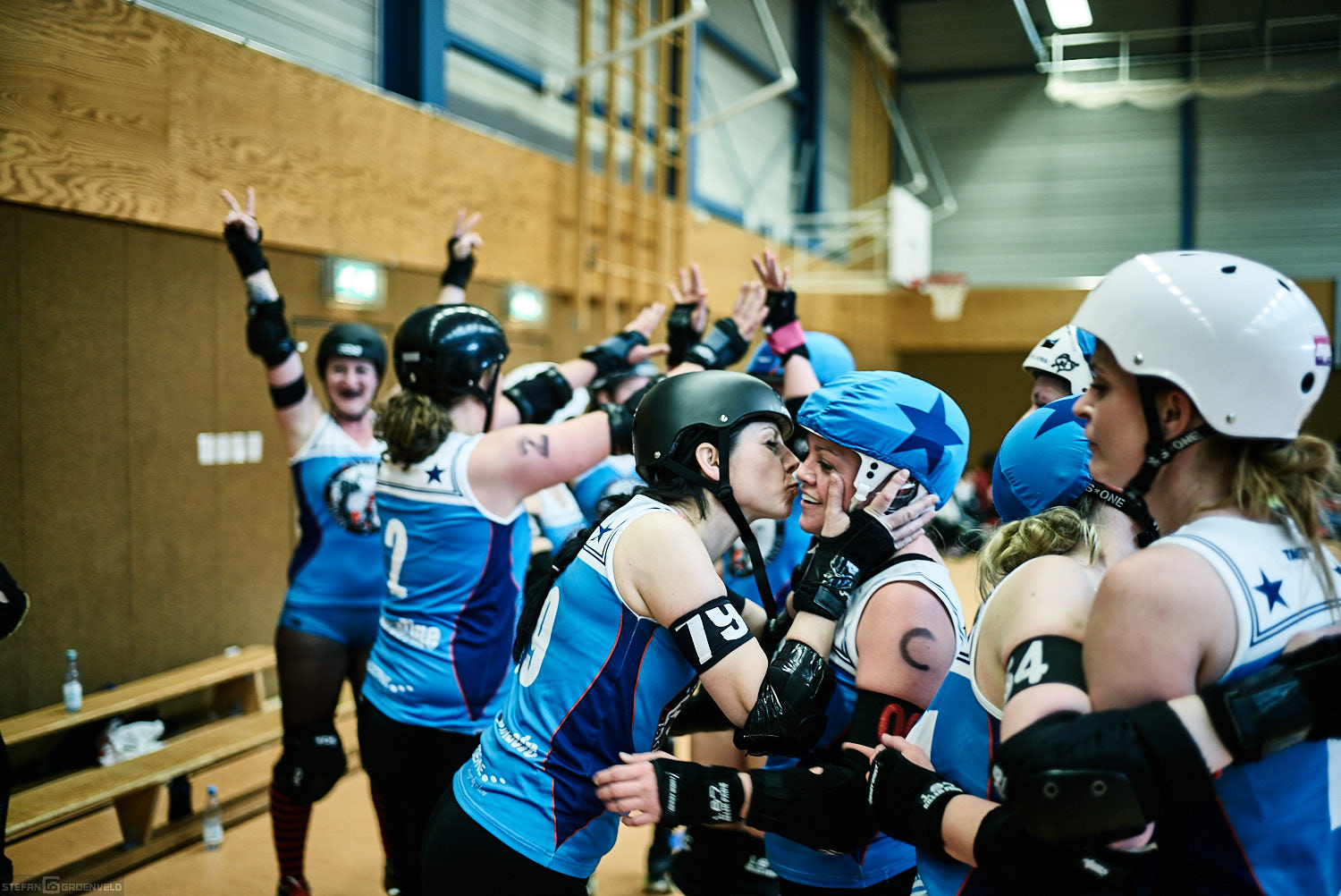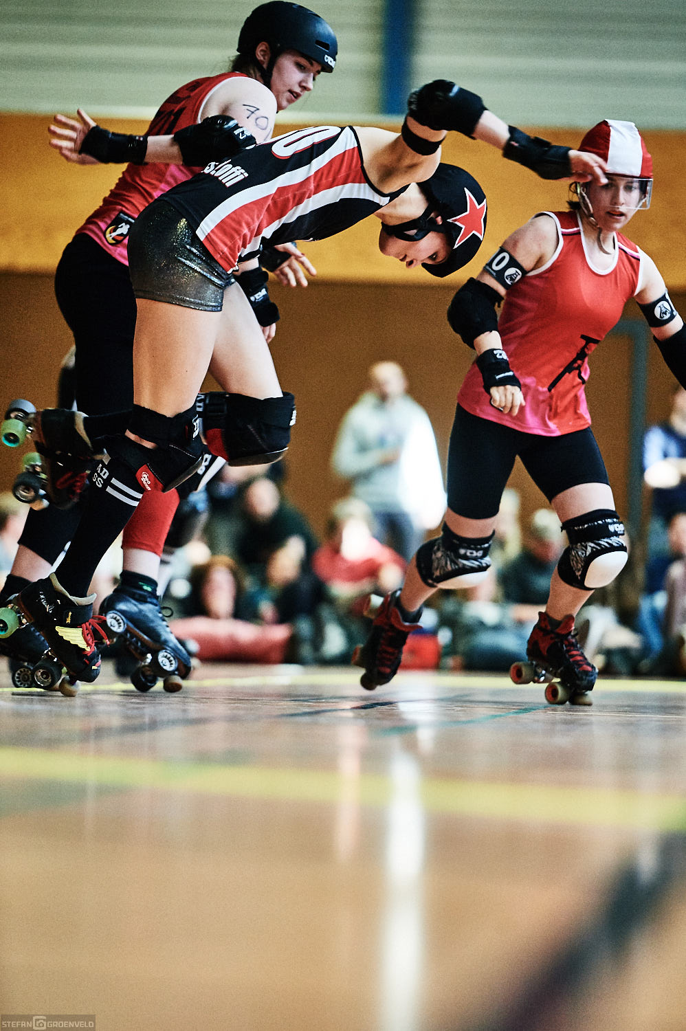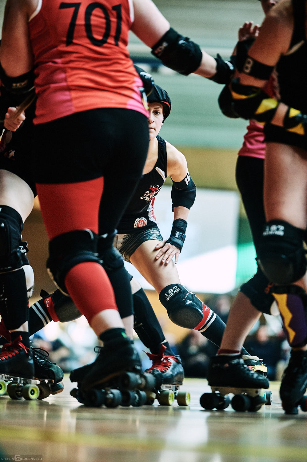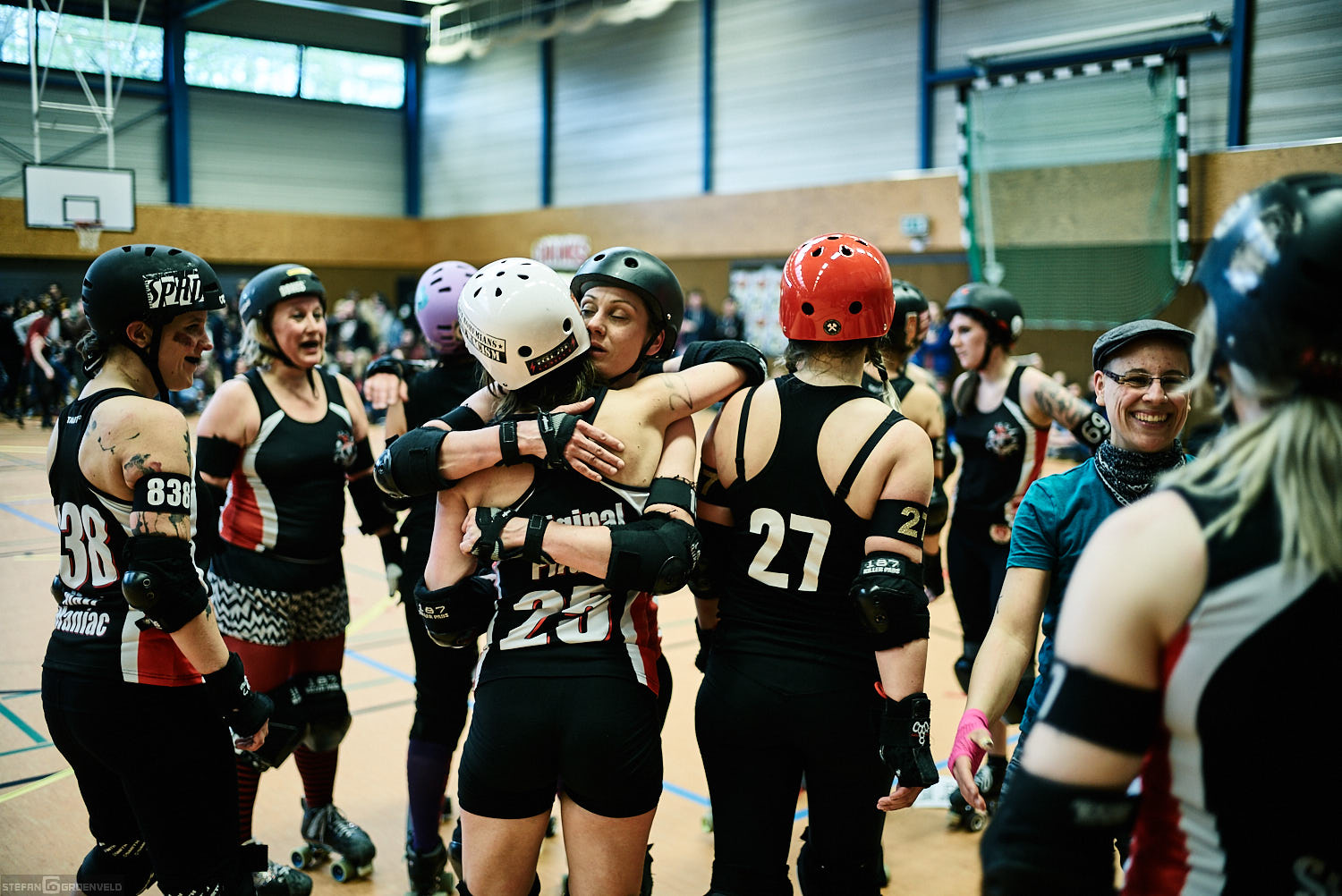 Mein Sportfotowochenende wäre nicht komplett gewesen, ohne am Samstag Bundesliga zu fotografieren. In der frischen Saison ging es beim Bout der Hamburg Harbor Girls gegen die Ruhrpott Roller Girls aus Essen. Und zum Eingewöhnen fighteten vorher noch das sogenannte B-Team der Harbor Girls gegen die Aarhus Derby Danes. Also ein Nachmittag mit Rollerderby vom Feinsten! „Roller Derby ist Vollkontakt auf Rollschuhen. Ähnlich wie Rugby. Aber ohne Ball. Roller Derby wird mit Helm, Mundschutz, Schonern und ohne Schonung gespielt.“ (vermutliche Quelle: Stadionzeitung vom FC St. Pauli beim Spiel gegen 1860 München 😉 )