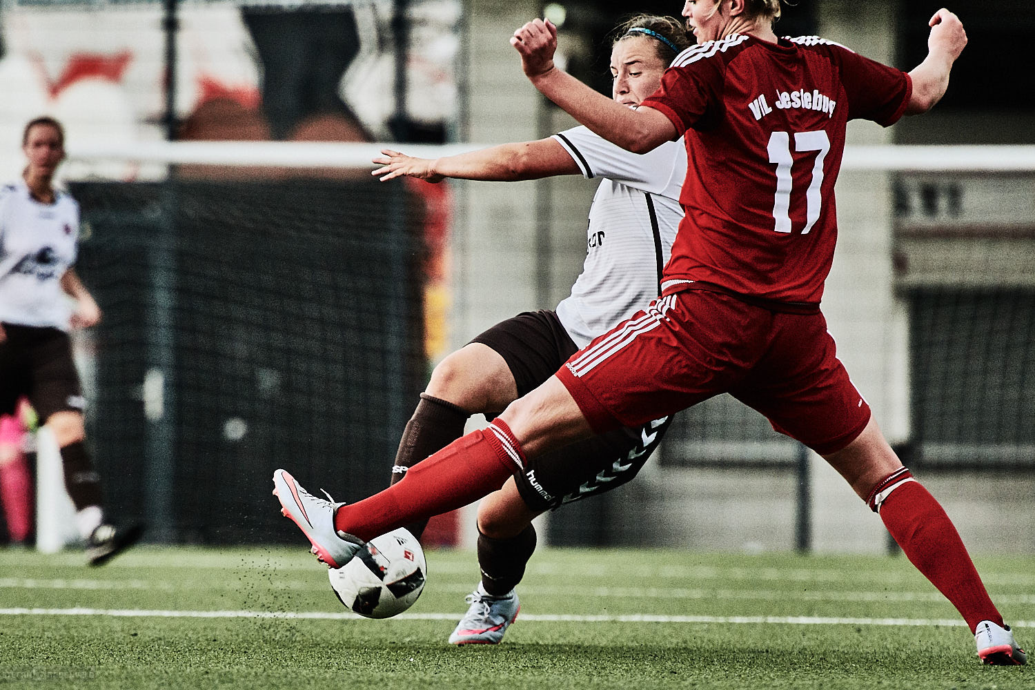 Bei dem Titel könnte der geneigte Leser meinen, es ginge um die Zweitligamannschaft vom FC St. Pauli, dabei geht es um die 1. Frauen vom FC St. Pauli. Dafür aber ohne doppelte Bedeutung. Langersehnt startete heute das Team in die Regionalligasaison gegen den Mitaufsteiger aus Niedersachsen Jesteburg, aber das sprichwörtliche Hamburger Wetter hatte etwas dagegen. Schwül sommerlich ging es los, mit einem Abbruch durch Gewitter endete es rund eine halbe Stunde zu früh fast zwei Stunden nach Spielbeginn. Klingt unlogisch, aber die Pause wurde durch das erste Gewitter schon ungewöhnlich lang.