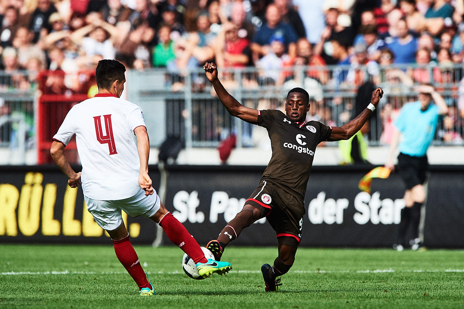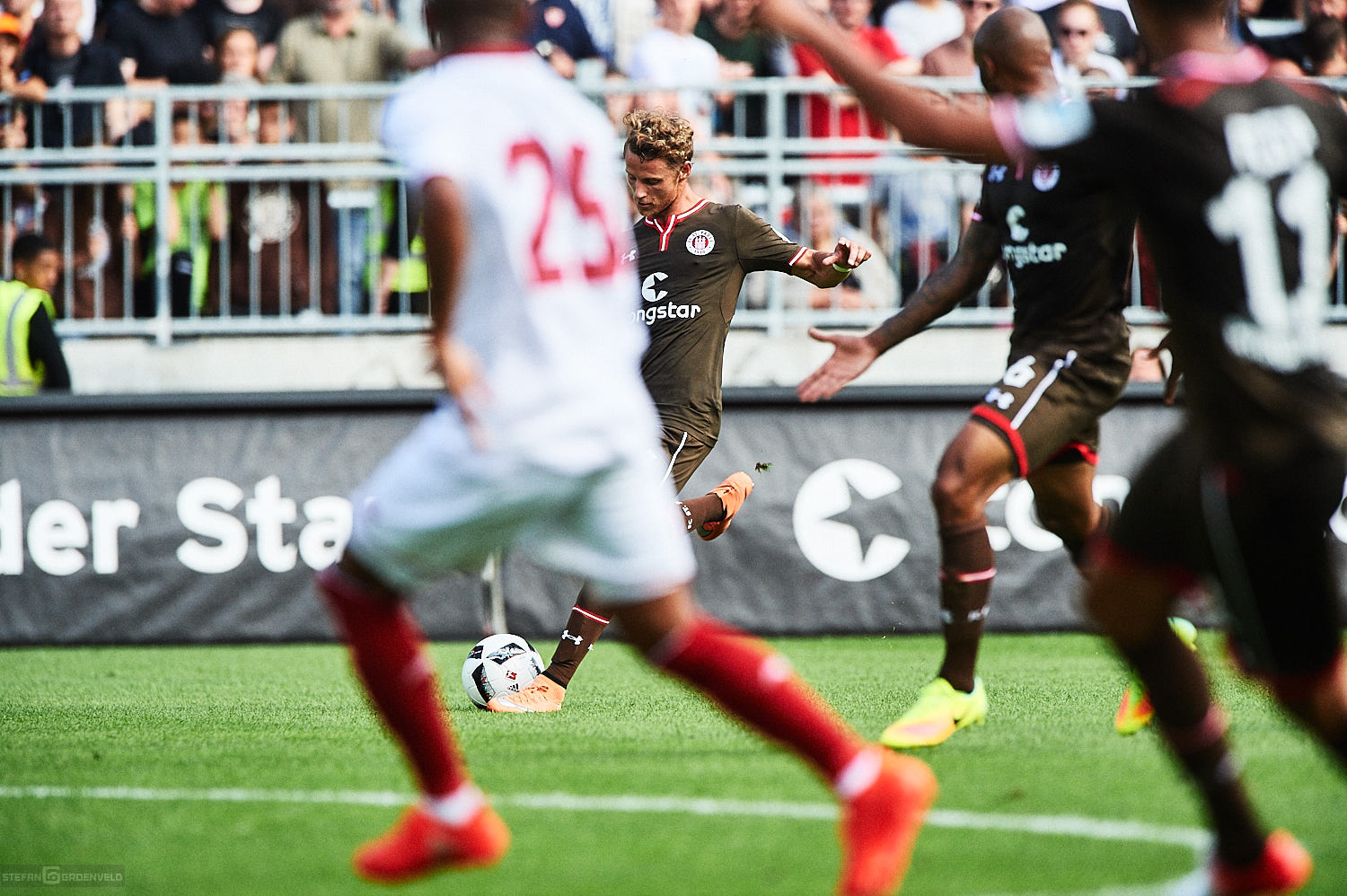 4-4-2, Flügelläufe von Vegar Eggen Hedenstad, Aziz Bouhaddouz im Stile einer Bulldoge mit feinen Füßchen, Fafa Picault als Renner zwischen den Fronten – alles schön anzusehen. In der Abwehr gab es noch kleinere Abstimmungsproblemchen zu sehen, aber nichts, was Angst macht. Einzig Christopher Buchtmann erschien mir etwas unglücklich, weil er in der Mitte eigentlich das Spiel leiten sollte, dies aber viel zu oft schon früh über die Außen lief. War aber vielleicht auch nur ein Eindruck von mir. Schließlich bin ich kein Trainer und weiß nicht, was wie geplant war. Ewald Lienen hätte bestimmt wieder was zu erzählen gehabt.