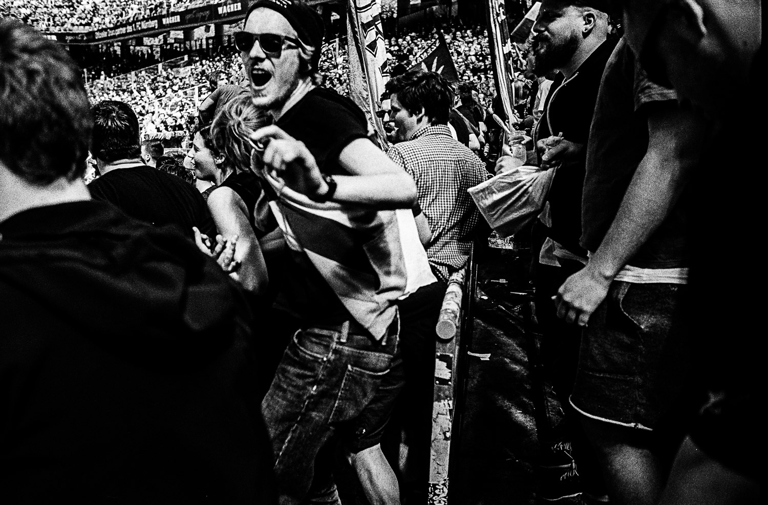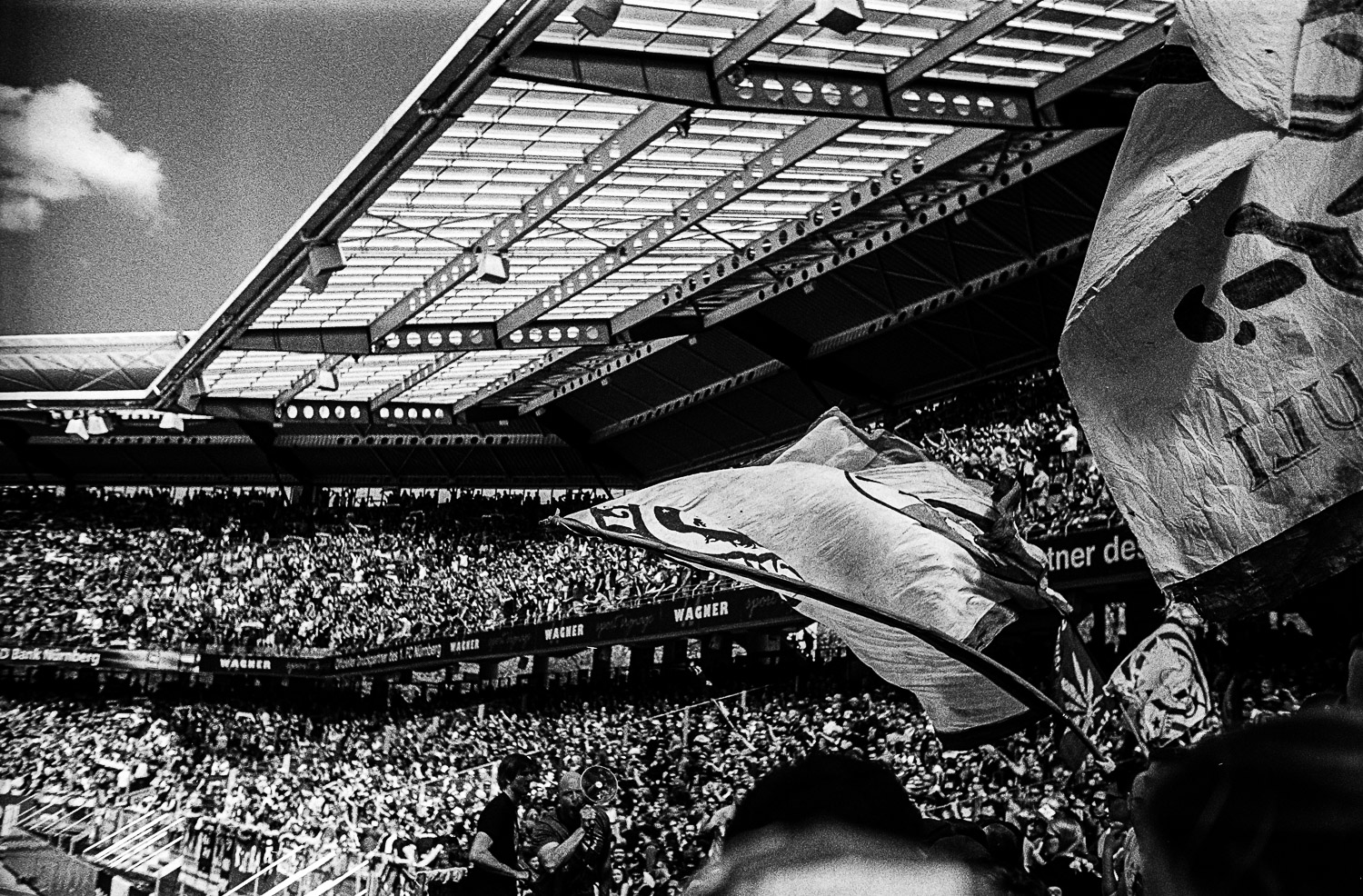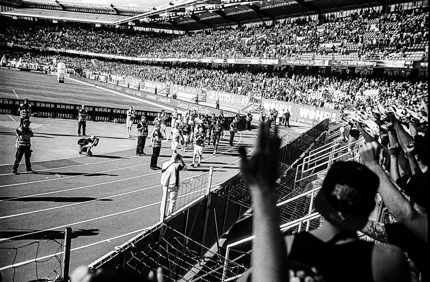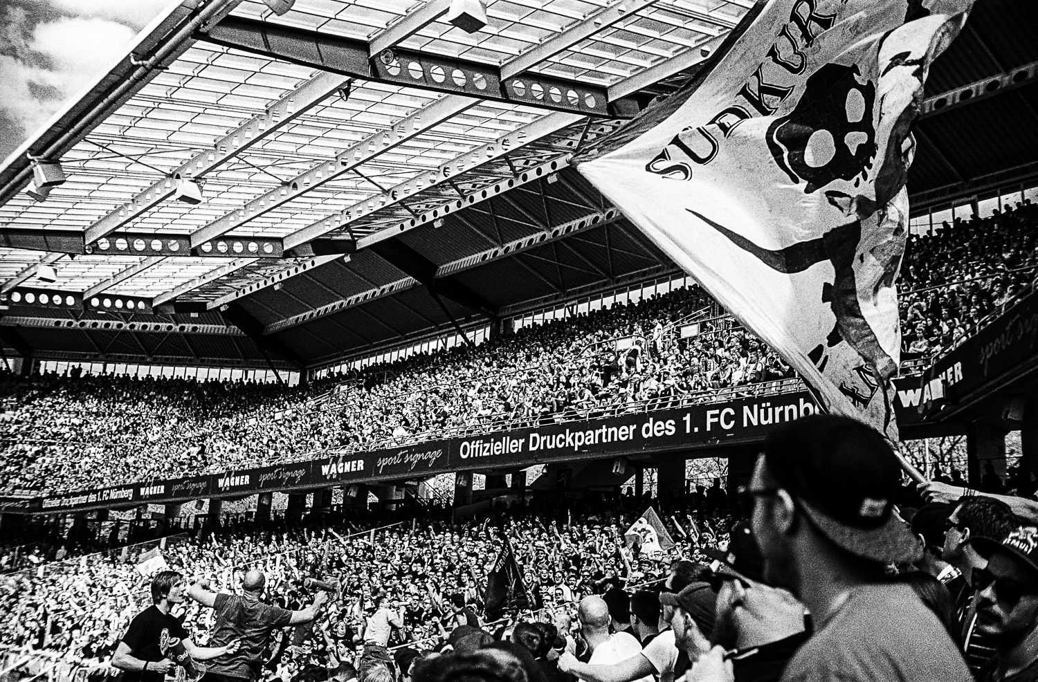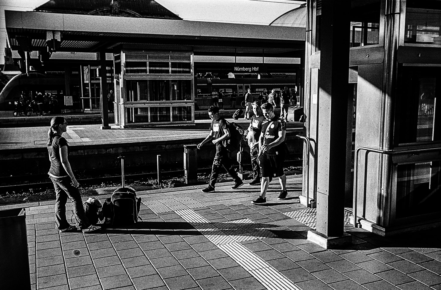 Für mich war diese Sonderzug Fahrt auch deswegen etwas besonders, weil ich erstmals seit ungefähr 7 Jahren mal wieder ein Spiel als Zuschauer betrachtet habe. Endlich konnte ich bei meinem Fanclub stehen und gemeinsam mit USP die Lieder anstimmen, die mir sonst nach jedem Spiel noch tagelang in den Ohren klingen. Die aktuelle Tabellensituation hatte mich zu dem Entschluß kommen lassen, dass es sich nicht lohnt mit großem Equipment nach Nürnberg zu fahren. So war es ja auch. Selbst der Schiri hatte schon seine Sonnenbrille auf…