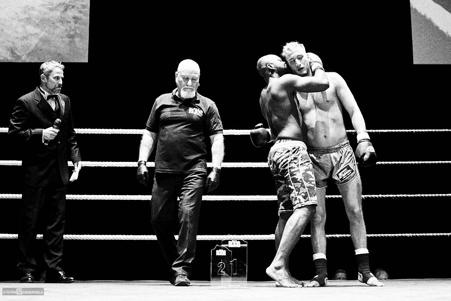 Ich war jedenfalls wieder froh, als einer der wenigen an den Ringseilen mit meinen Kameras sitzen zu dürfen. Denn so kann ich dir wieder ein paar schöne Eindrücke von diesem wunderbar, ehrlichen Sport zeigen. Egal, wie hart zugeschlagen wird, hinterher können sich alle wieder lächelnd in die Augen schauen. Manche sind sogar richtig zärtlich beim Trösten des Verlierers.