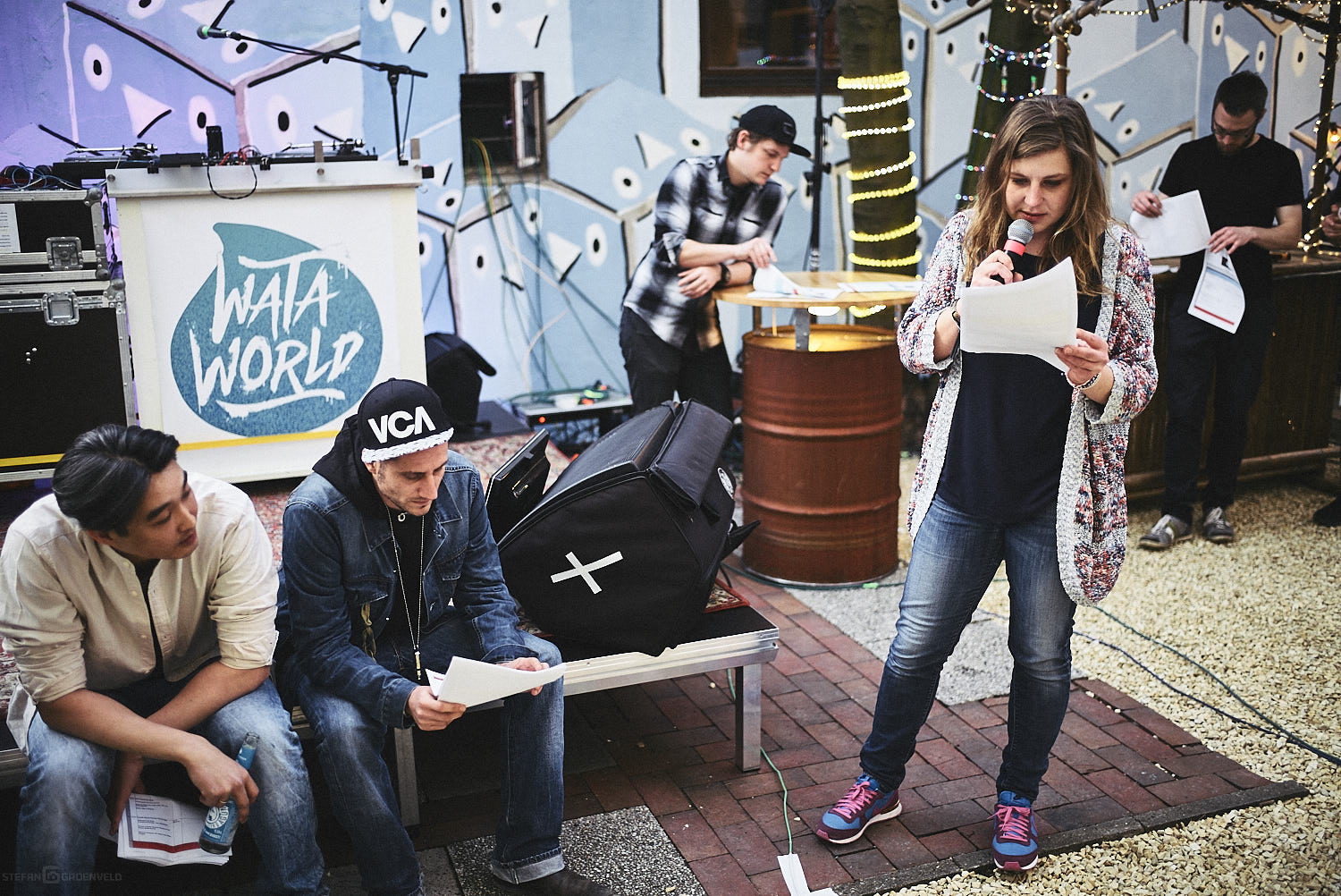Bevor jetzt einige meiner sicherlich fussballafinen LeserInnen irritiert schauen: RB TV hat nichts mit irgendeinem Brausebrauer zu tun, sondern steht für RocketBeansTV. Deutschlands erster 24-Stunden-Sender im Internet hatte gestern eine besondere Premiere und streamte eine zwei-stündige Open-Air Unterhaltungsshow ins Netz. Unter dem Hashtag #WataWorld stellte Viva con Agua ihre Arbeit vor. Mit dabei waren auch Megaloh und Ghanaian Stallion, um die frischen Eindrücke aus Uganda und der dortigen Arbeit von Viva con Agua über den Äther zu bringen. Der Hamburger Künstler Bobbie Serrano malte derweil Twitteruser, die sich über den passenden Hashtag gemeldet hatten.