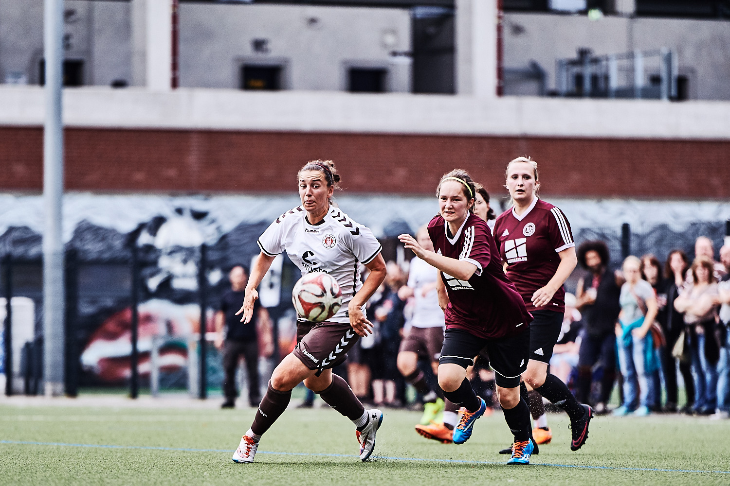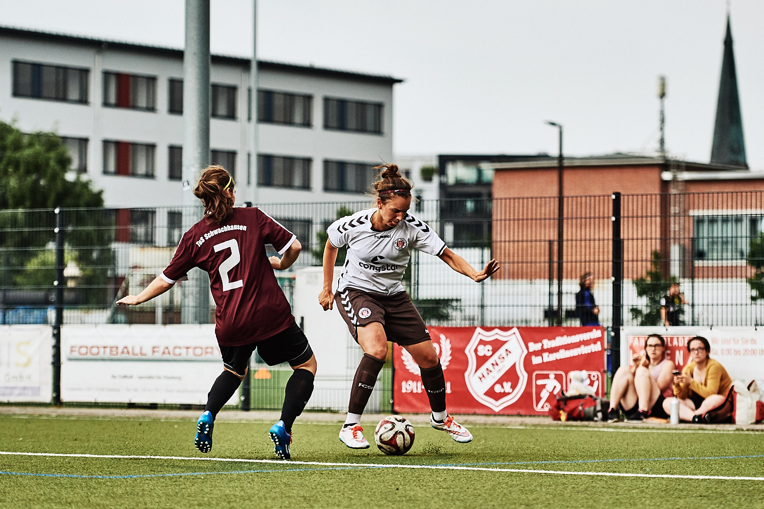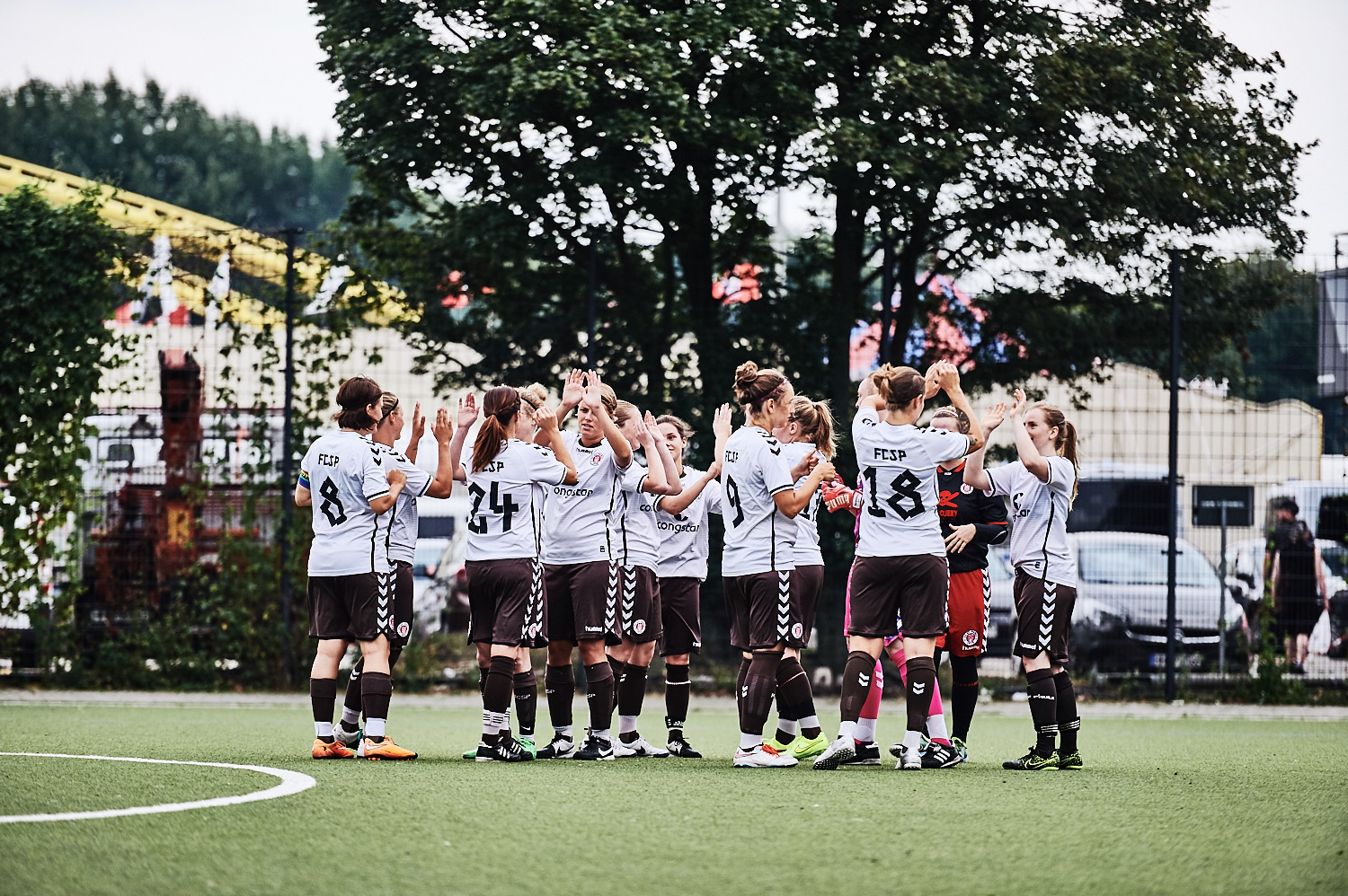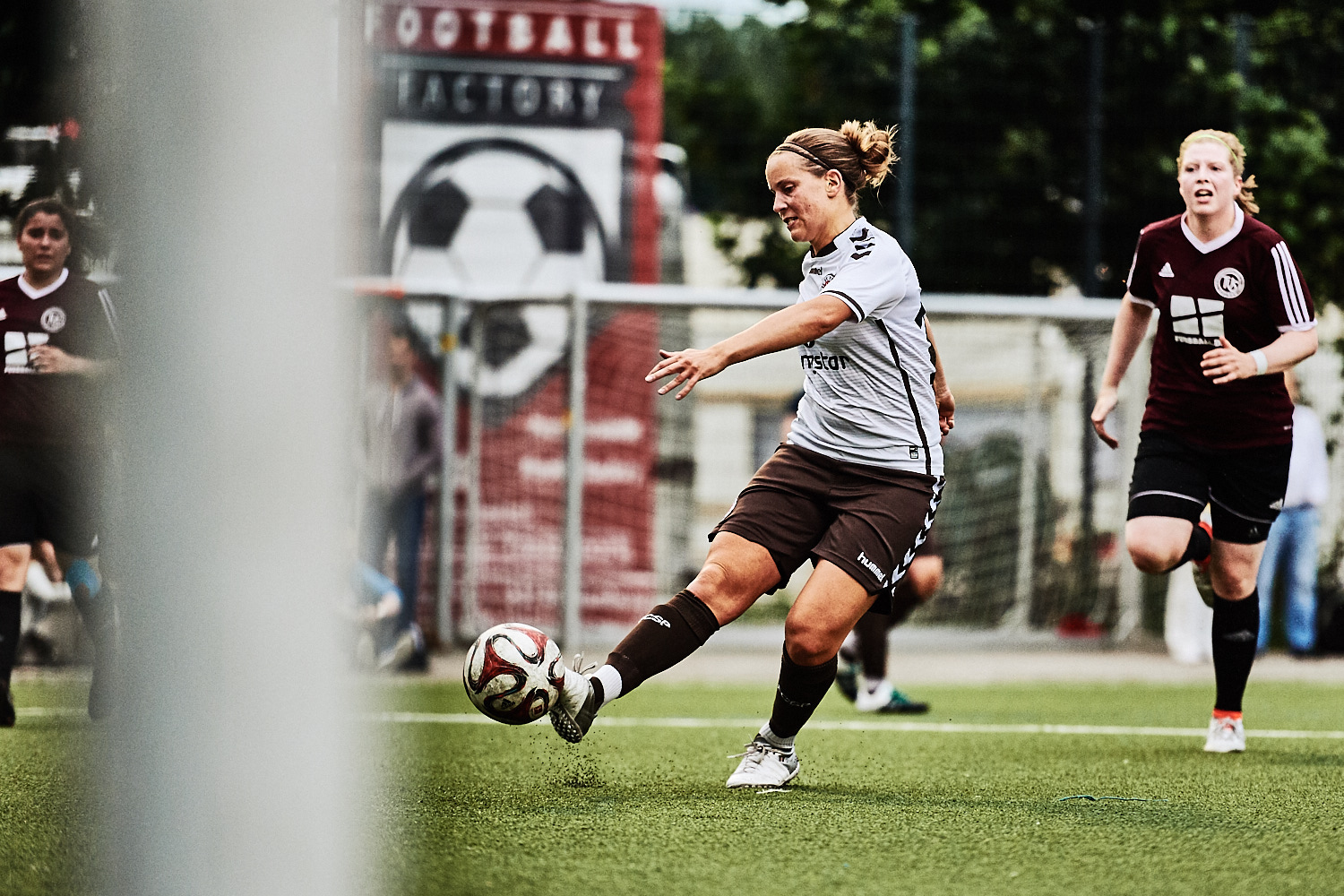 Der Testspielreigen des Wochenendes startete am Freitag bei strahlendem Sonnenschein auf einem der Plätze in der Feldstrassenarena. Einen Monat vor Saisonbeginn in der Regionalliga trafen die 1. Frauen vom FC St. Pauli gegen das Team aus Bremen, die in der Relegation zu eben jener Regionalliga sportlich großes erreicht haben – TuS Schwachhausen hatte im entscheidenden dritten Spiel, obwohl keine Chance auf den eigenen Aufstieg vorhanden war, den Kopf nicht hängen lassen und in Meldorf gut dagegen gehalten. Ohne dieses sportliche Highlight hätten die 1. Frauen vom FC St. Pauli vielleicht noch eine Saison in der Verbandsliga spielen müssen. Ein wirklich guter Grund also, dass es zur Saisonvorbereitung nun zum freundschaftlichen Aufeinandertreffen zwischen St. Pauli und Schwachhausen kam.