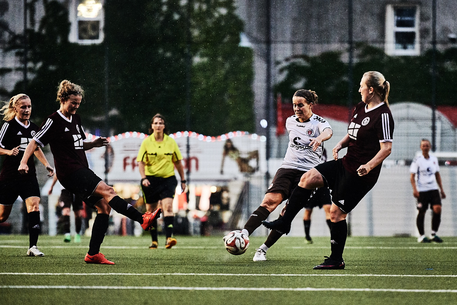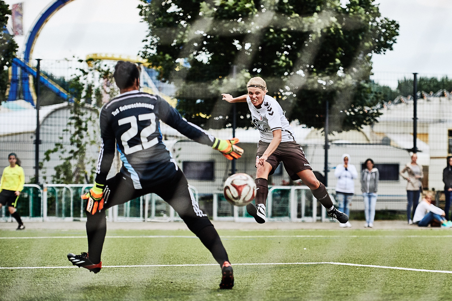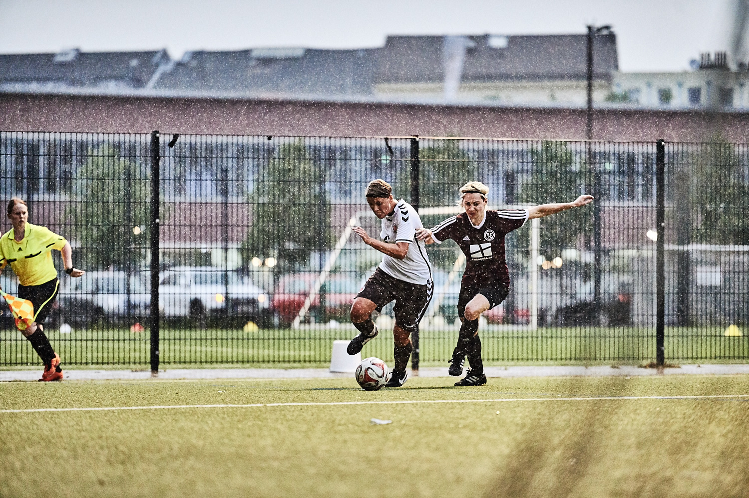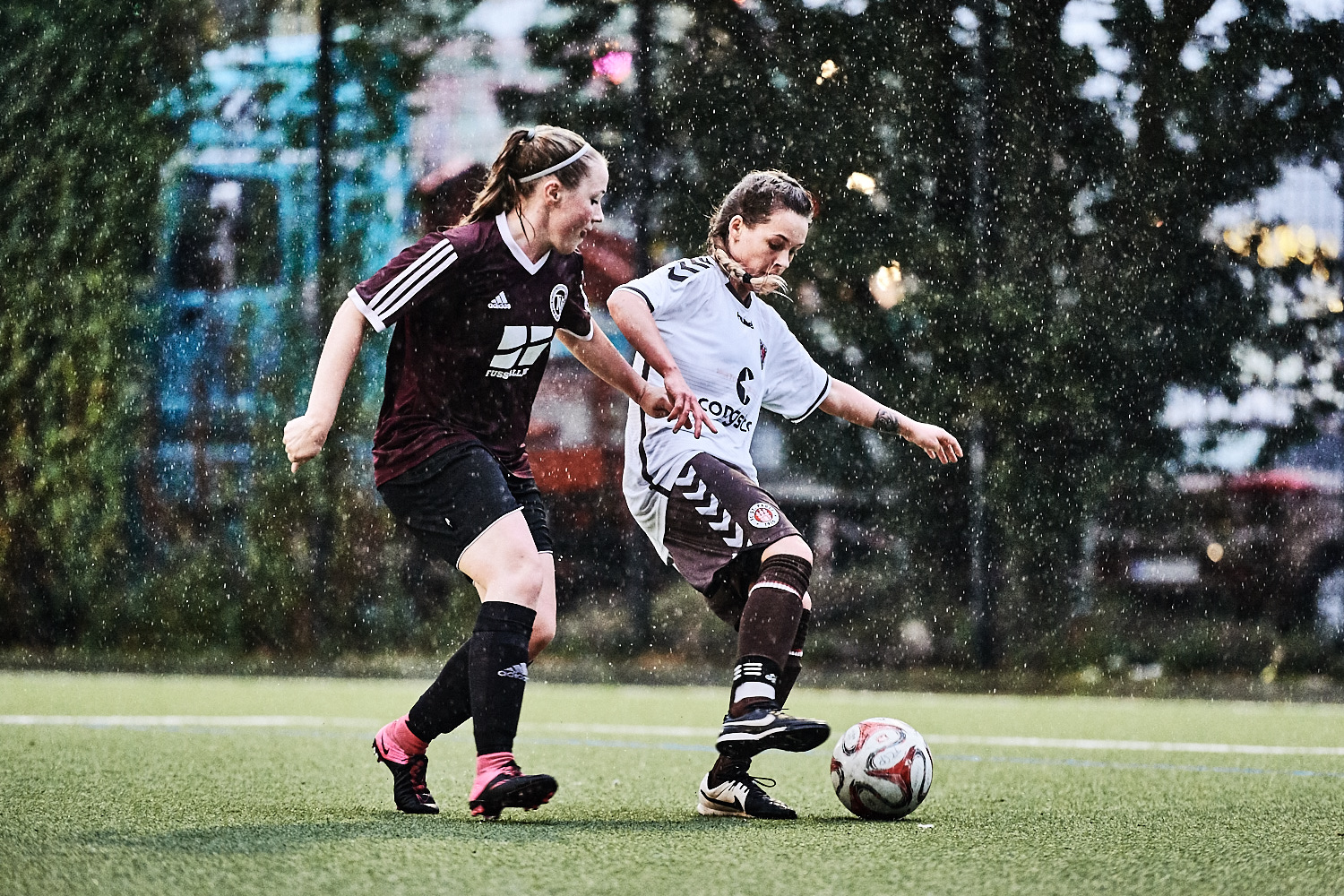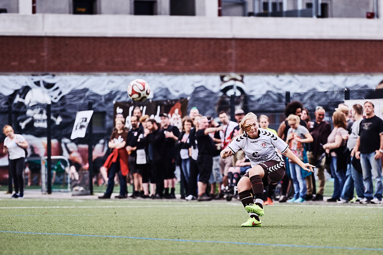 Der Testspielreigen des Wochenendes startete am Freitag bei strahlendem Sonnenschein auf einem der Plätze in der Feldstrassenarena. Einen Monat vor Saisonbeginn in der Regionalliga trafen die 1. Frauen vom FC St. Pauli gegen das Team aus Bremen, die in der Relegation zu eben jener Regionalliga sportlich großes erreicht haben – TuS Schwachhausen hatte im entscheidenden dritten Spiel, obwohl keine Chance auf den eigenen Aufstieg vorhanden war, den Kopf nicht hängen lassen und in Meldorf gut dagegen gehalten. Ohne dieses sportliche Highlight hätten die 1. Frauen vom FC St. Pauli vielleicht noch eine Saison in der Verbandsliga spielen müssen. Ein wirklich guter Grund also, dass es zur Saisonvorbereitung nun zum freundschaftlichen Aufeinandertreffen zwischen St. Pauli und Schwachhausen kam.
