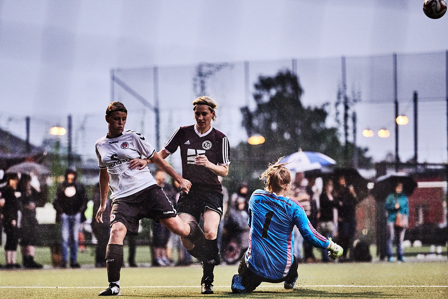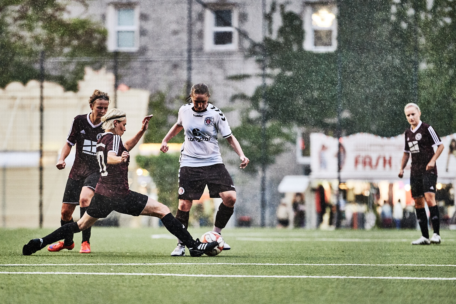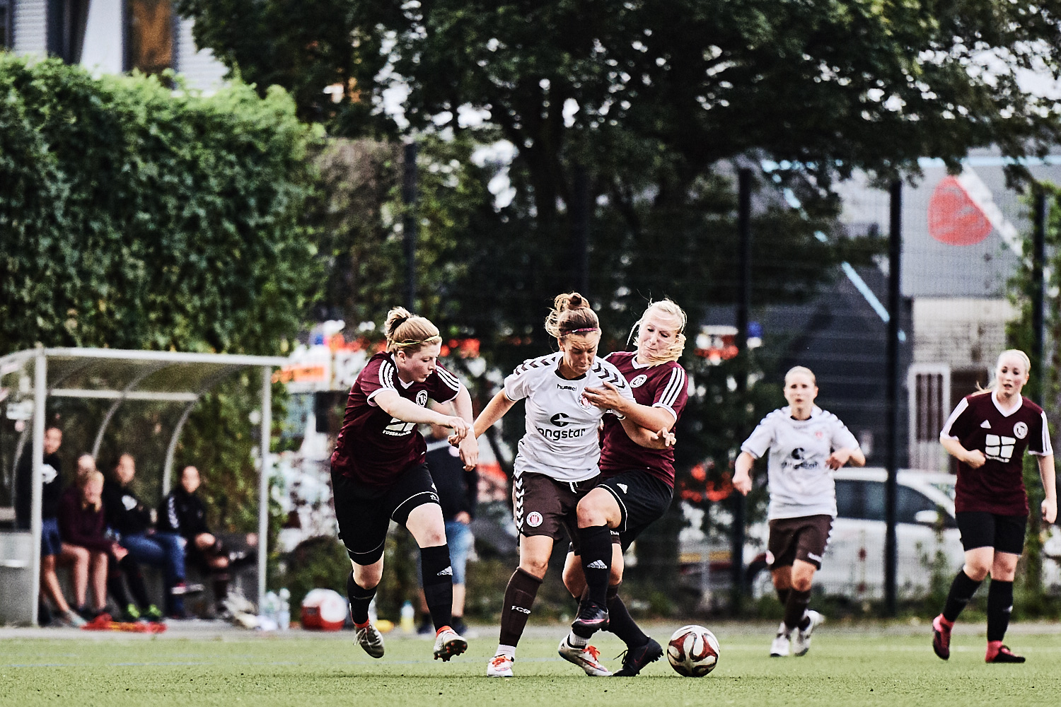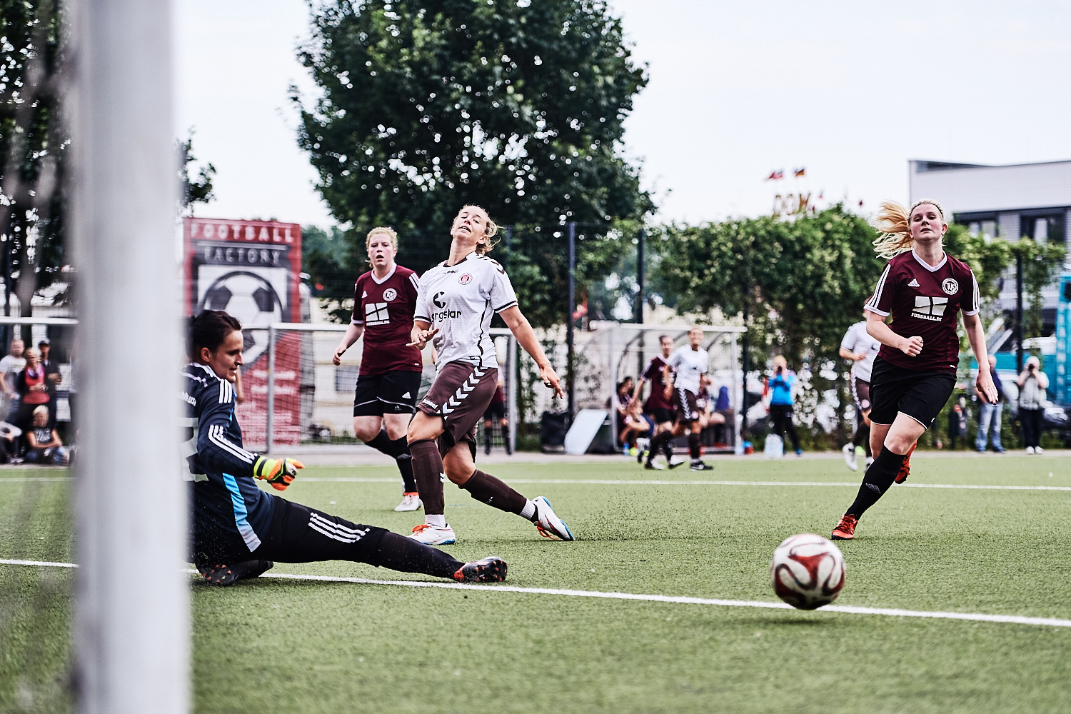 Der Testspielreigen des Wochenendes startete am Freitag bei strahlendem Sonnenschein auf einem der Plätze in der Feldstrassenarena. Einen Monat vor Saisonbeginn in der Regionalliga trafen die 1. Frauen vom FC St. Pauli gegen das Team aus Bremen, die in der Relegation zu eben jener Regionalliga sportlich großes erreicht haben – TuS Schwachhausen hatte im entscheidenden dritten Spiel, obwohl keine Chance auf den eigenen Aufstieg vorhanden war, den Kopf nicht hängen lassen und in Meldorf gut dagegen gehalten. Ohne dieses sportliche Highlight hätten die 1. Frauen vom FC St. Pauli vielleicht noch eine Saison in der Verbandsliga spielen müssen. Ein wirklich guter Grund also, dass es zur Saisonvorbereitung nun zum freundschaftlichen Aufeinandertreffen zwischen St. Pauli und Schwachhausen kam.