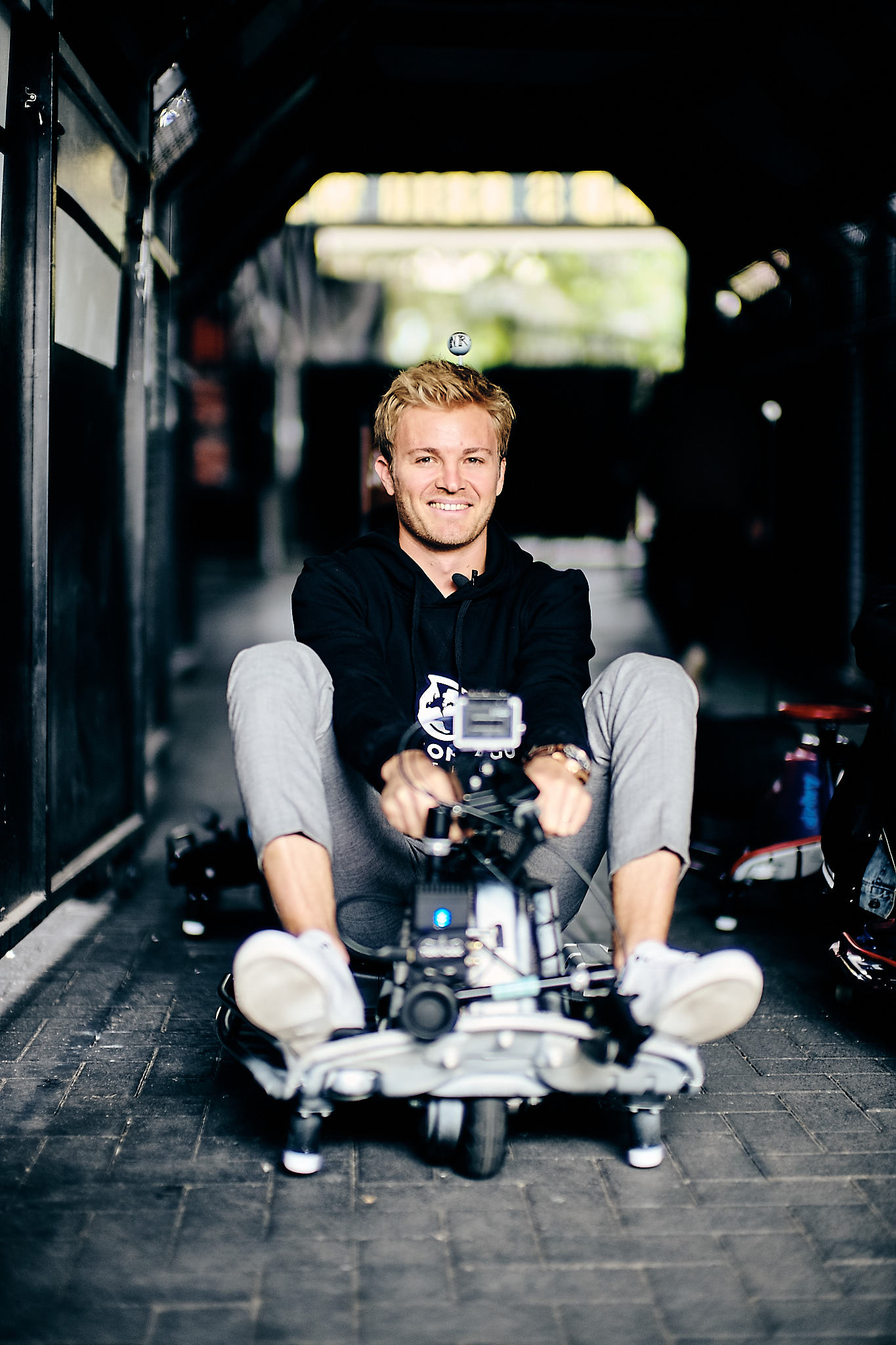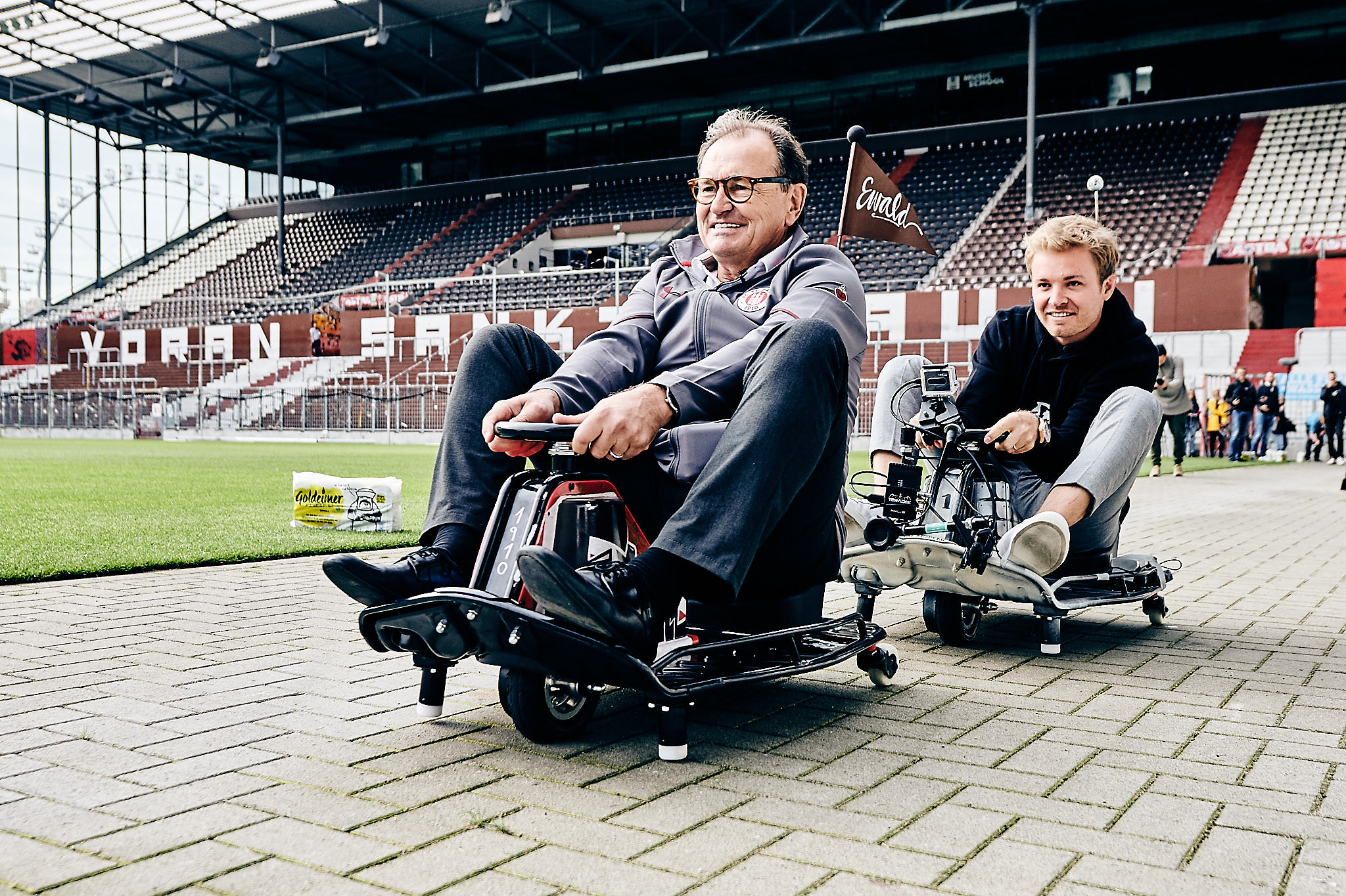 Beim Rennen selbst hatte Ewald Lienen lange die Nase vorn. Aber Nico Rosberg weiß nicht nur auf vier Rädern wie man gewinnt, sondern auch auf dreien.