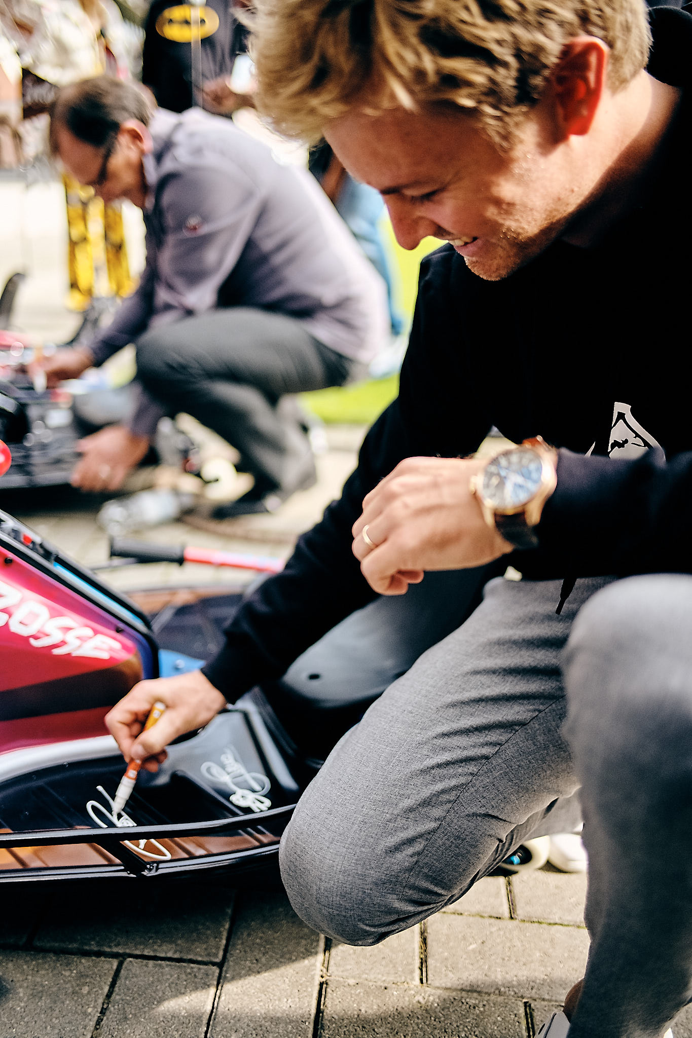 In dieser einen Stunde bei der 1. eCart Weltmeisterschaft für Viva con Agua ist neben dem eigentlichen Renngeschehen natürlich viel nebenbei passiert. Einer meiner lustigsten Situationen in meinem bisherigen Fotografendasein passierte vor dem Start zum Finale als Nico und Ewald Shake Hands machten und immer mehr der großen Anzahl von Fotografen und Kamerateams rund um die beiden wollten, dass alle beide gleichzeitig in die jeweilige Kamera schauten. Ich habe nachgezählt: 32 Bilder machte ich und auf einem schauten beide zu mir. Während alle ihr „hier, hier“ riefen… Selten so gelacht.